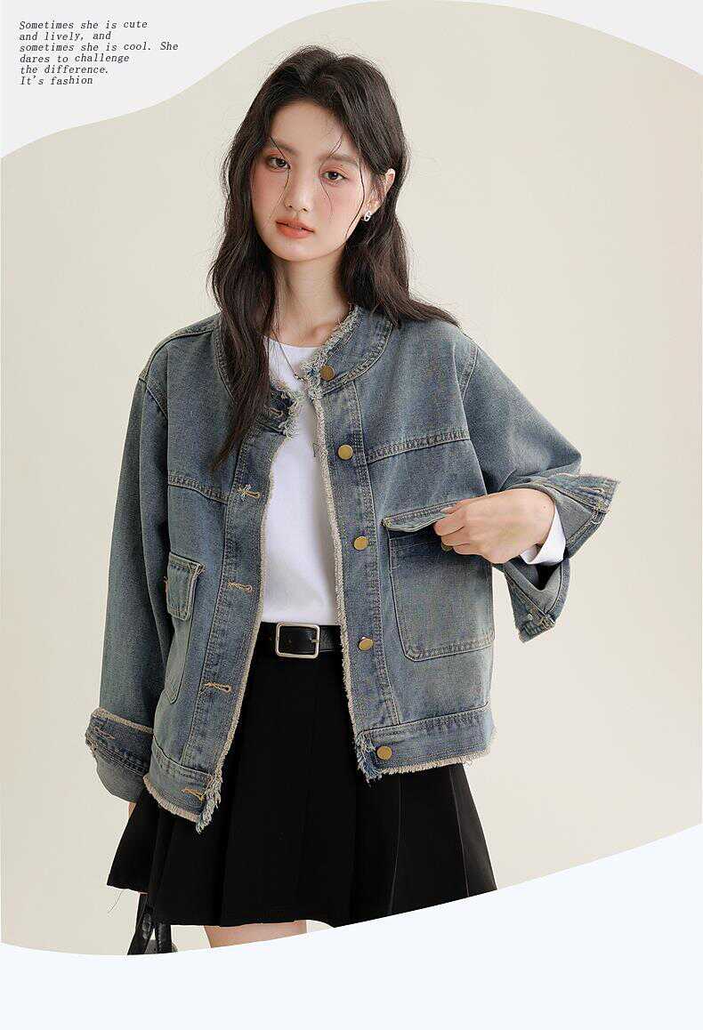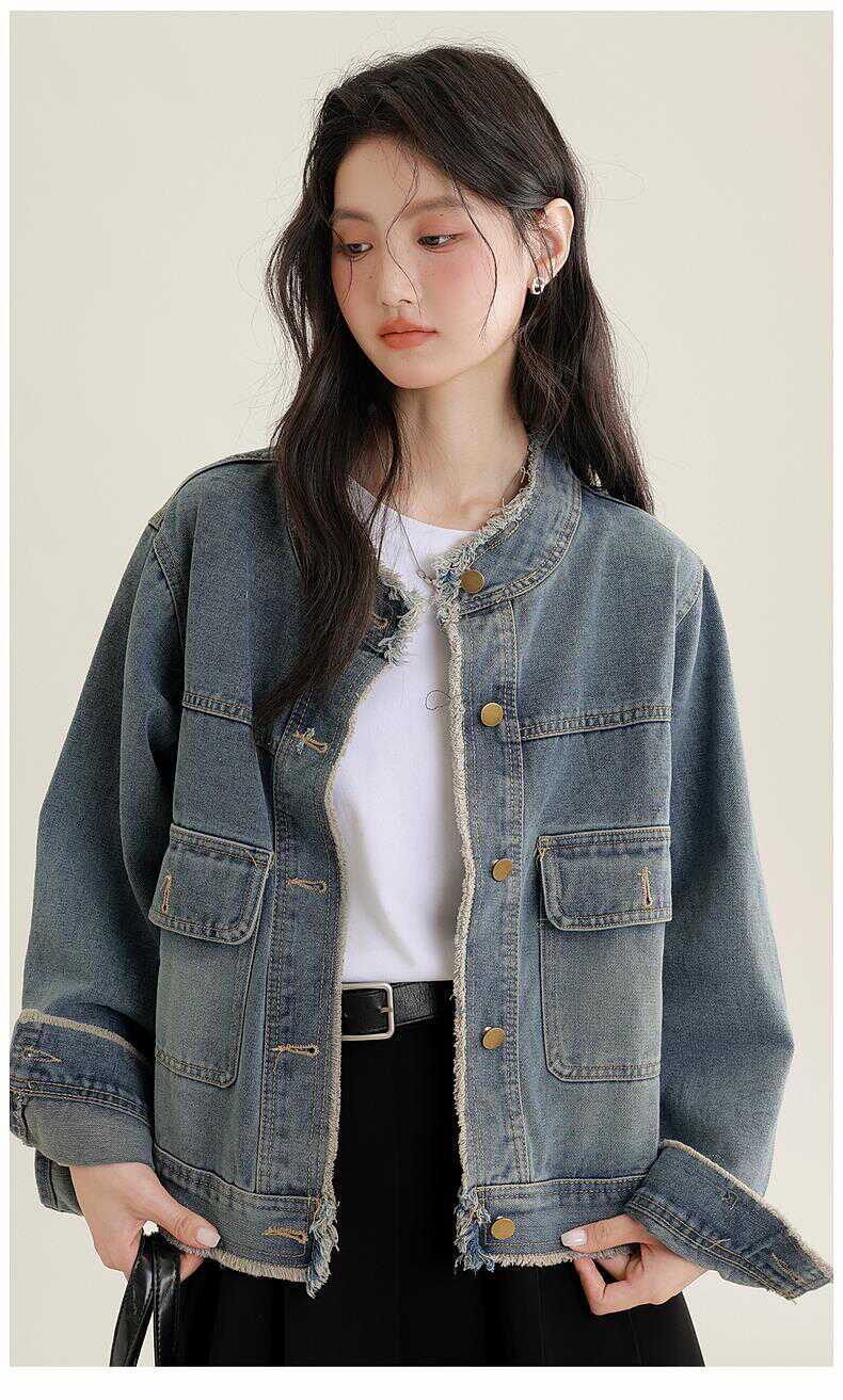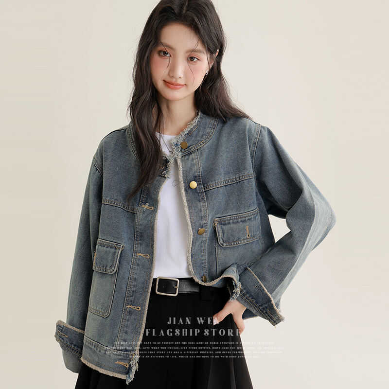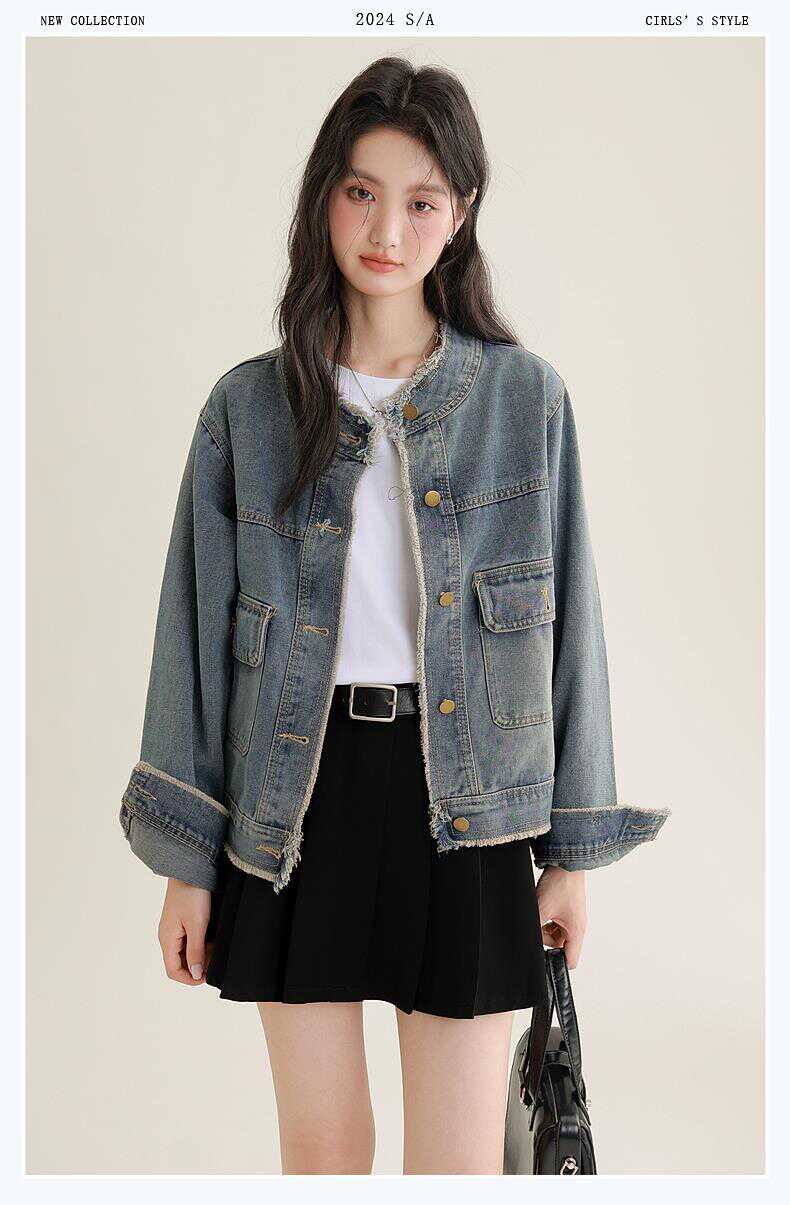 2024 봄과 가을 새로운 레트로 녹 세척 데님 코트 여성의 느슨한 디자인 올 매치 아우터 재킷 탑