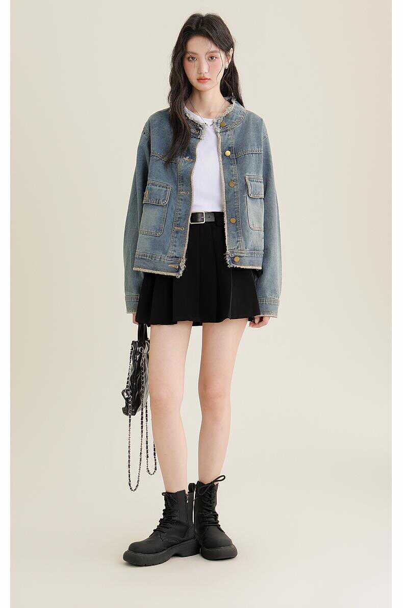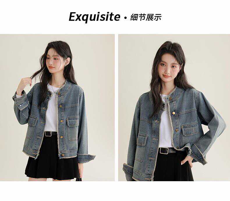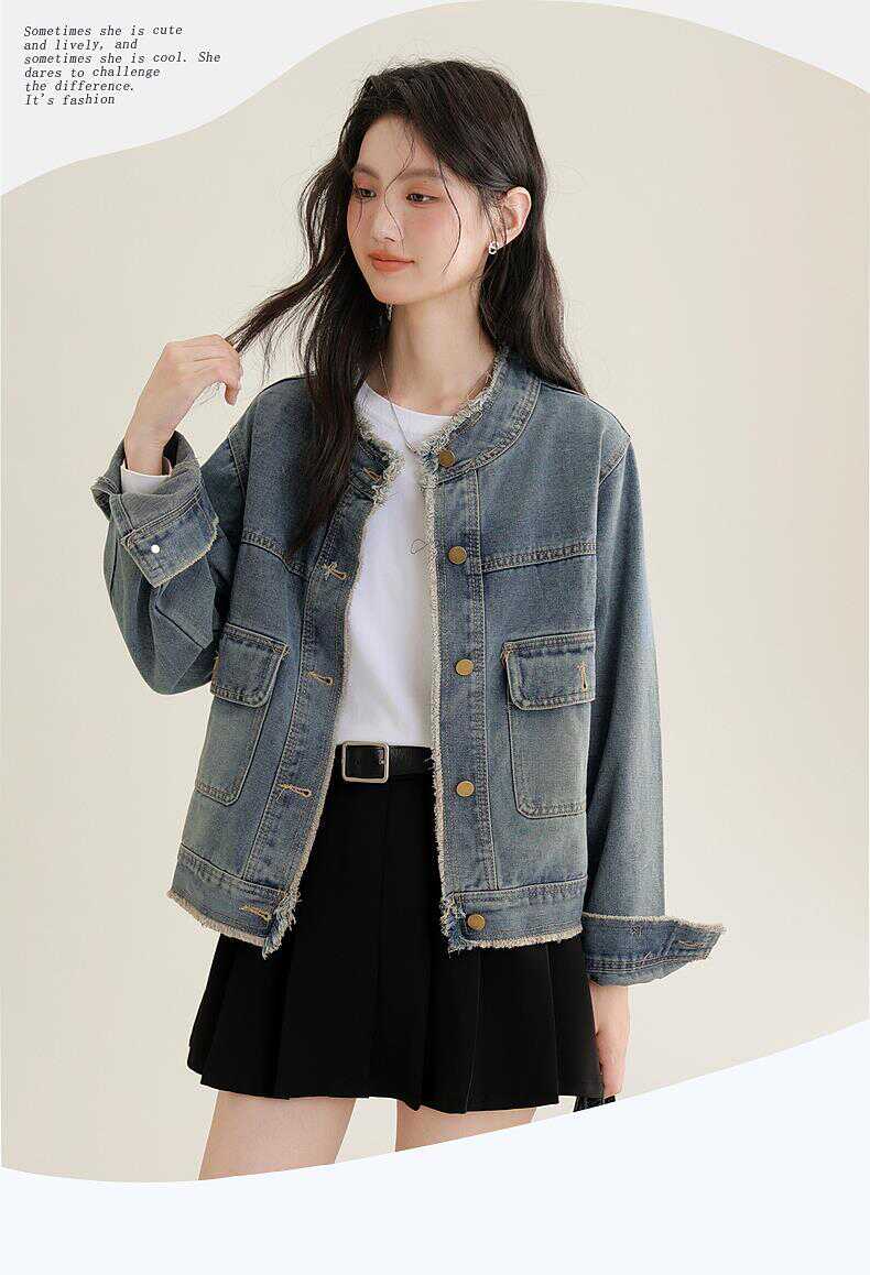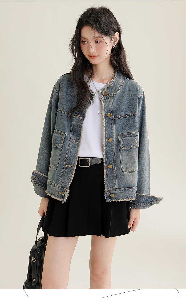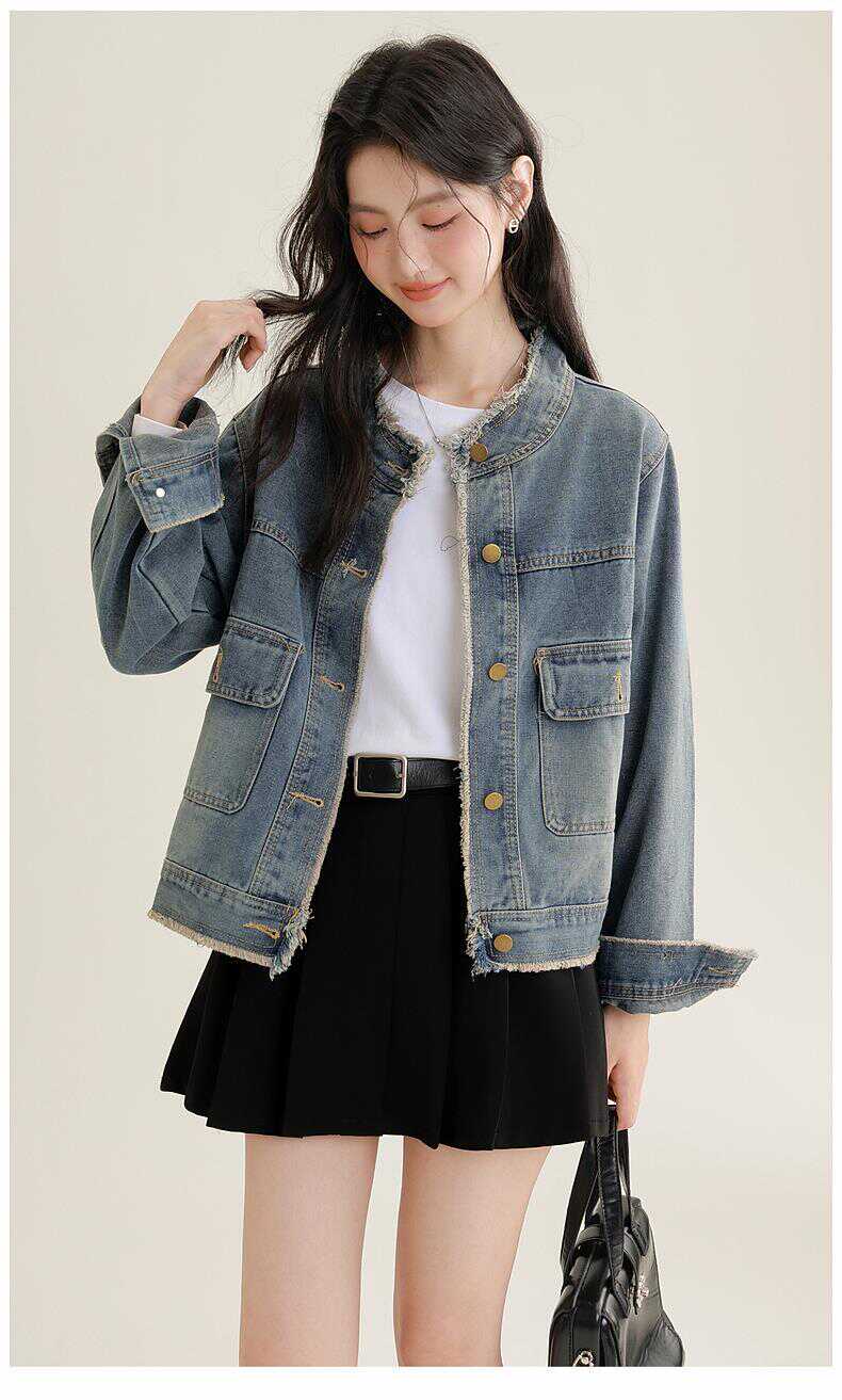 2024 봄과 가을 새로운 레트로 녹 세척 데님 코트 여성의 느슨한 디자인 올 매치 아우터 재킷 탑