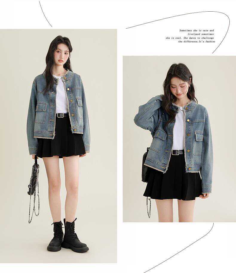 2024 봄과 가을 새로운 레트로 녹 세척 데님 코트 여성의 느슨한 디자인 올 매치 아우터 재킷 탑스토어 가기