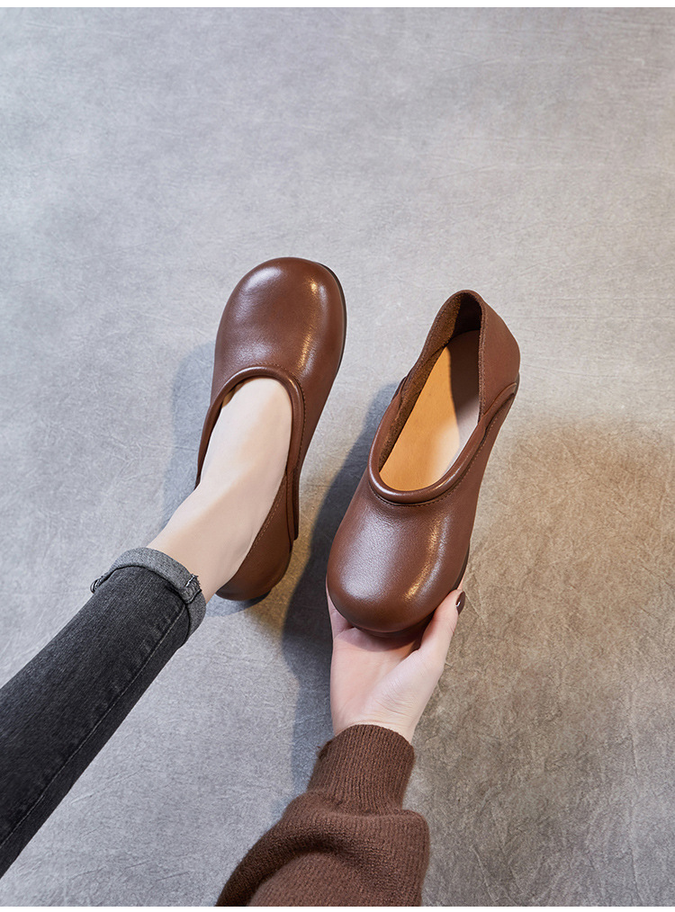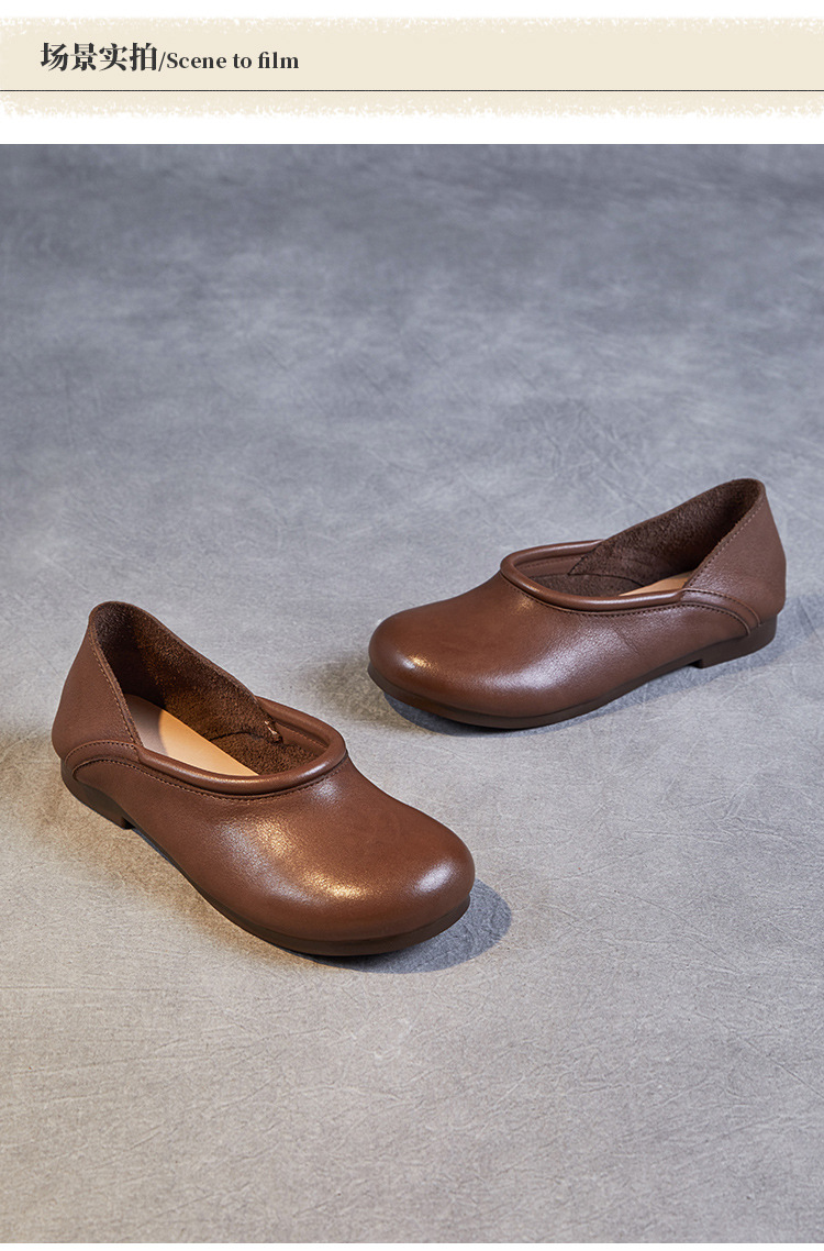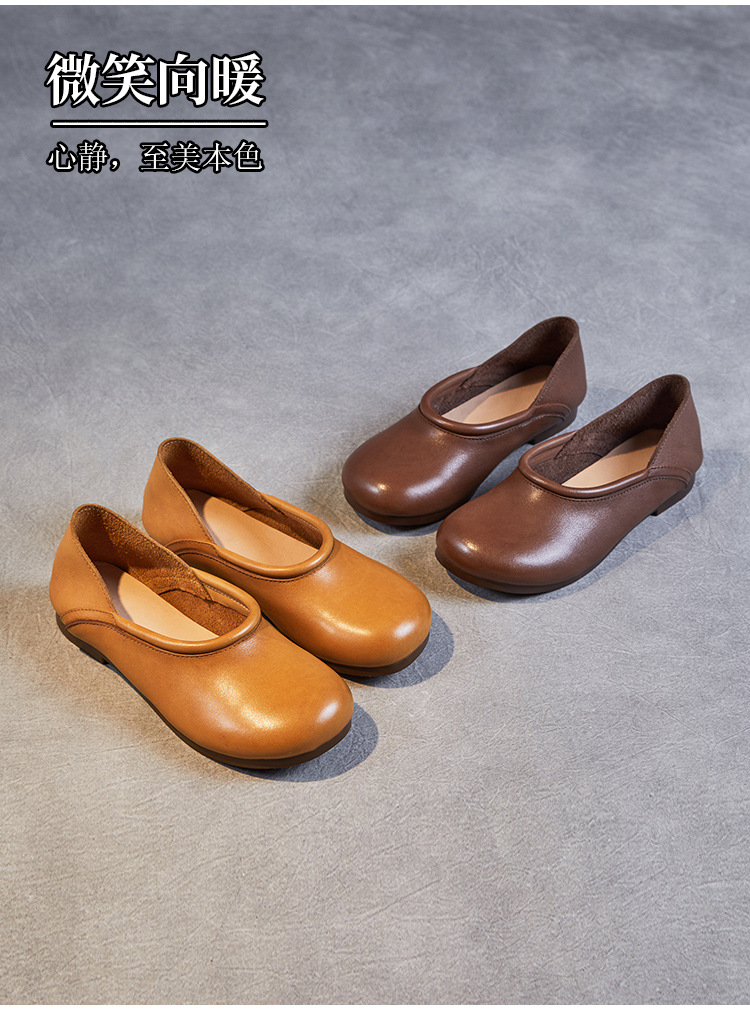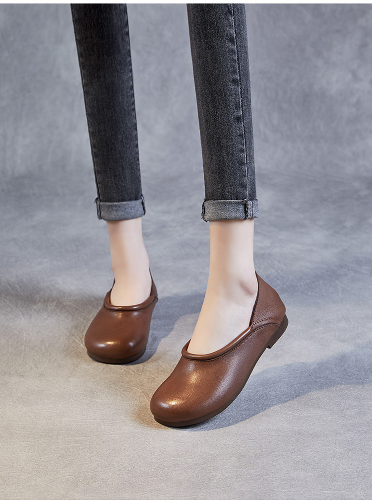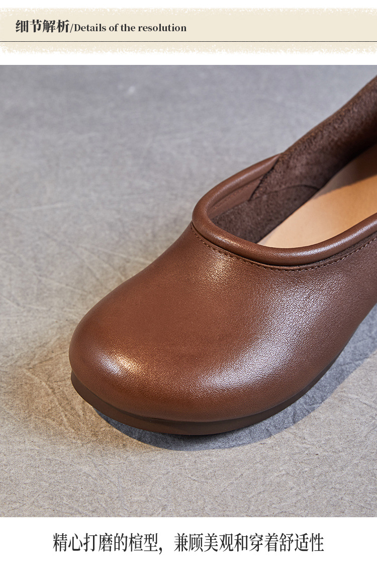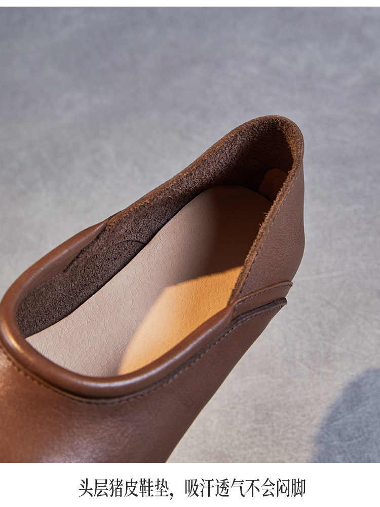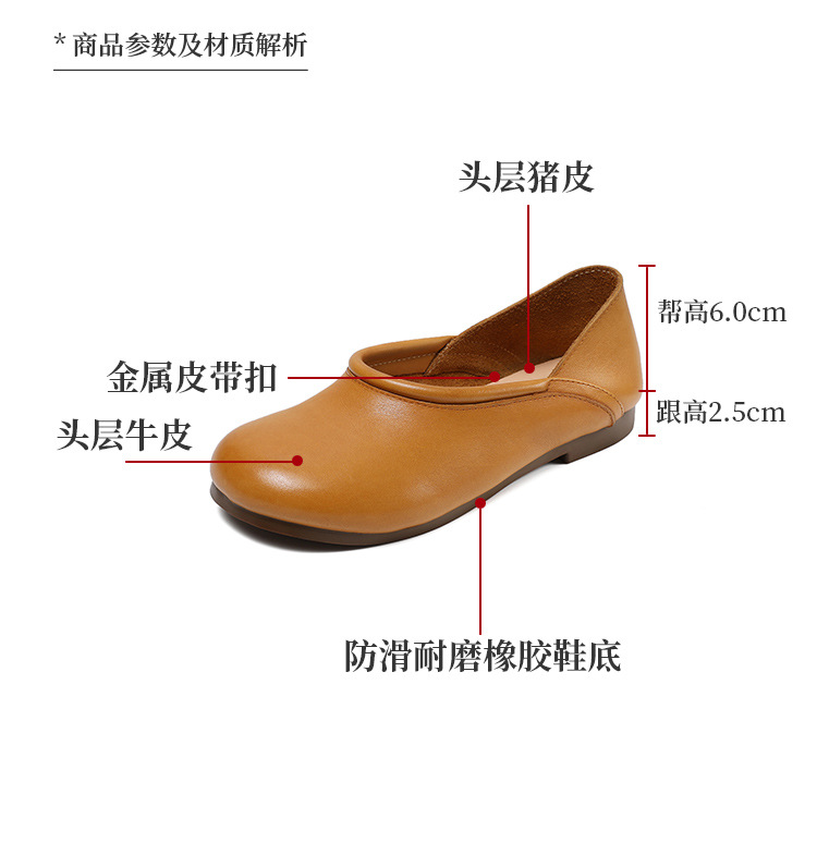 봄과 여름 2025 새로운 1 층 소 가죽 저 입 여성 싱글 레이어 신발 편안한 부드러운 가죽 부드러운 바닥 복고풍 모리 스타일의 둥근 발가락 로퍼
