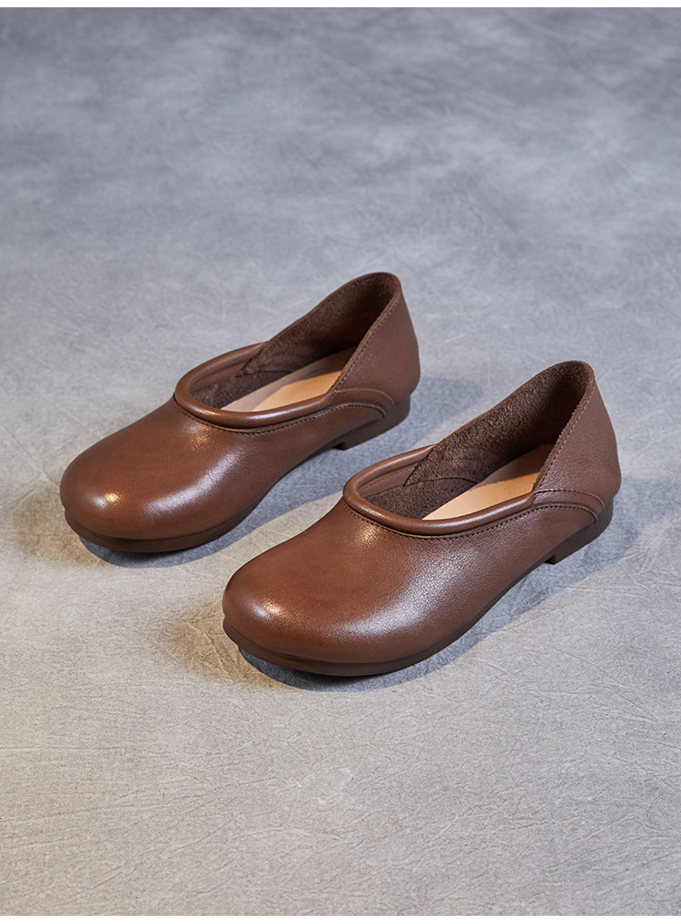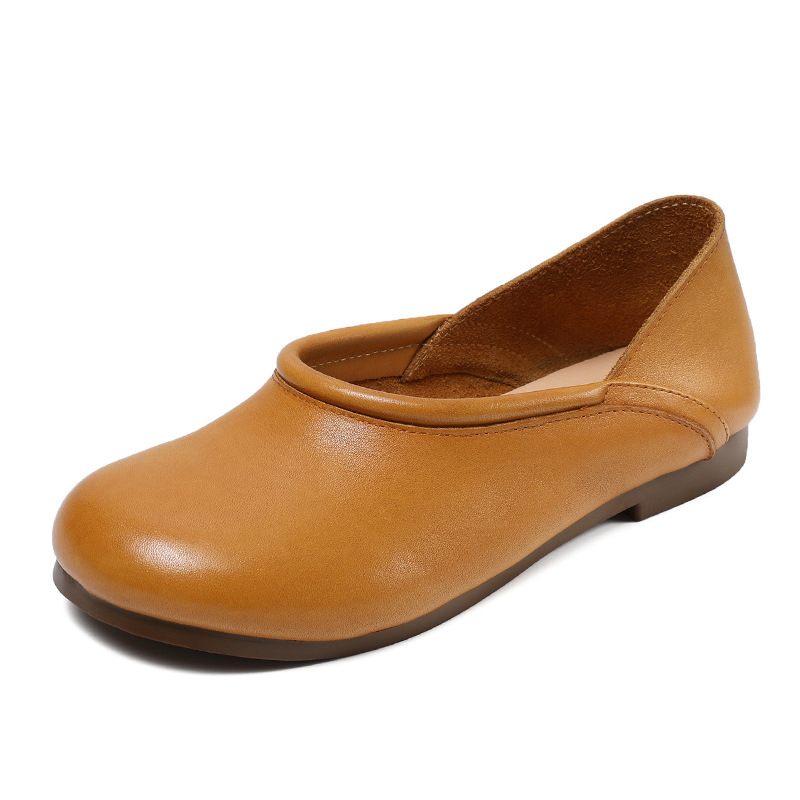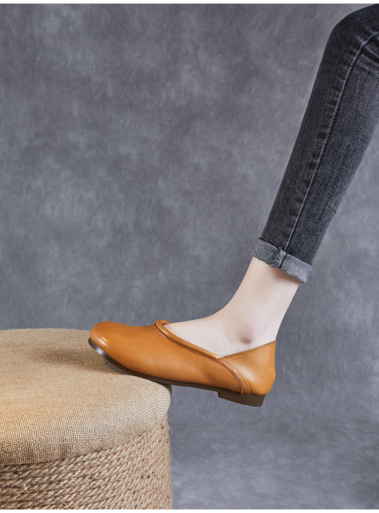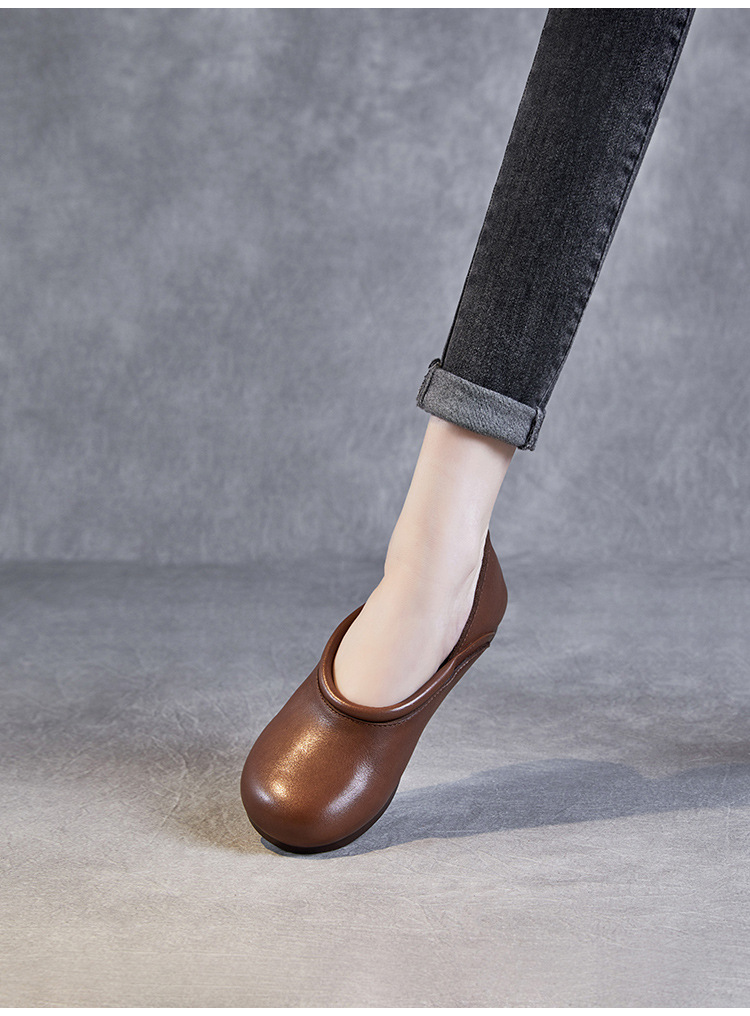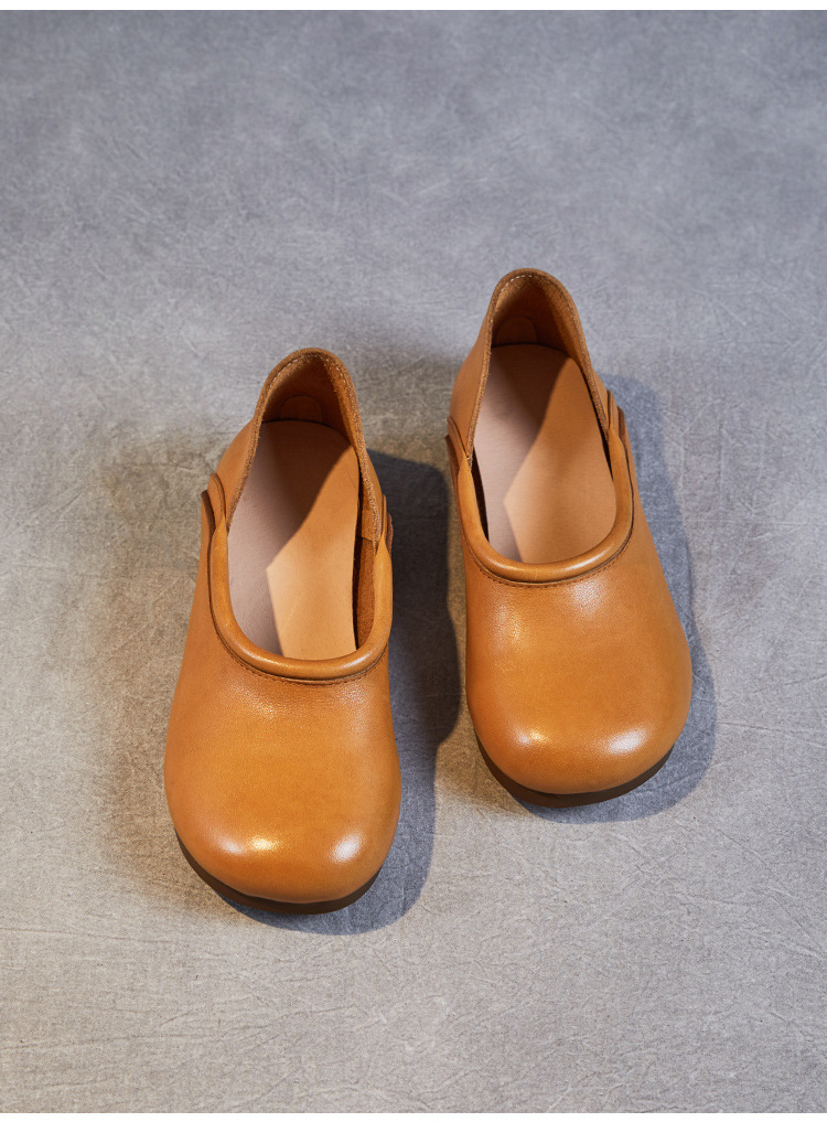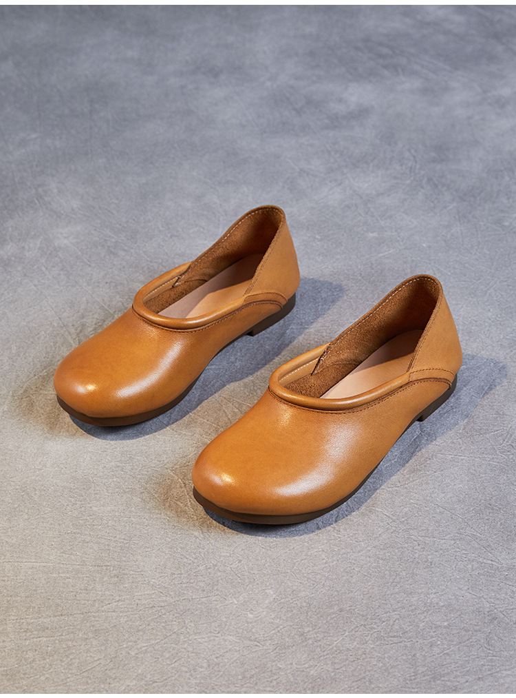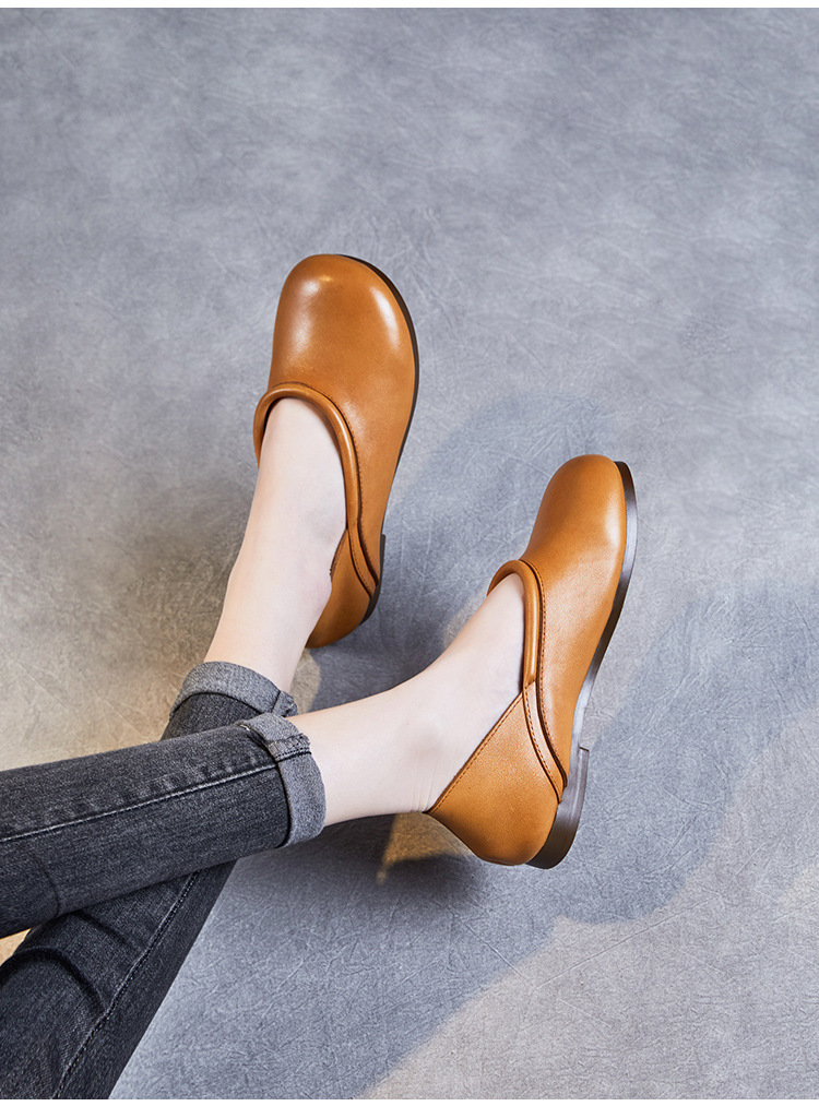 봄과 여름 2025 새로운 1 층 소 가죽 저 입 여성 싱글 레이어 신발 편안한 부드러운 가죽 부드러운 바닥 복고풍 모리 스타일의 둥근 발가락 로퍼