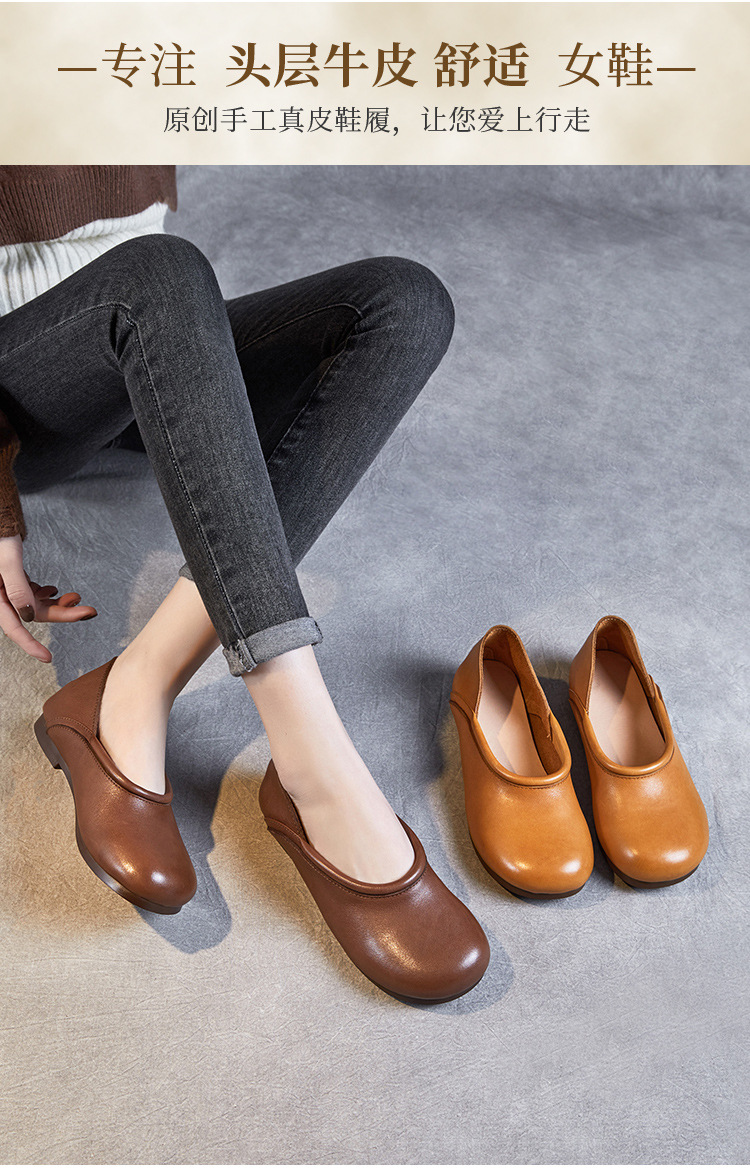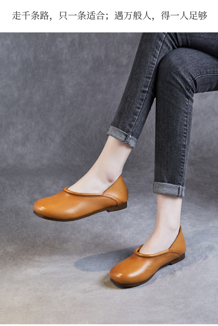 봄과 여름 2025 새로운 1 층 소 가죽 저 입 여성 싱글 레이어 신발 편안한 부드러운 가죽 부드러운 바닥 복고풍 모리 스타일의 둥근 발가락 로퍼스토어 가기