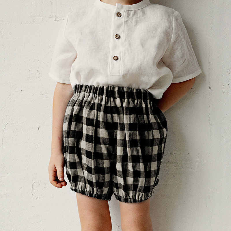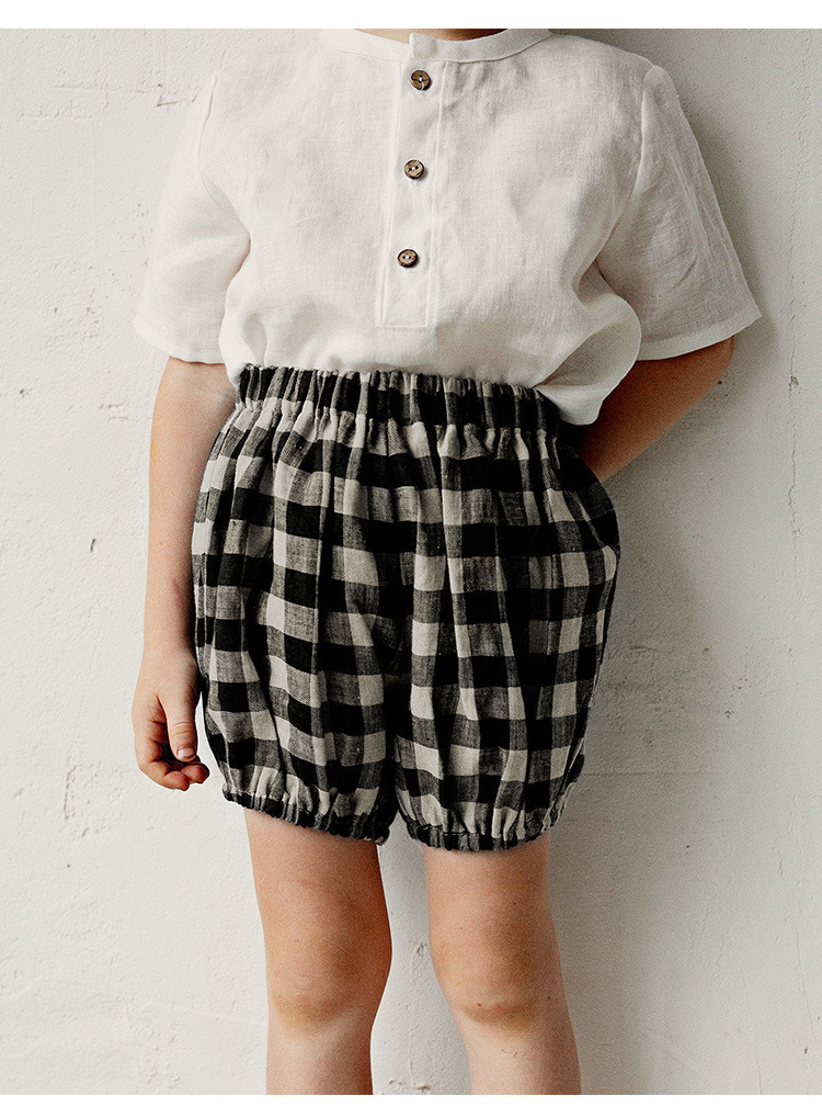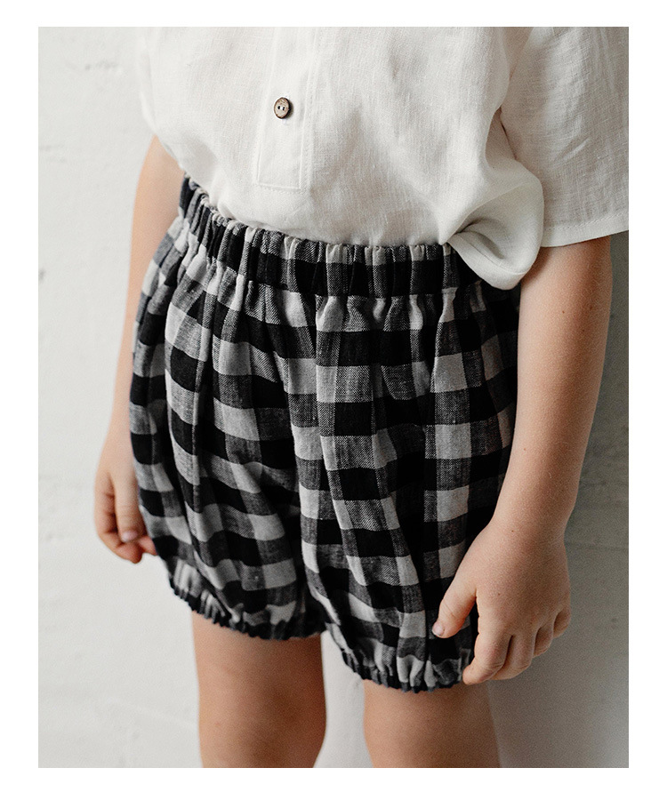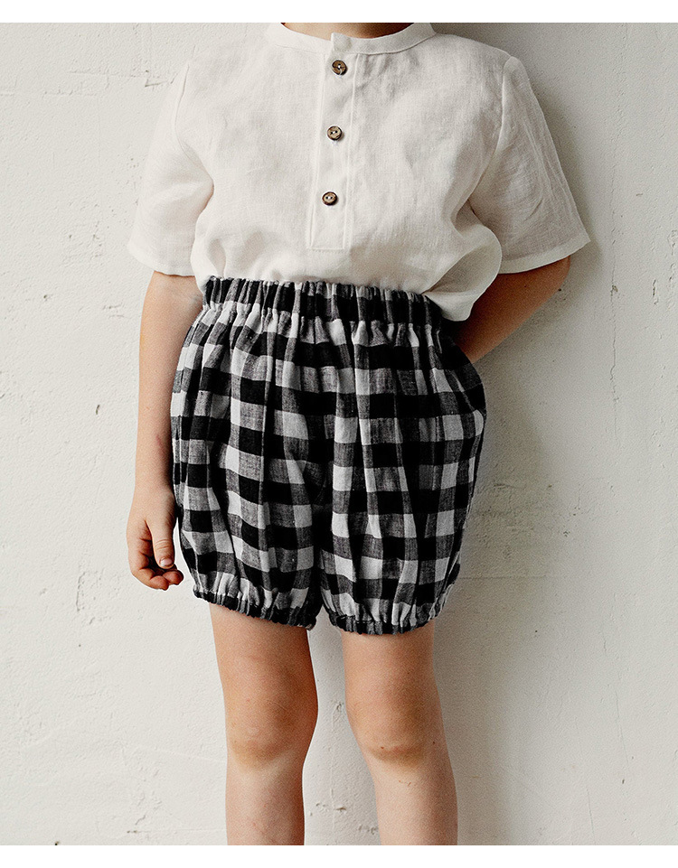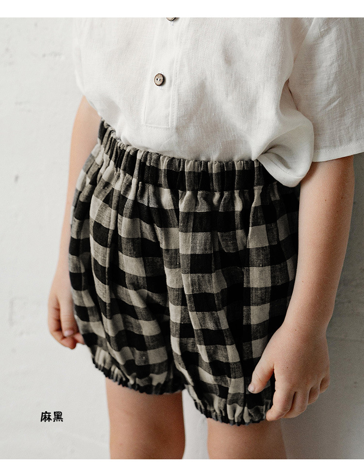 명암 색 격자 무늬 블루머스 여름면 및 리넨 레트로 스타일 아기 남녀 캐주얼 바지 유행 올 매치 스트레치 허리 반바지