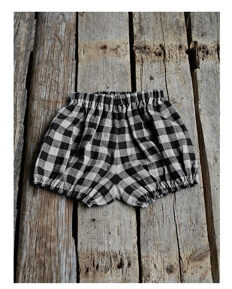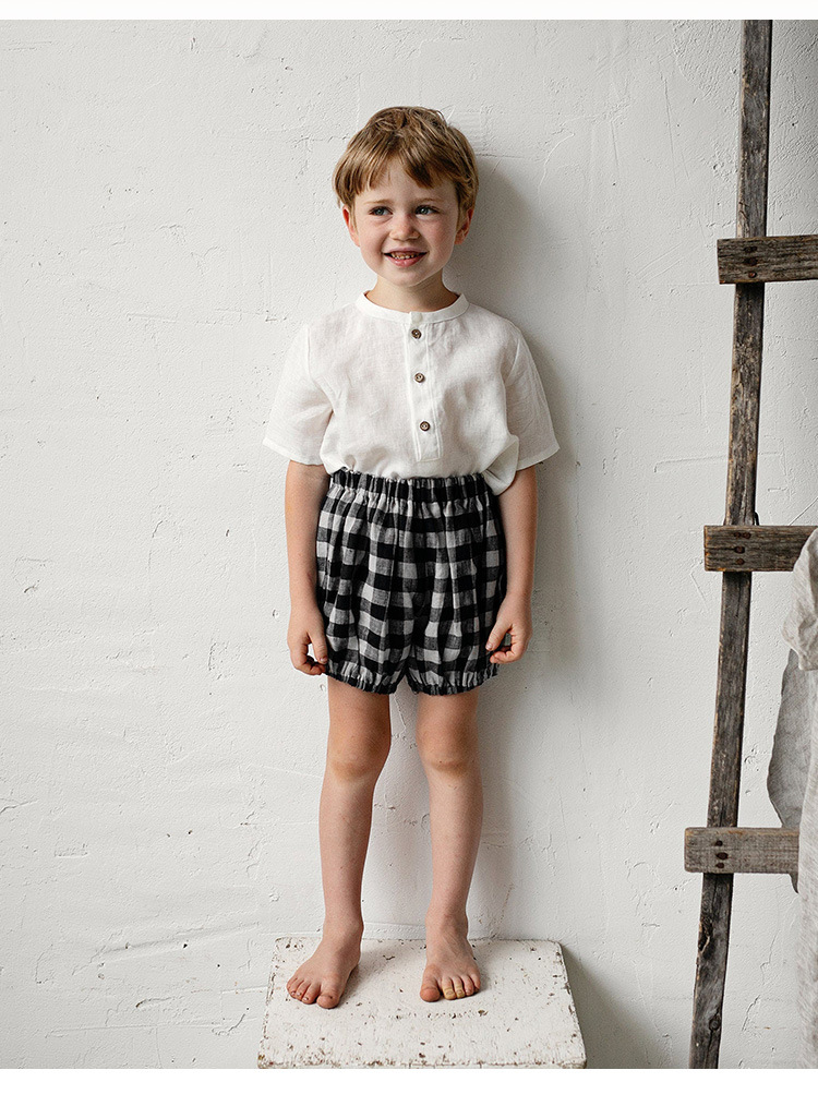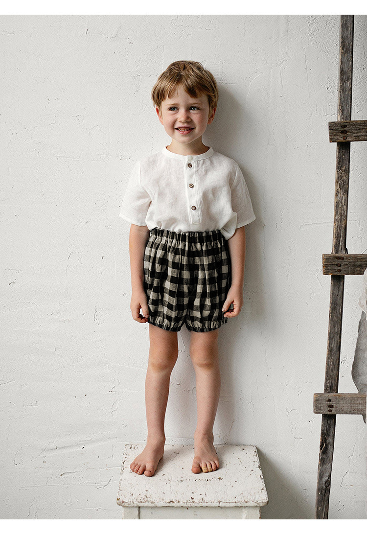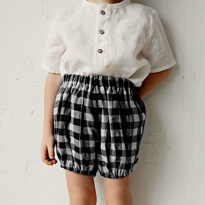 명암 색 격자 무늬 블루머스 여름면 및 리넨 레트로 스타일 아기 남녀 캐주얼 바지 유행 올 매치 스트레치 허리 반바지