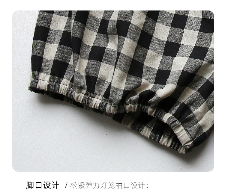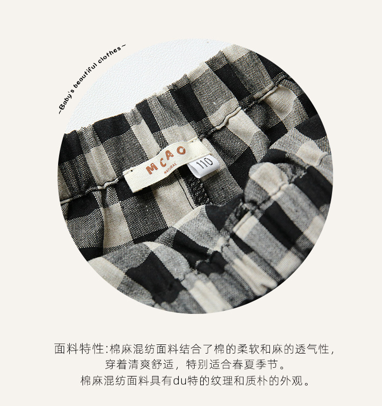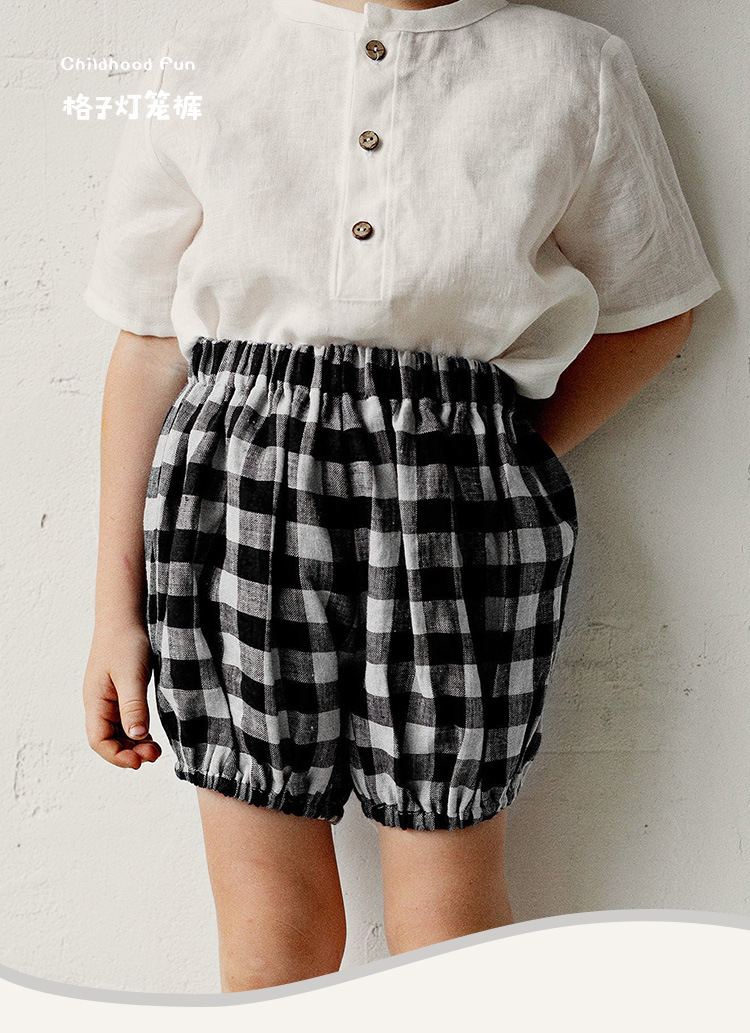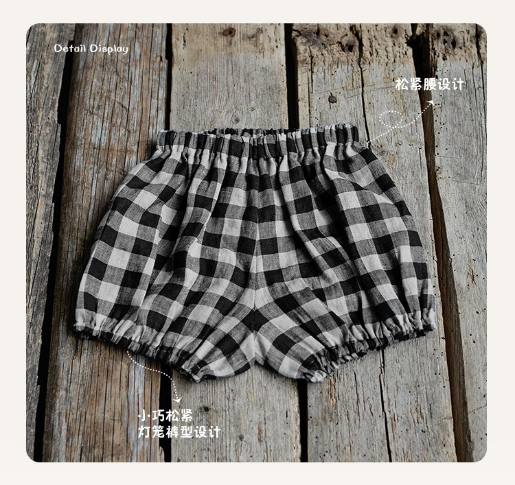 명암 색 격자 무늬 블루머스 여름면 및 리넨 레트로 스타일 아기 남녀 캐주얼 바지 유행 올 매치 스트레치 허리 반바지스토어 가기
