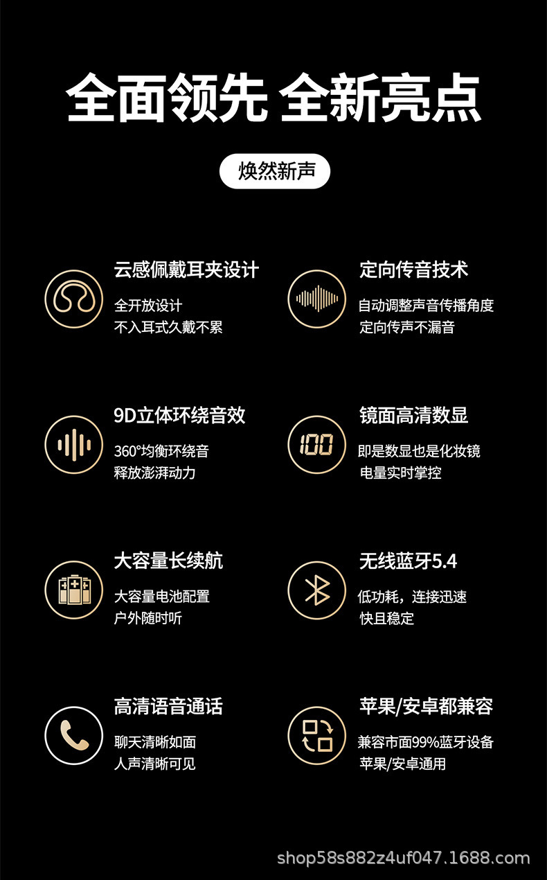 국경 간 새로운 X51 블루투스 헤드셋 TWS5.4 무선 귀 클립 타입 3 디스플레이 지능형 터치 스포츠 음악 헤드셋