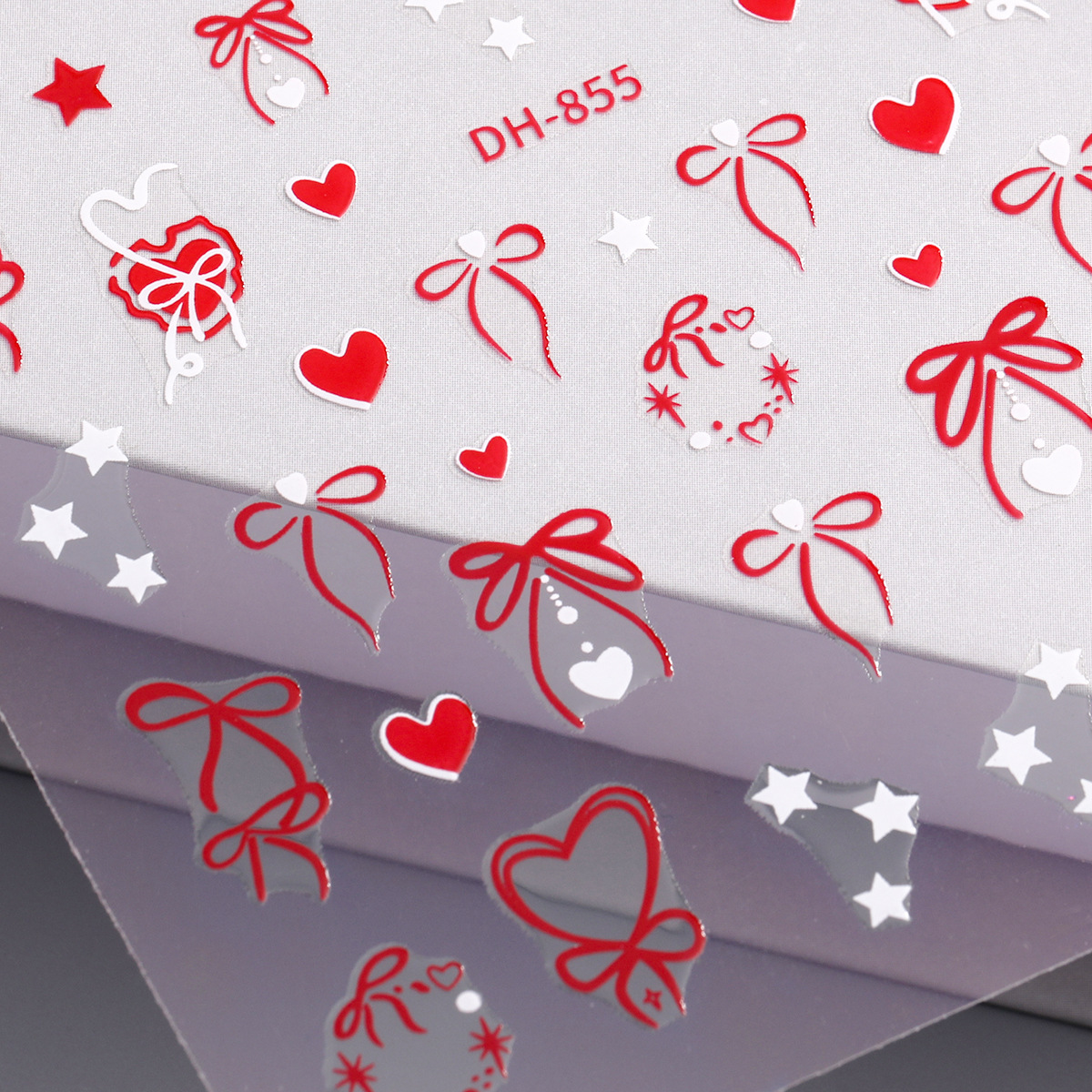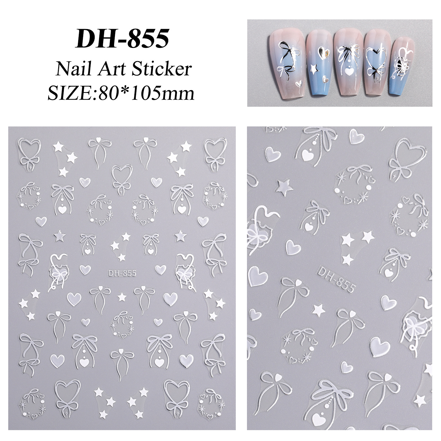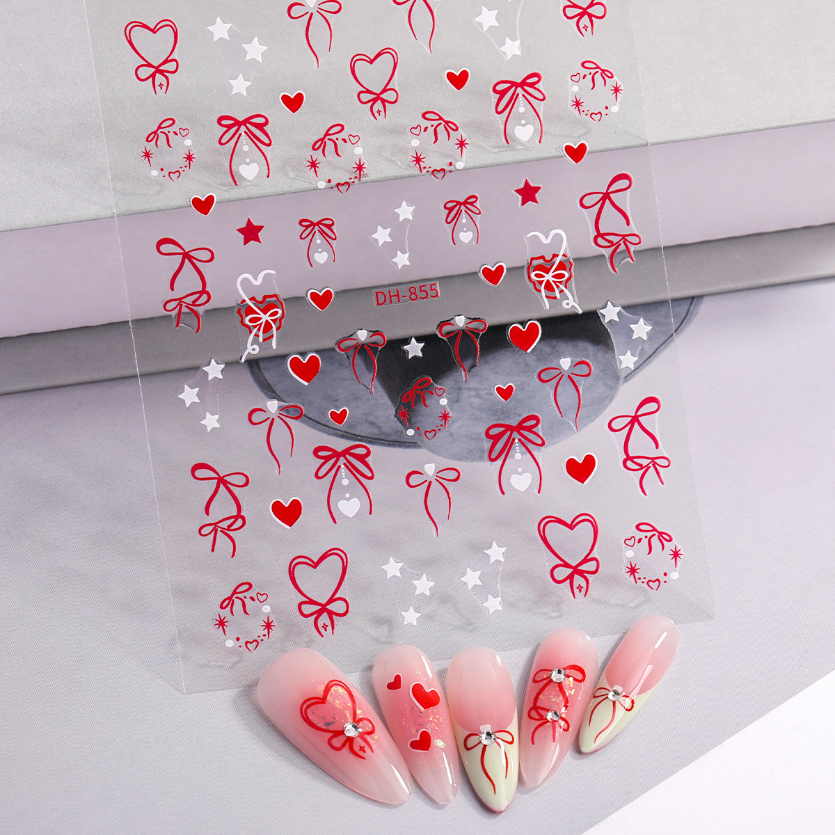 라인 프렌치 보우 네일 스티커 3D 간단한 올 매치 러브 보우 네일 스티커 보석 DH855