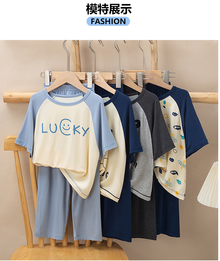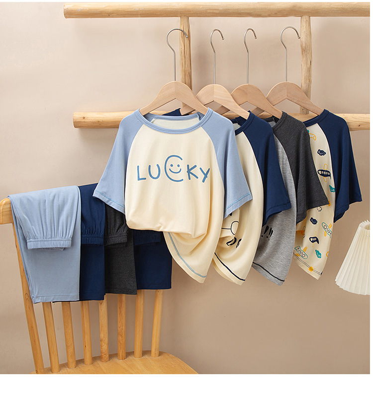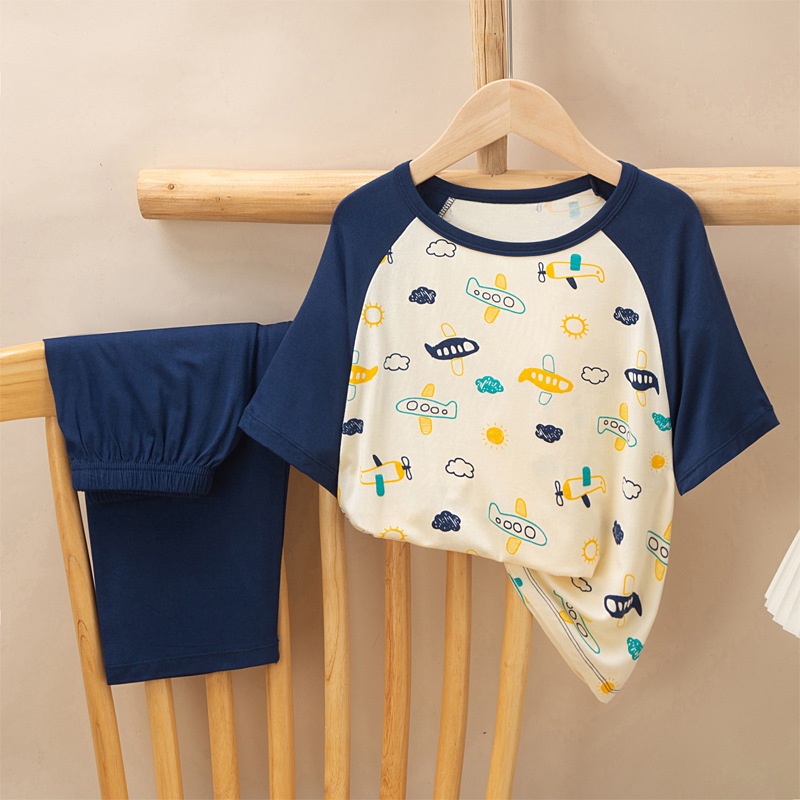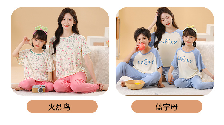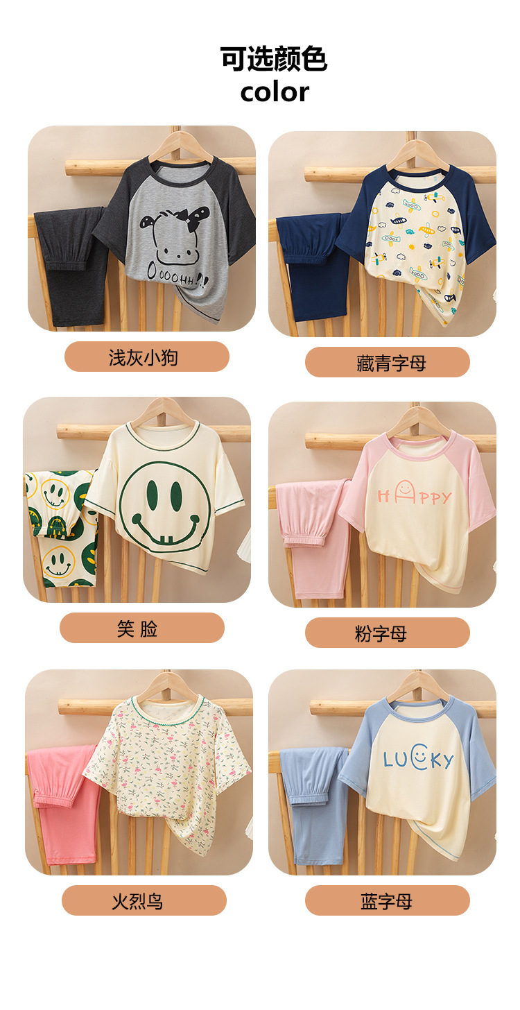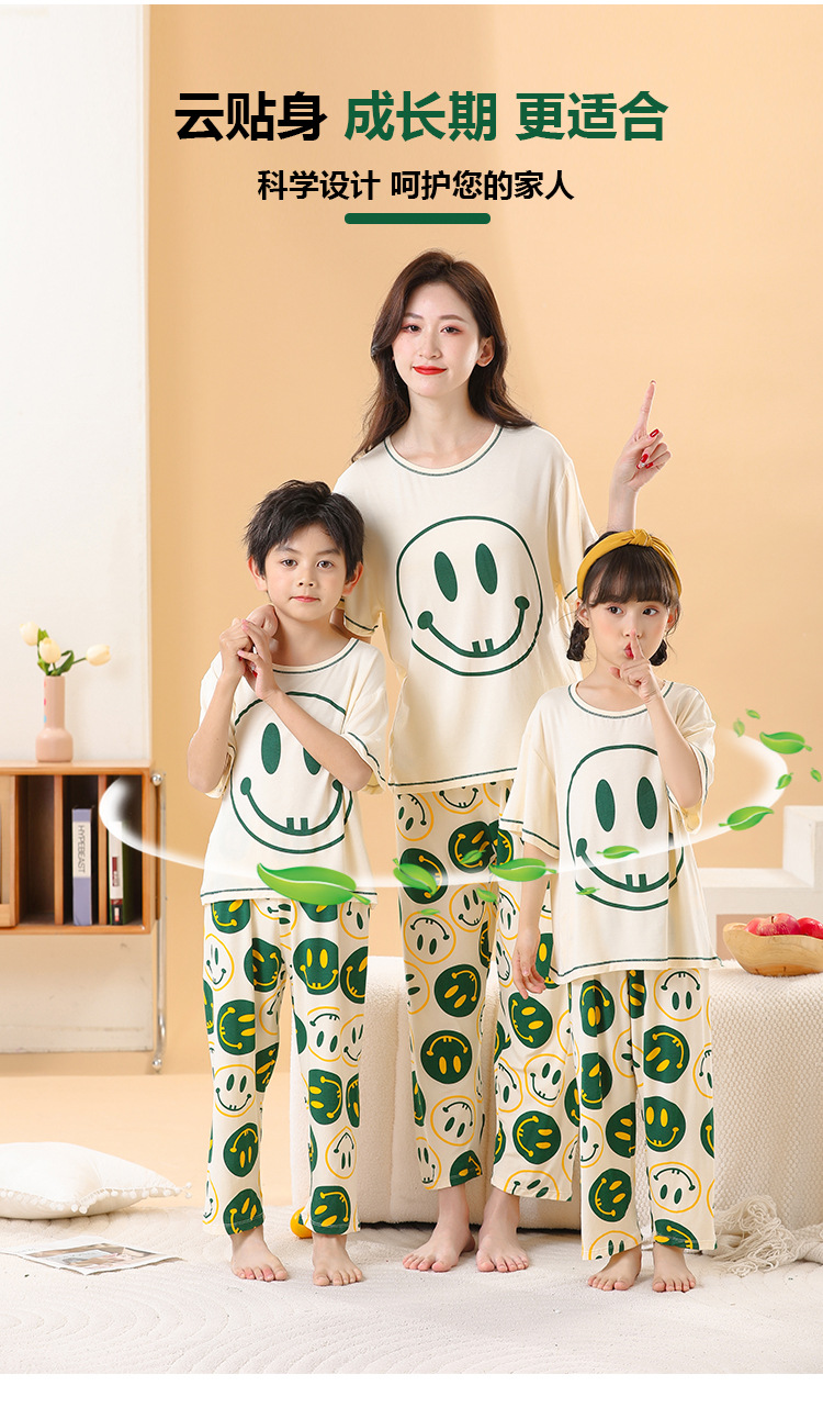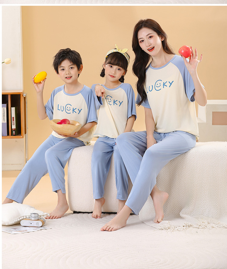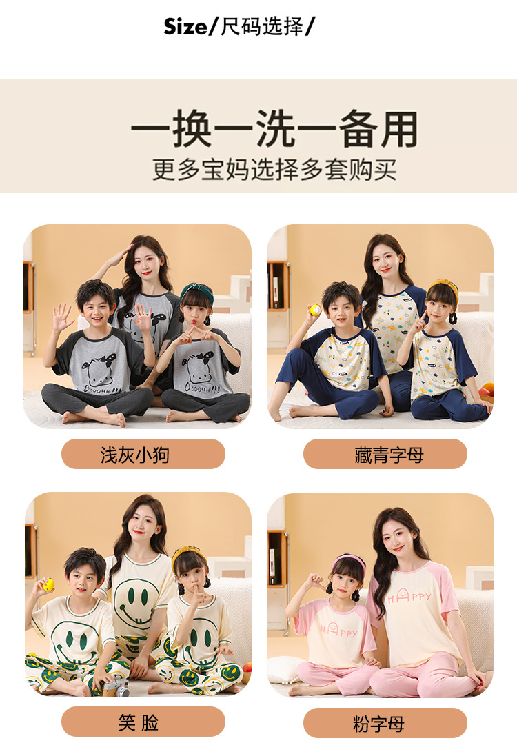 어린이 멋진 잠옷 소녀 여름 모달 코튼 보이즈 에어컨 의류 부모-자식 홈 의류 반팔 바지 세트스토어 가기