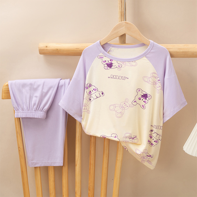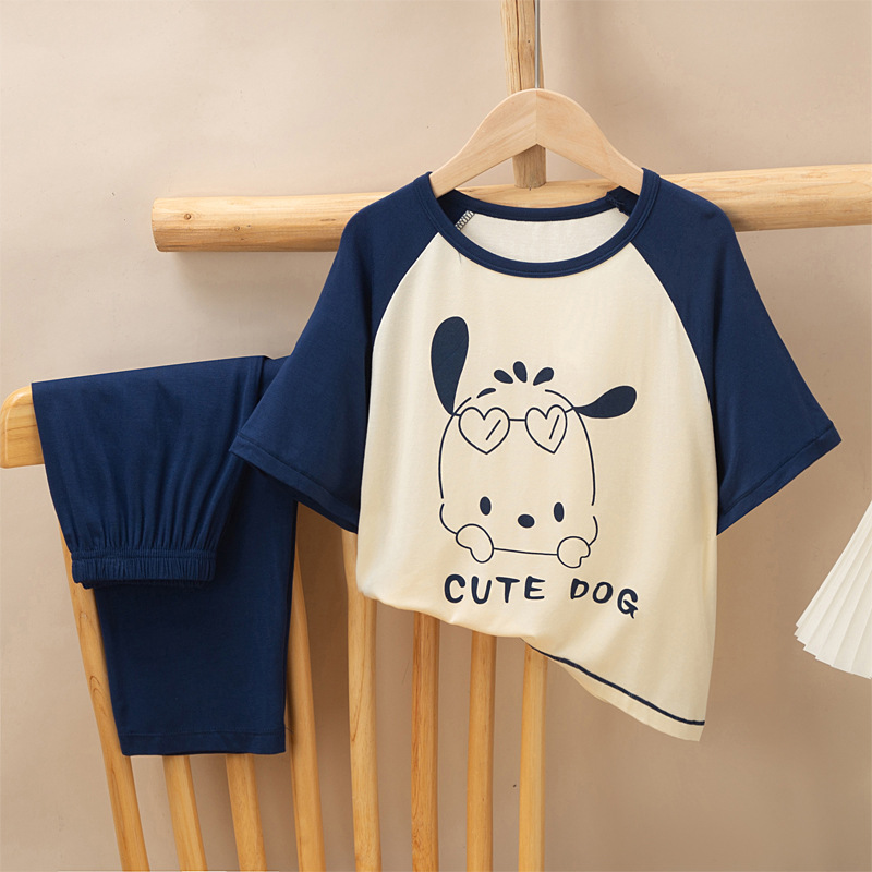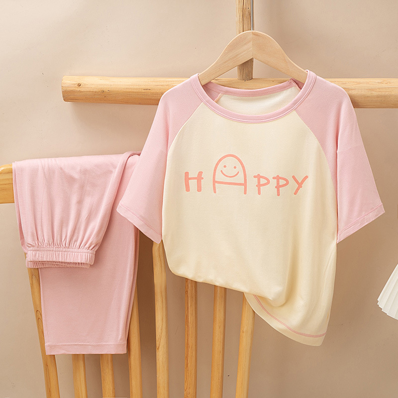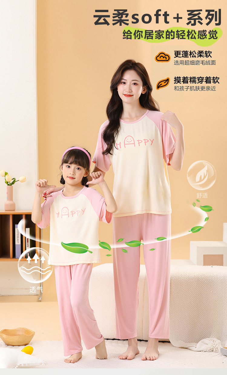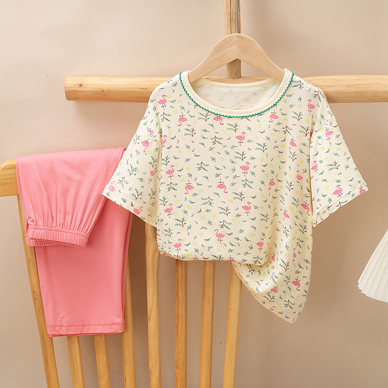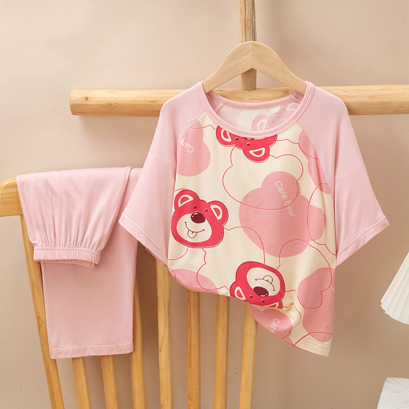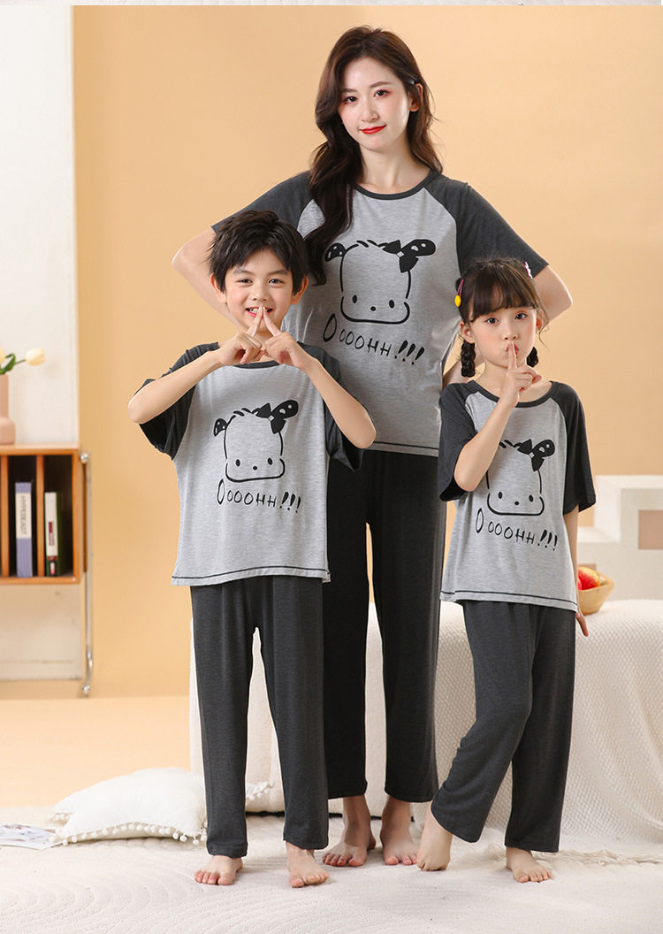 어린이 멋진 잠옷 소녀 여름 모달 코튼 보이즈 에어컨 의류 부모-자식 홈 의류 반팔 바지 세트