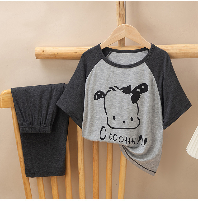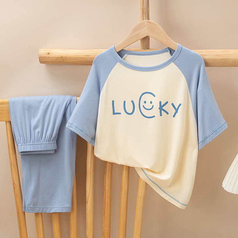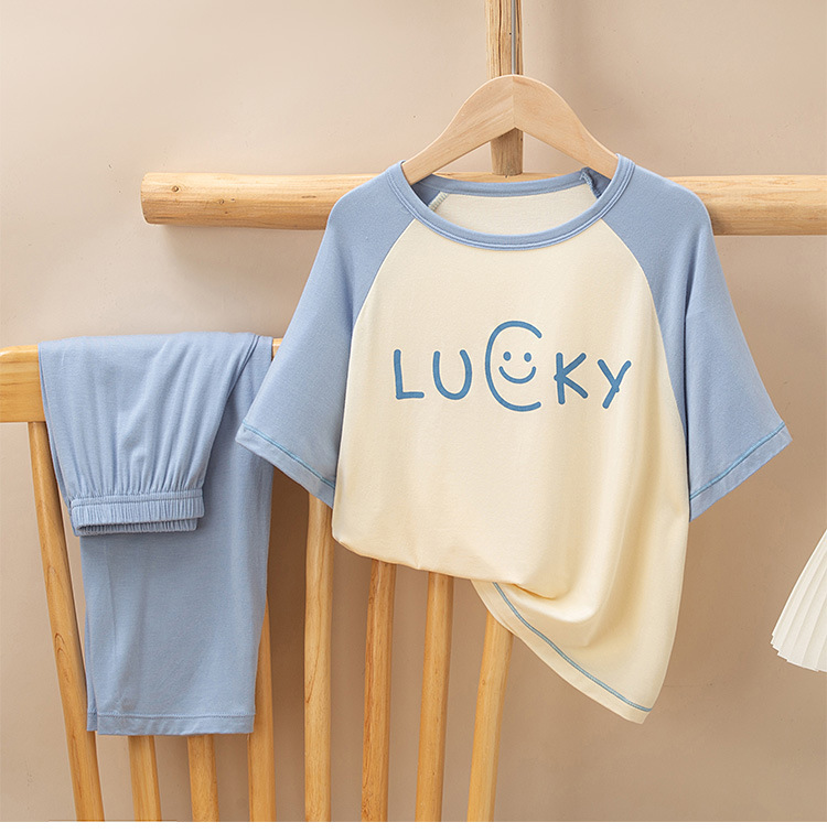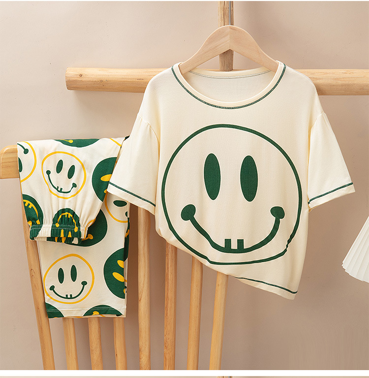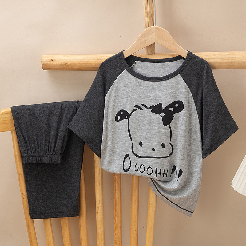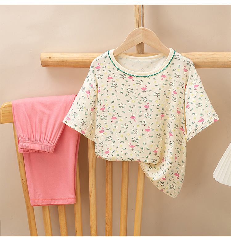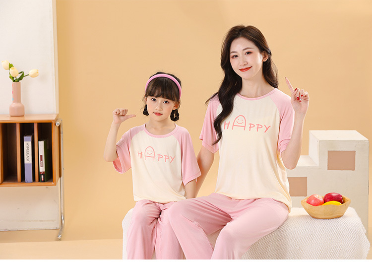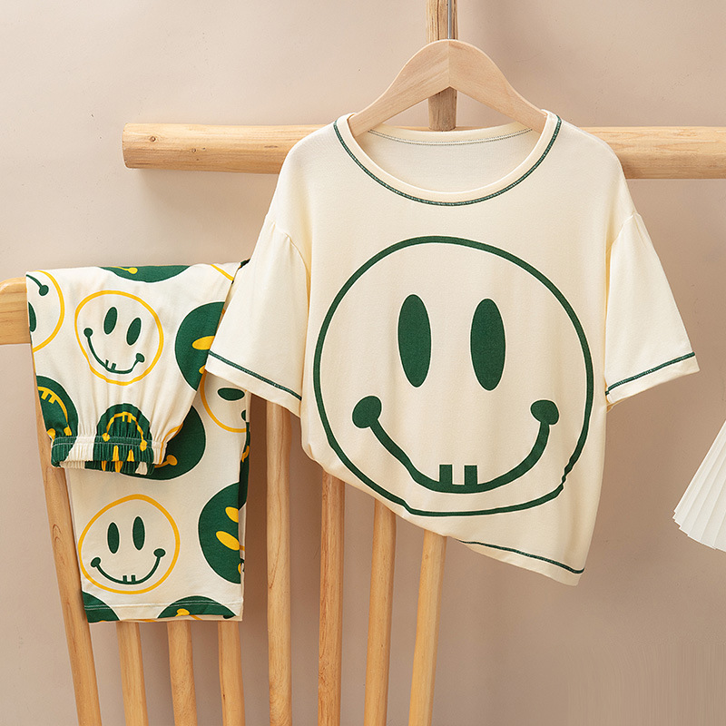 어린이 멋진 잠옷 소녀 여름 모달 코튼 보이즈 에어컨 의류 부모-자식 홈 의류 반팔 바지 세트