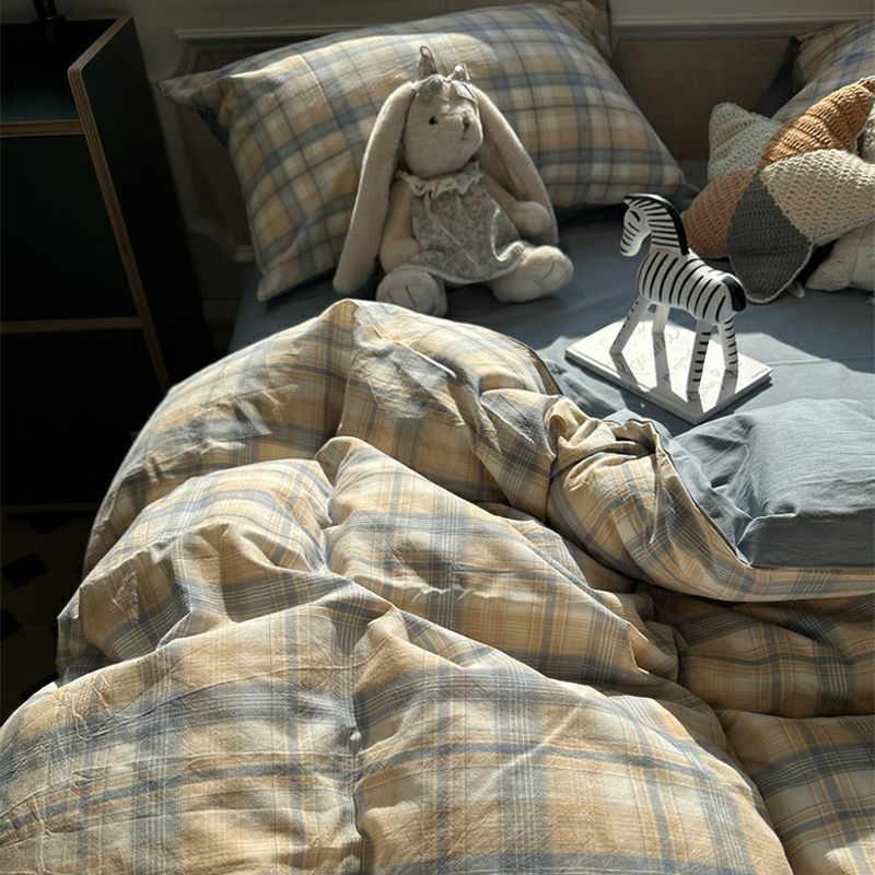 기숙사 침구 이불 커버 싱글 피스 150x200x230 침대 시트 더블 퀼트 커버 샌딩 4 피스 유치원 호텔스토어 가기