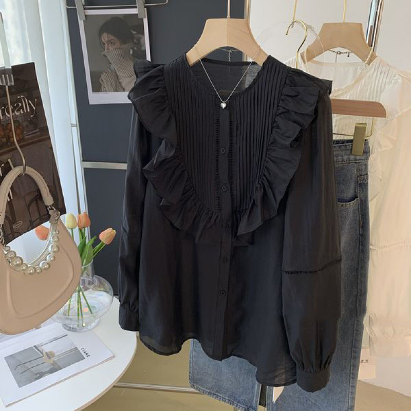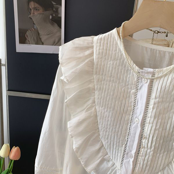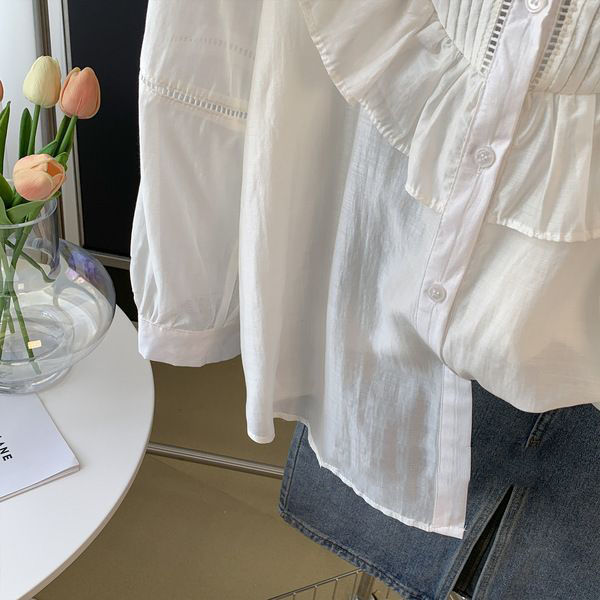 프랑스 곰팡이 Ruffled 셔츠 여성의 가을 2024 새로운 디자인 틈새 세련된 셔츠 긴팔 탑 트렌디스토어 가기