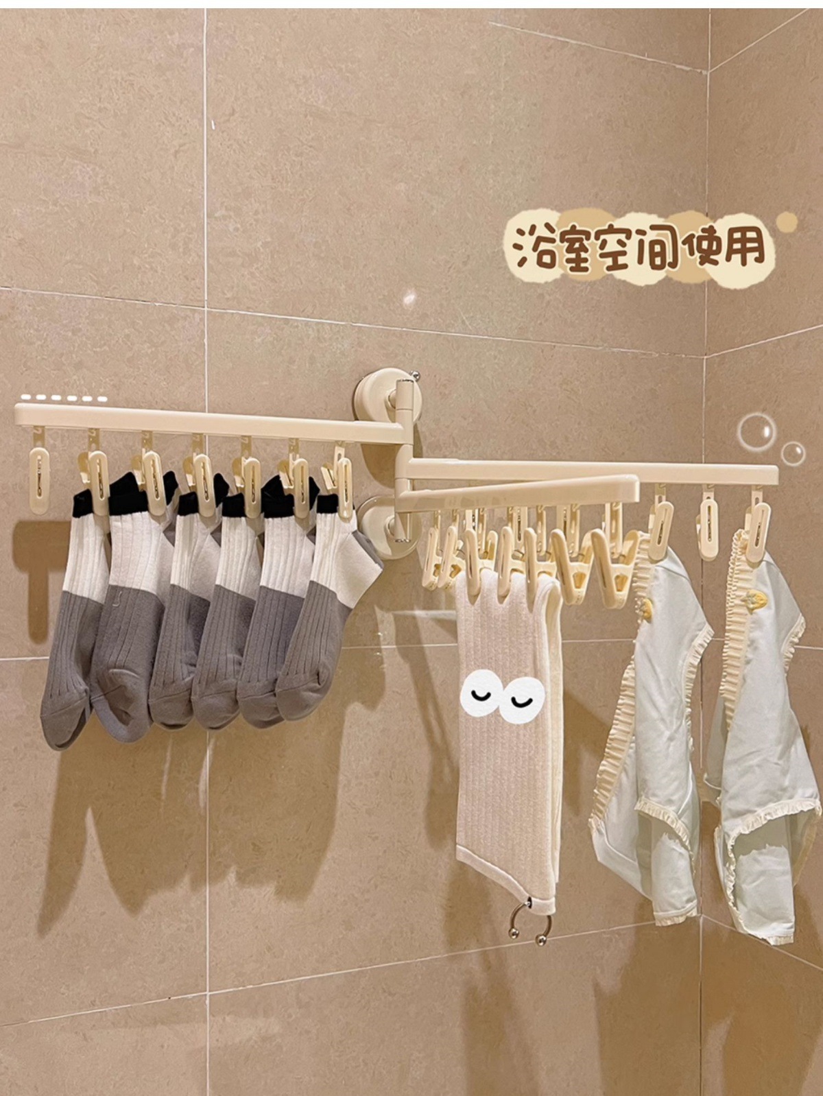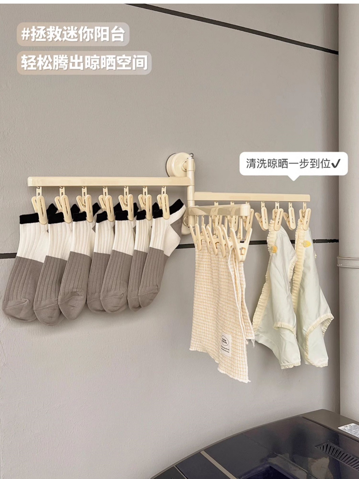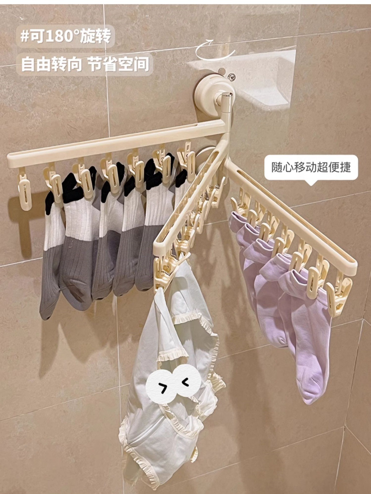 흡입 컵 양말 클립 건조 랙 접이식 멀티 클립 가정용 발코니 다기능 속옷 건조 랙