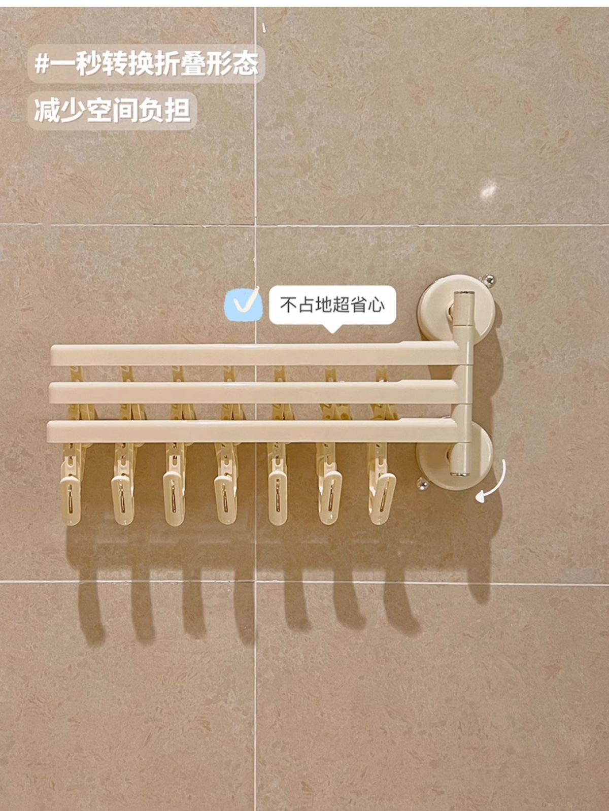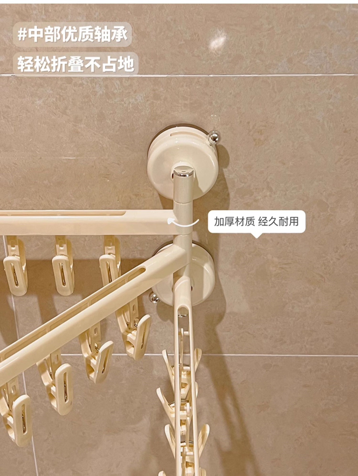 • 흡착컵 의류 건조대 접이식 [3극 21클립] 강력한 클립/흔적 없는 건조