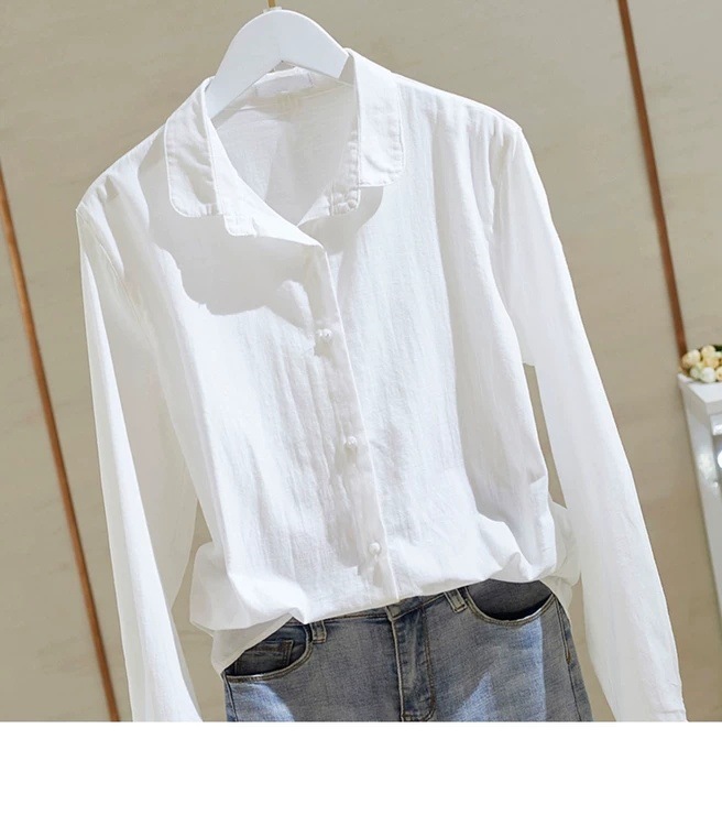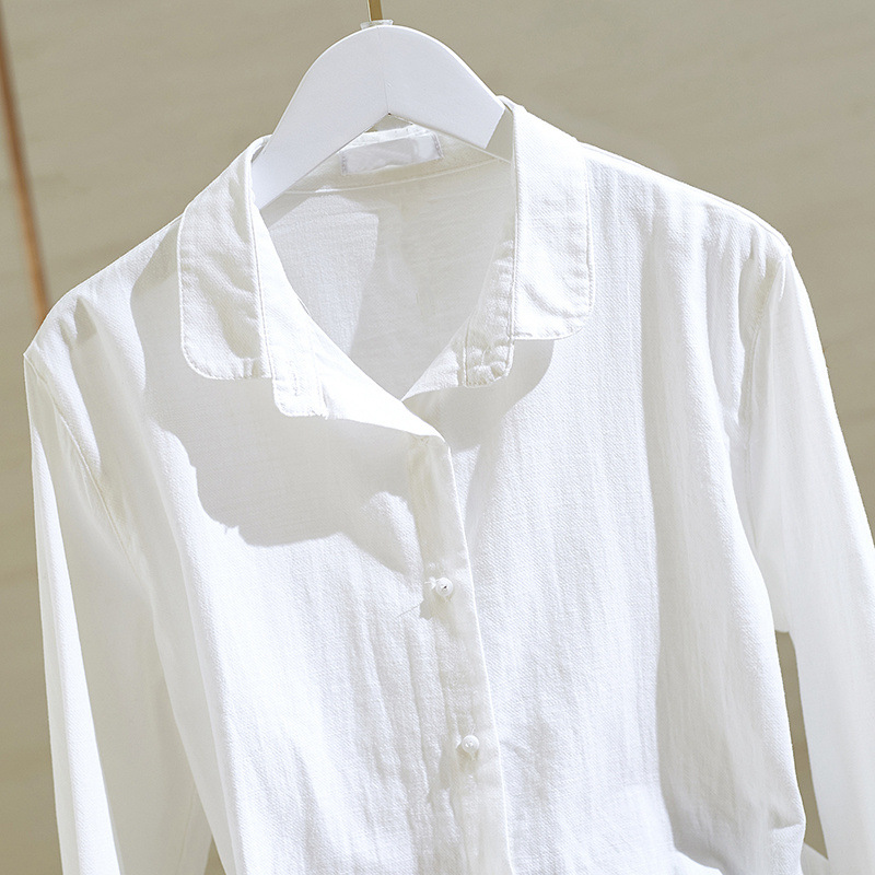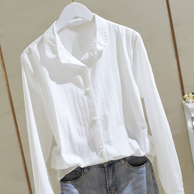 코튼 리넨 화이트 셔츠 여성 2024 봄 새로운 느슨한 한국식 긴팔 하라주쿠 셔츠 최고 디자인 센스 니쉬스토어 가기