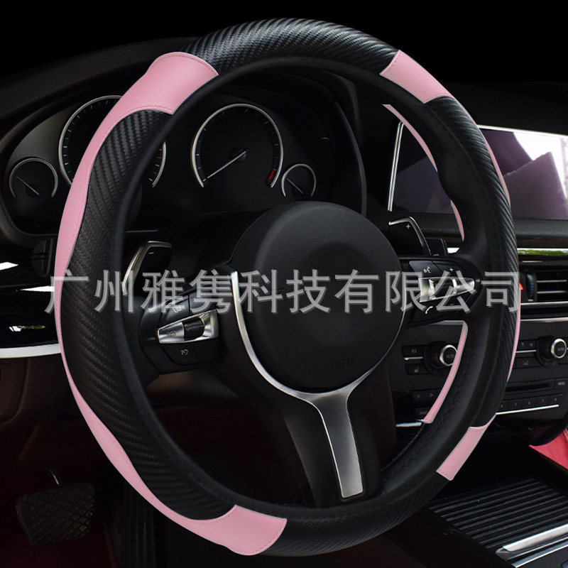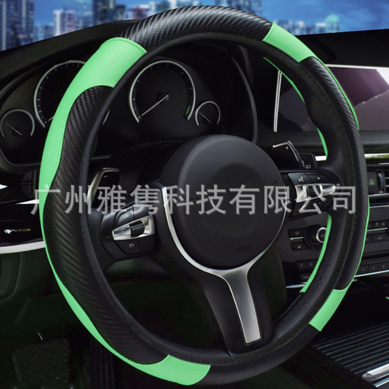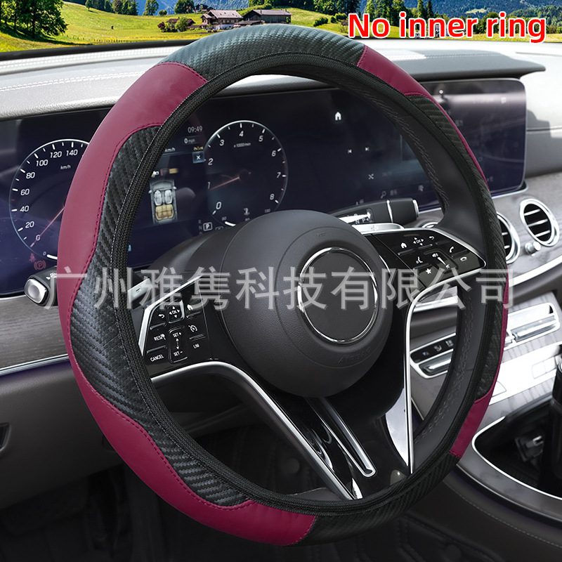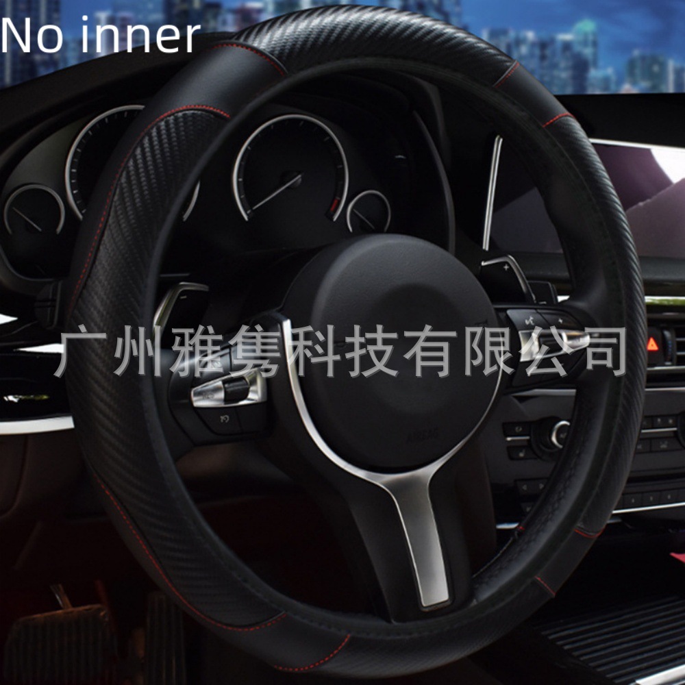 자동차 스티어링 휠 커버 탄성 내부 링 탄소 섬유 곡물 가죽 사계절 보편적 인 국경 전자 상거래 자동차 핸들 커버 도매스토어 가기