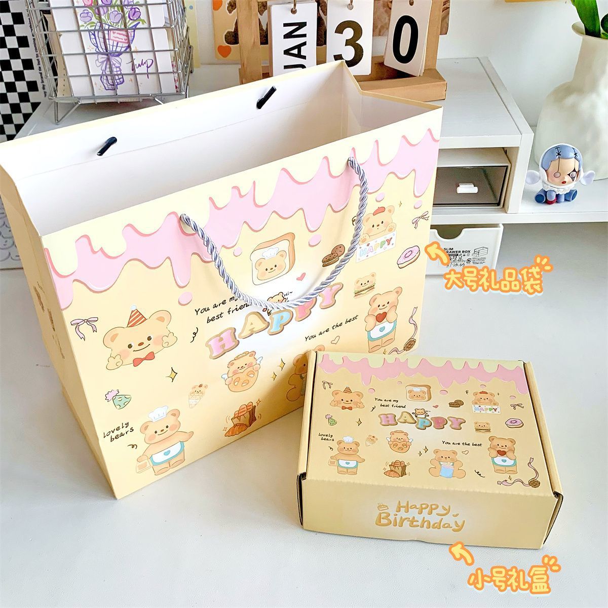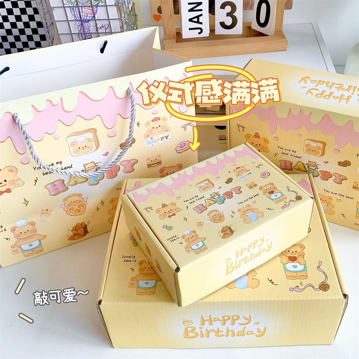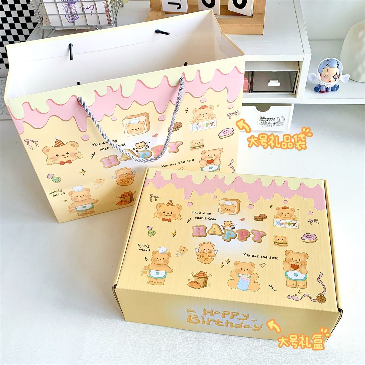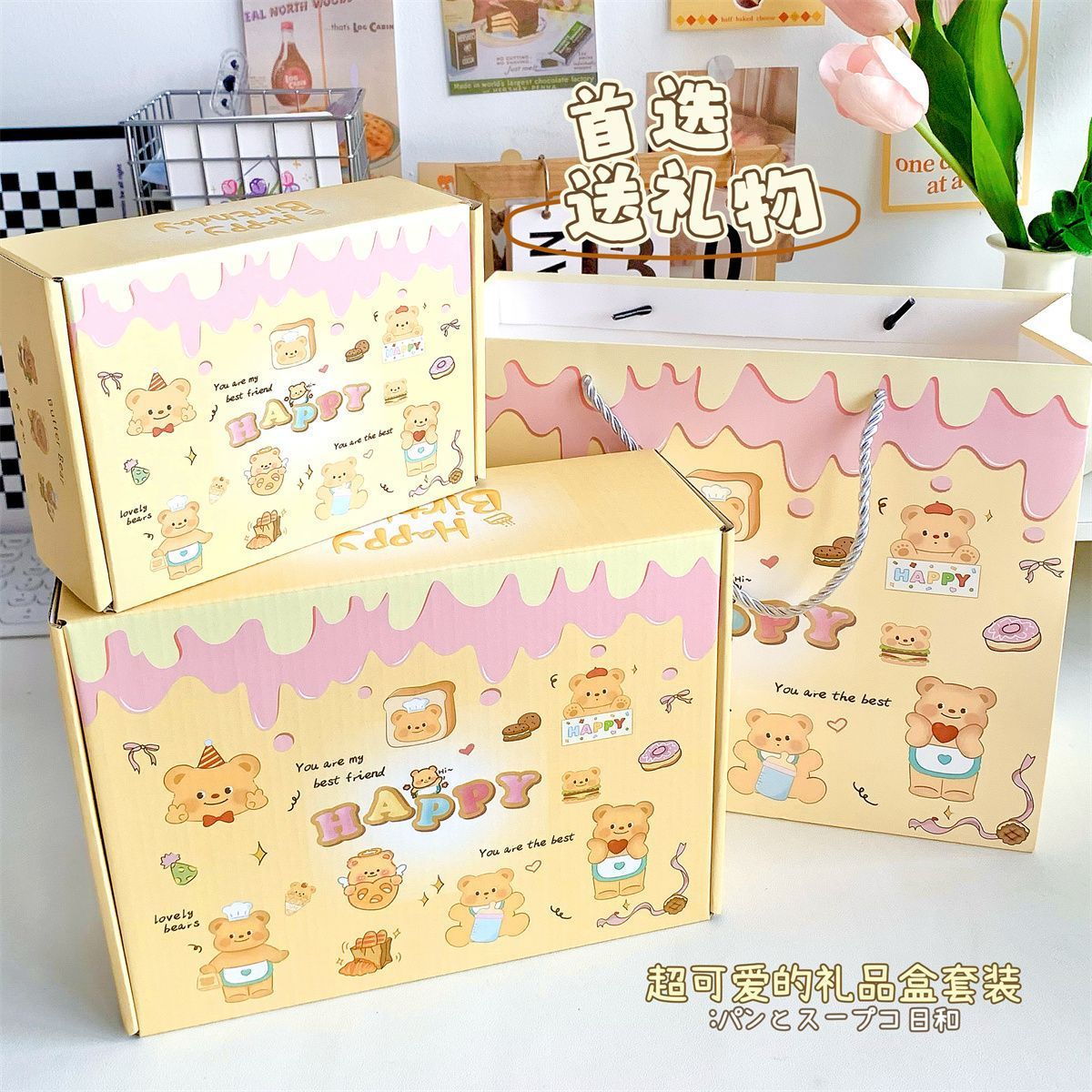 버터 곰 선물 상자 두꺼운 선물 가방 귀여운 포장 상자 만화 종이 가방 큰 선물 빈 상자 인터넷 유명 인사스토어 가기