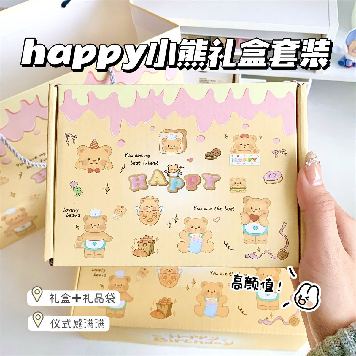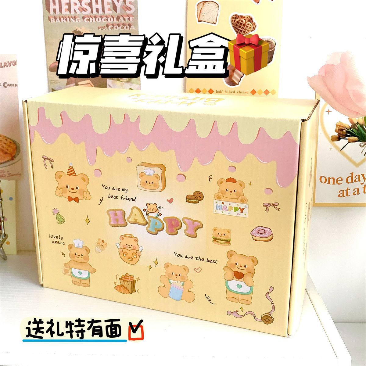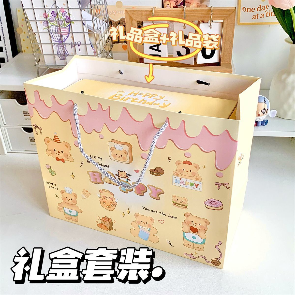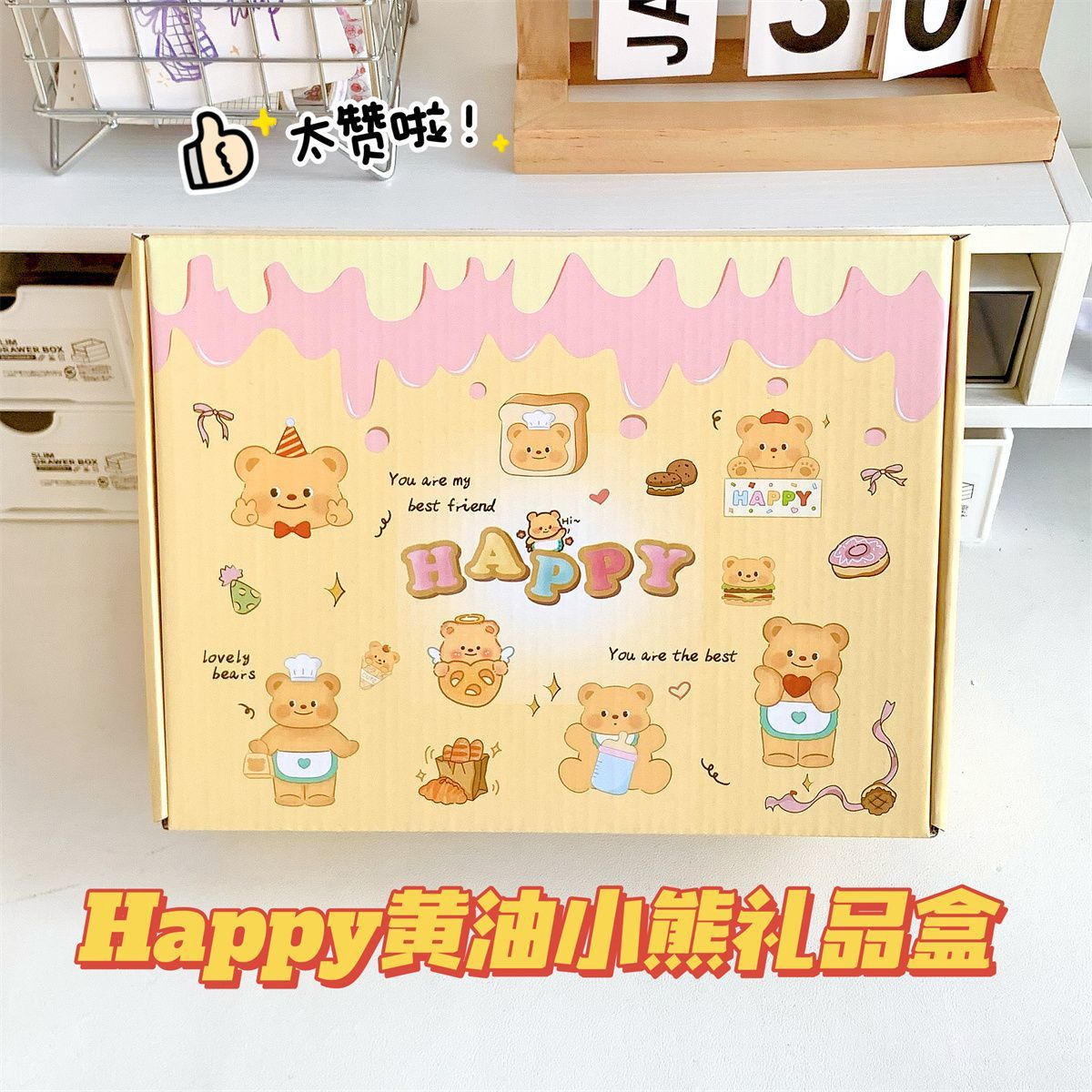 버터 곰 선물 상자 두꺼운 선물 가방 귀여운 포장 상자 만화 종이 가방 큰 선물 빈 상자 인터넷 유명 인사스토어 가기
