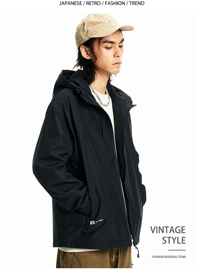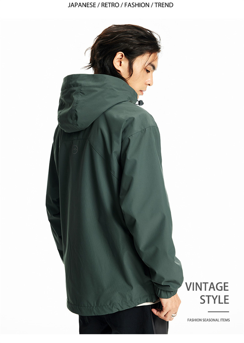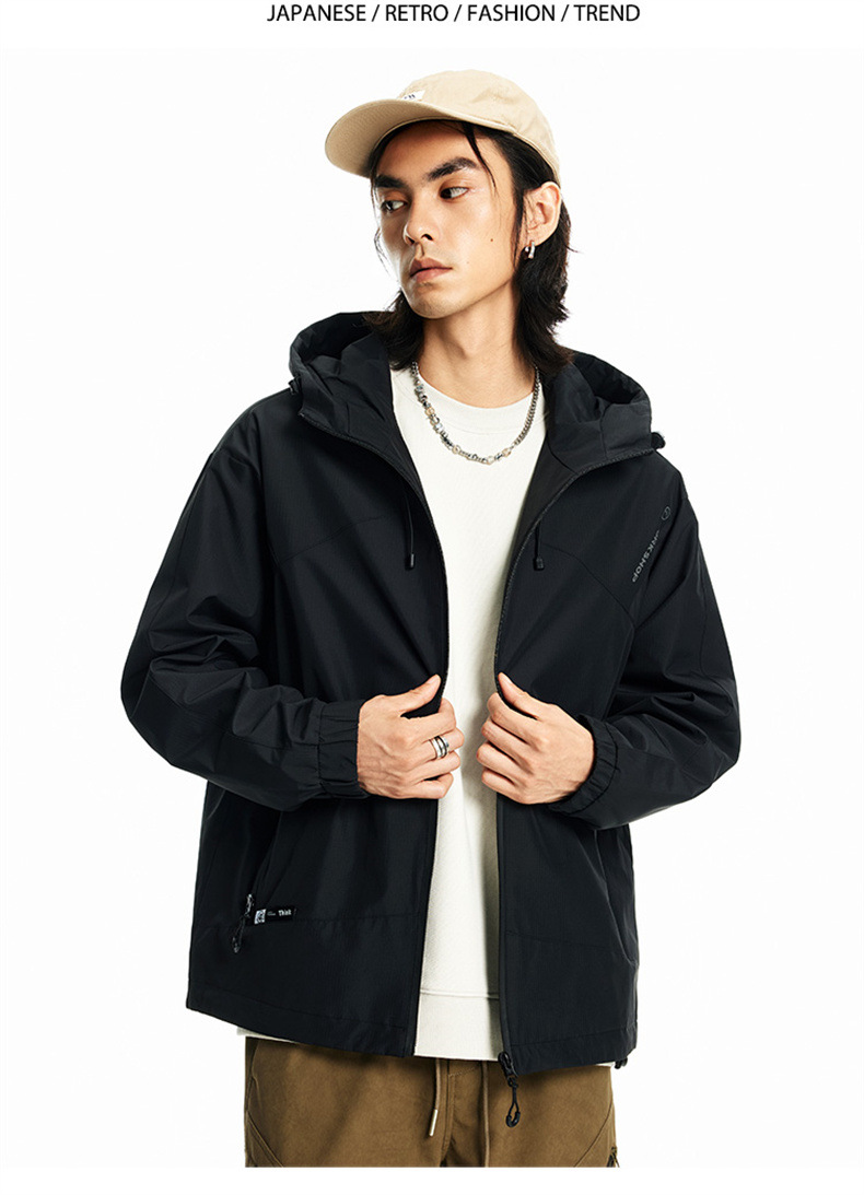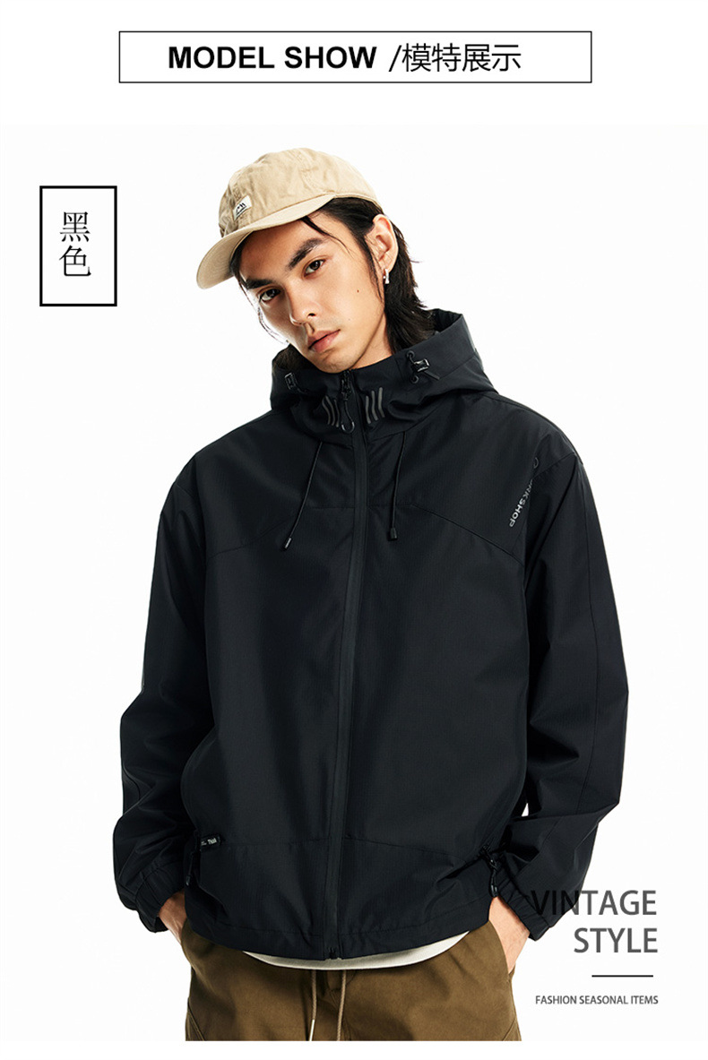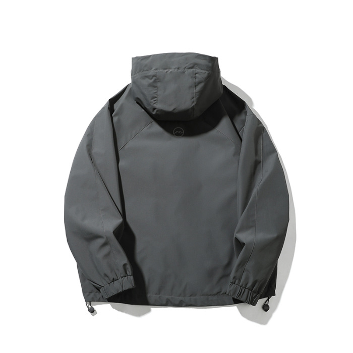 防水户外连帽休闲夹克男秋季登山宽松大码外套男士简约百搭上衣服