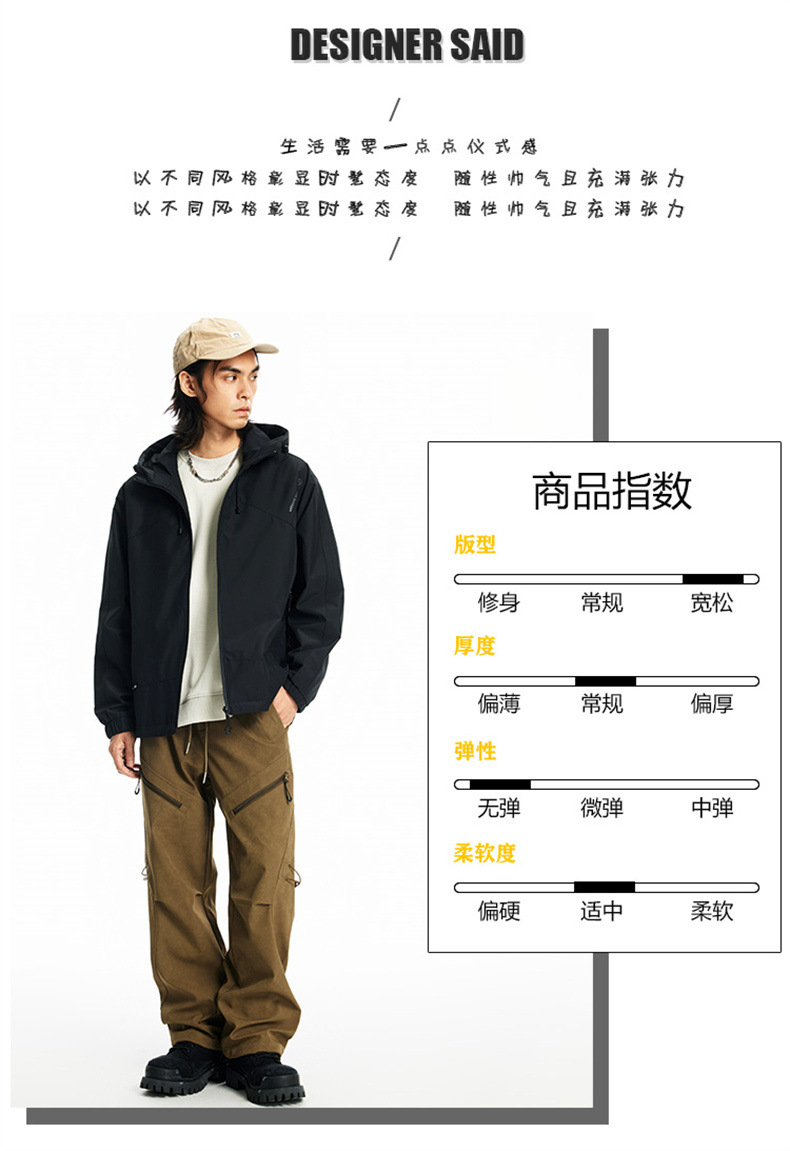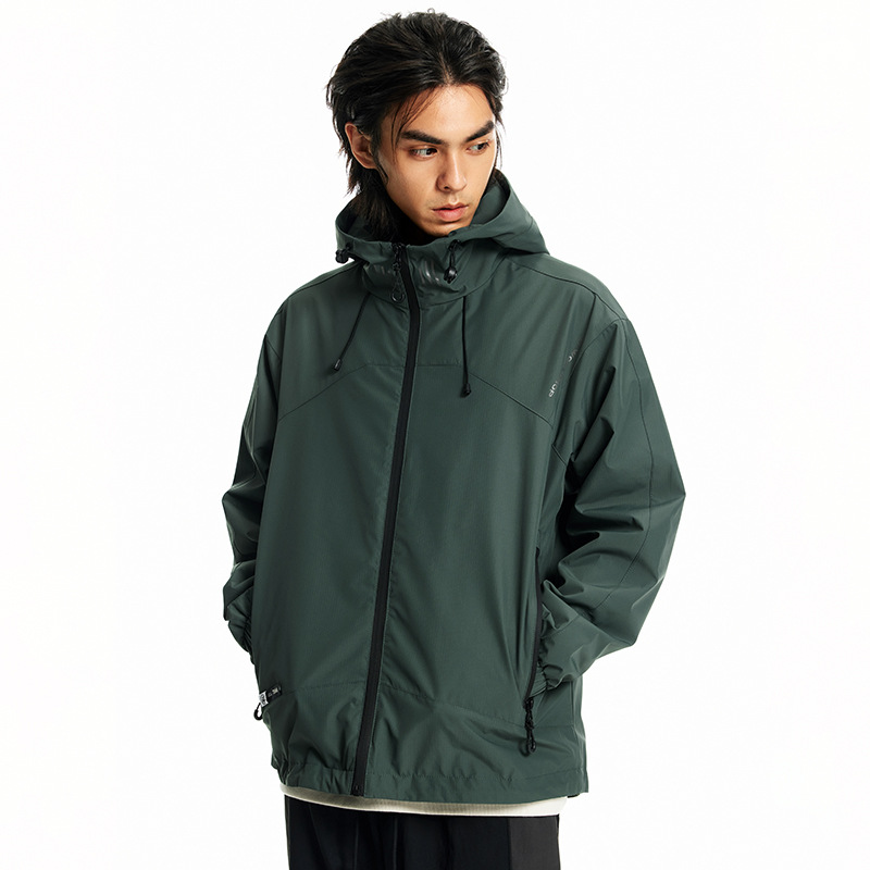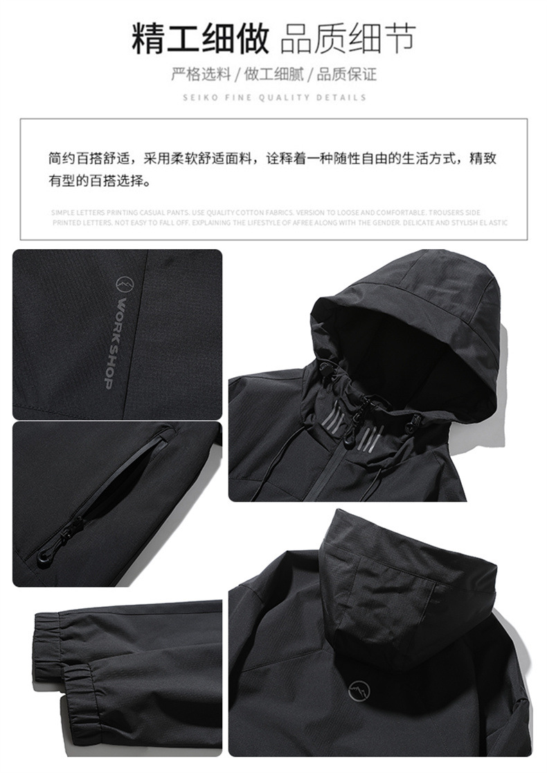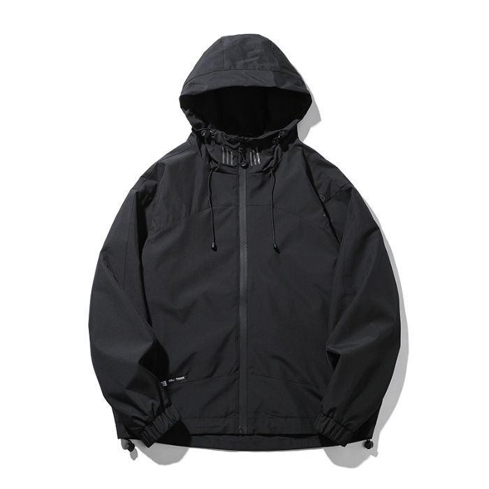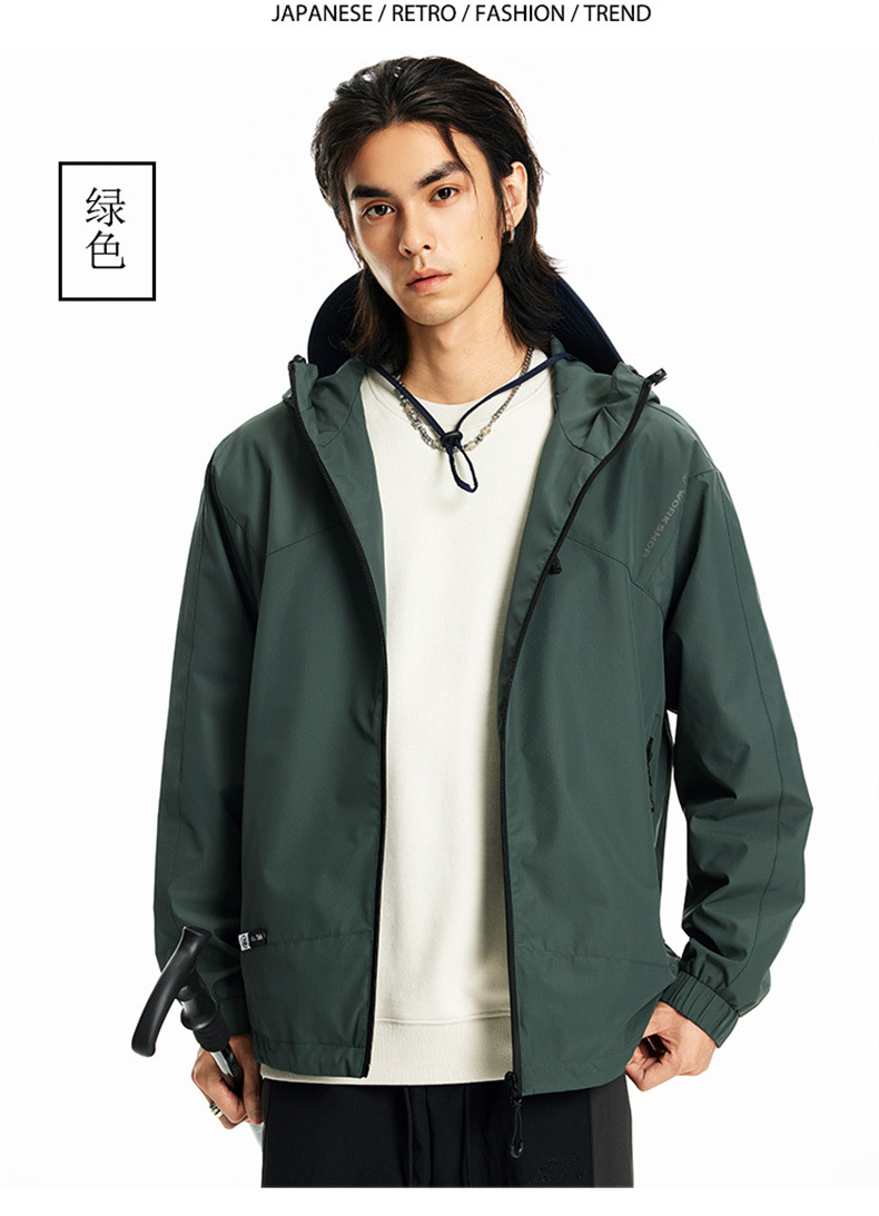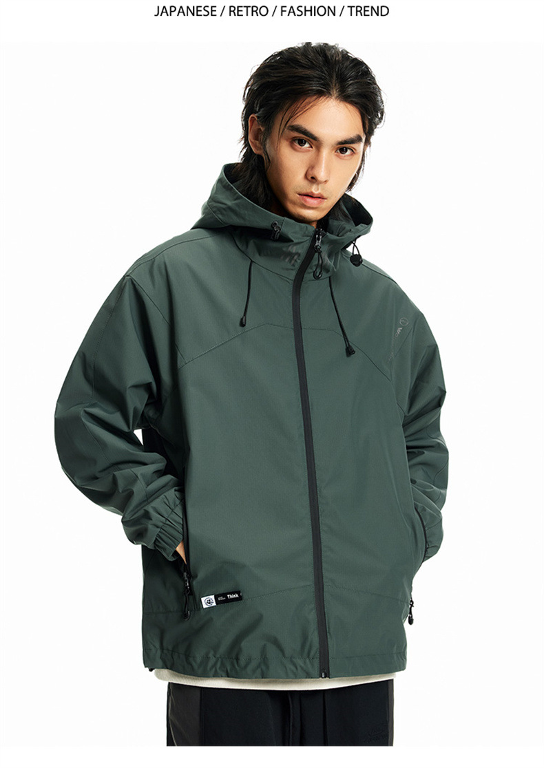 防水户外连帽休闲夹克男秋季登山宽松大码外套男士简约百搭上衣服