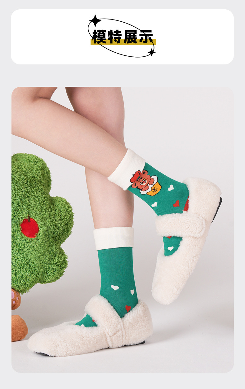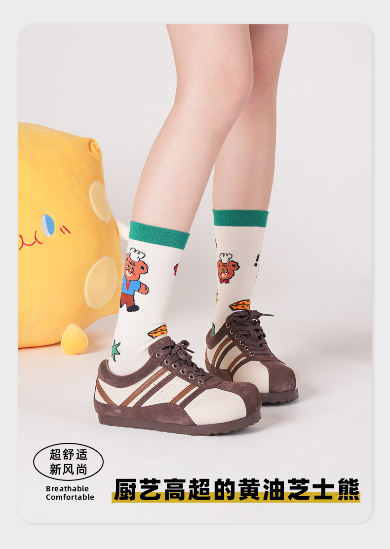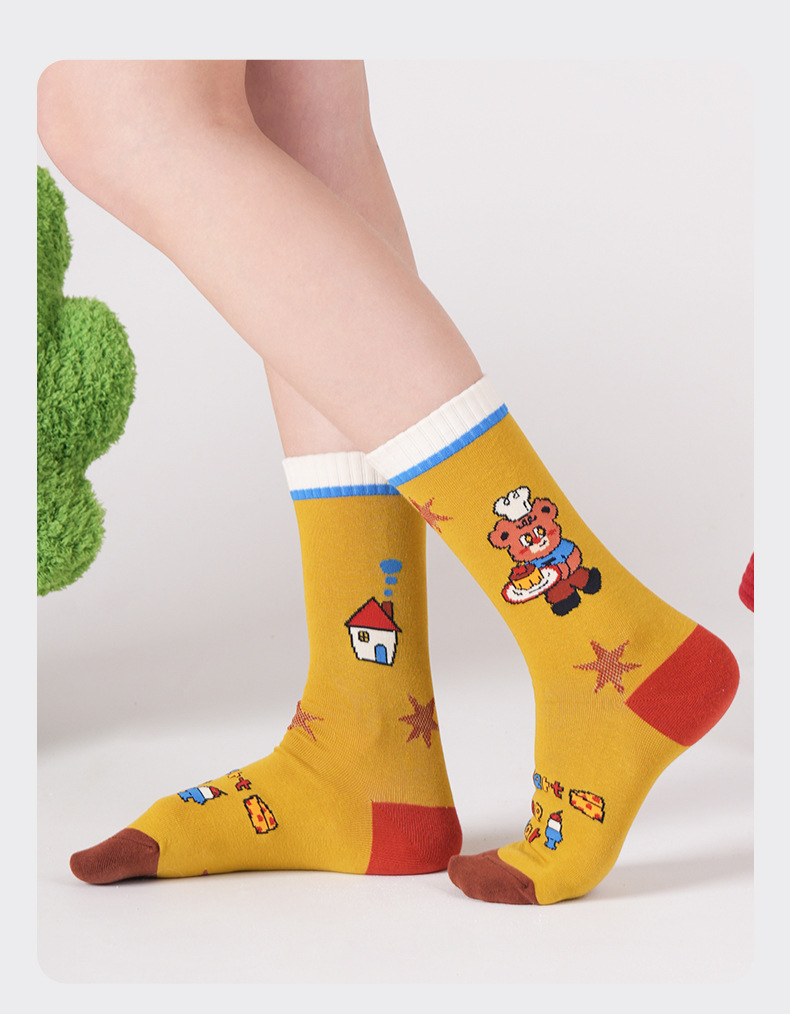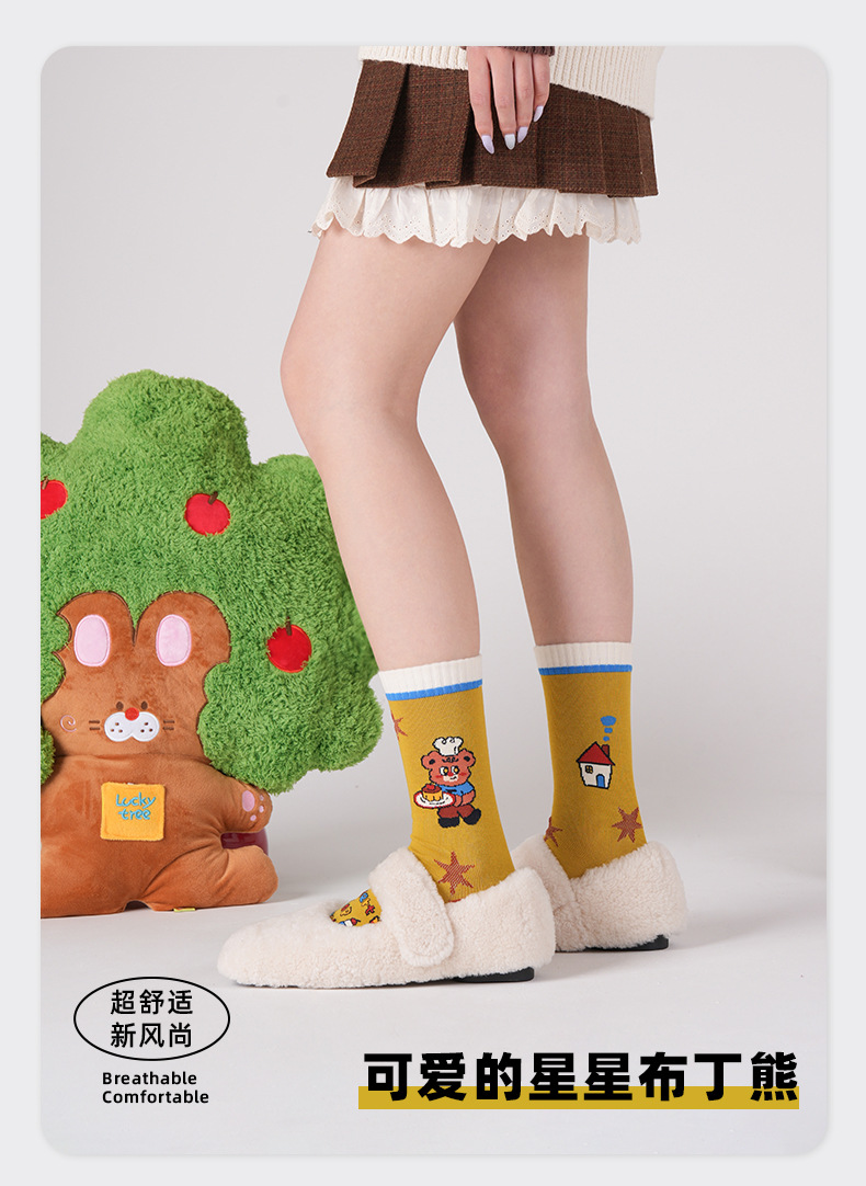 2025 여름 얇은 도파민 조수 양말 귀여운 만화 곰 여성 양말 그림 유리 실크 튜브 양말 통기성 면스토어 가기