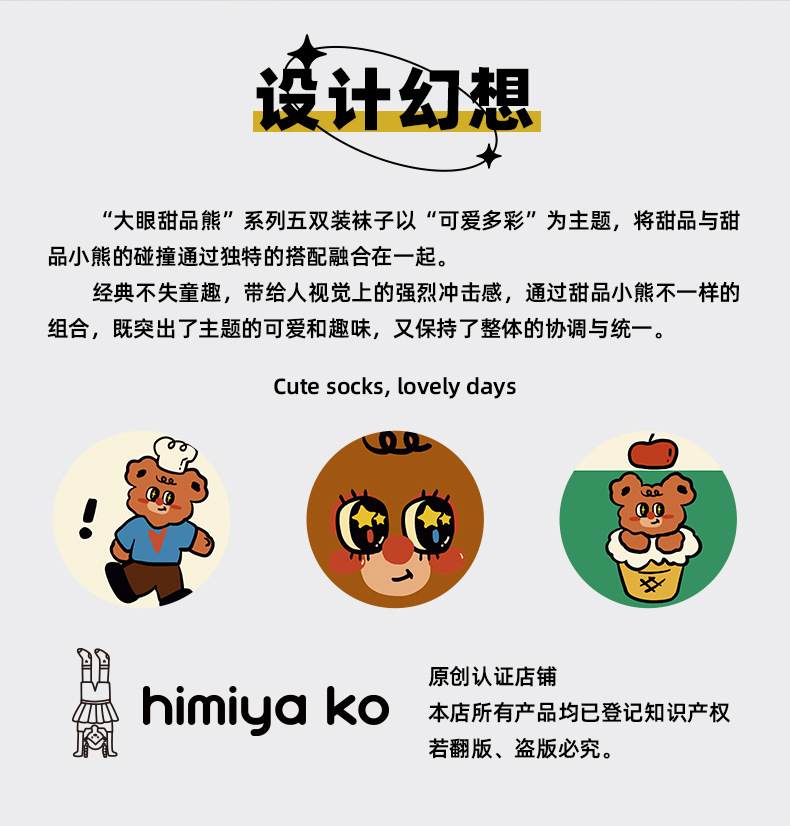 • 【3켤레 세트】 왕눈이 디저트 곰돌이 시리즈 125