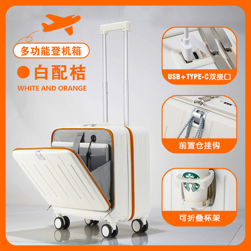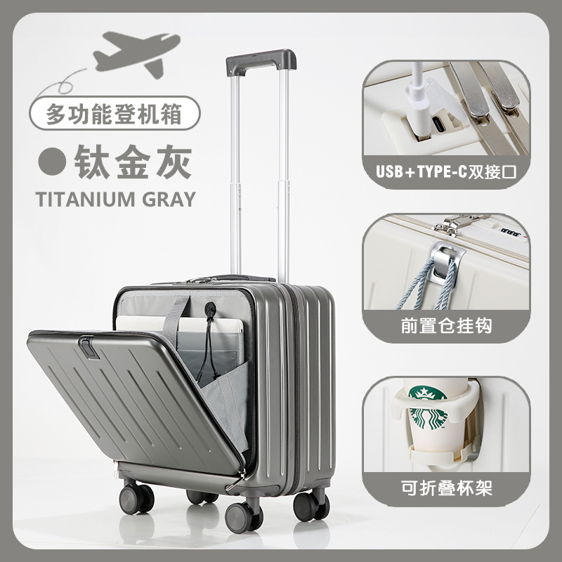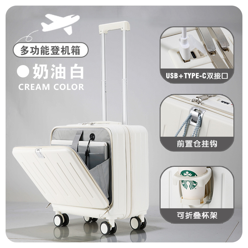 새로운 전면 오픈 다기능 미니 수하물 18 인치 20 작은 탑승 상자 어린이 트롤리 케이스 비밀번호 여행 가방