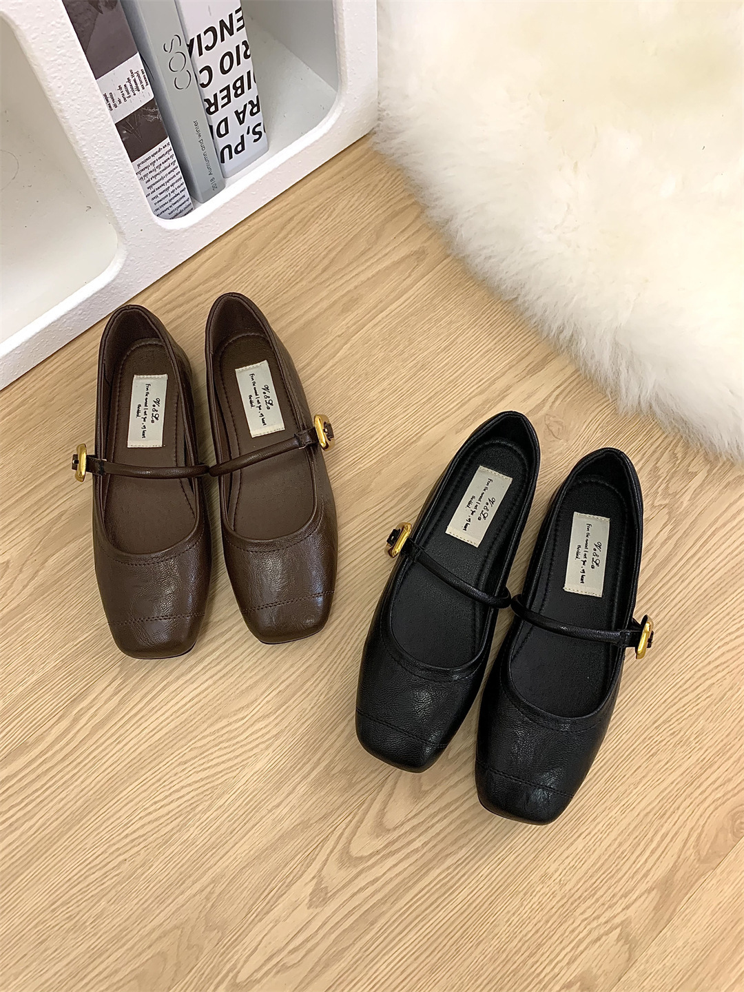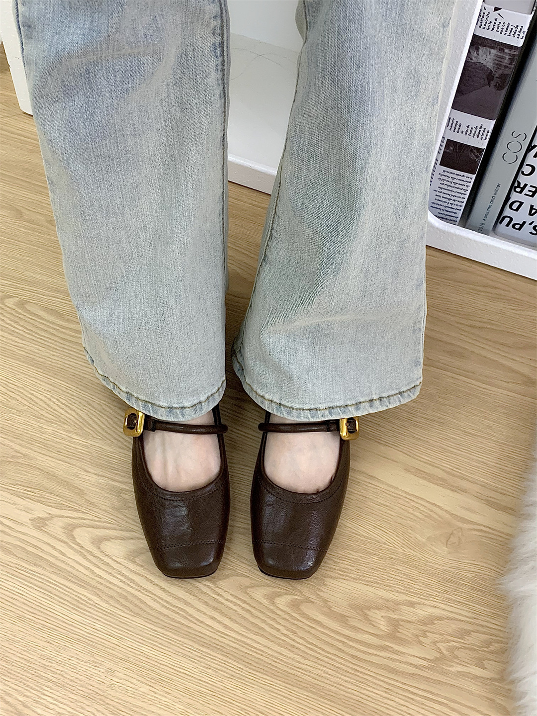 한국식 올매치 싱글 스트랩 신발 실버 여성 신발 여름 프랑스 스타일 레트로 메리 제인 신발 플랫 신발 작은 가죽 신발스토어 가기