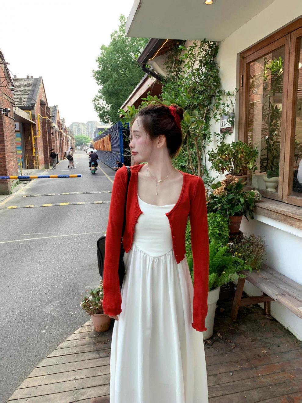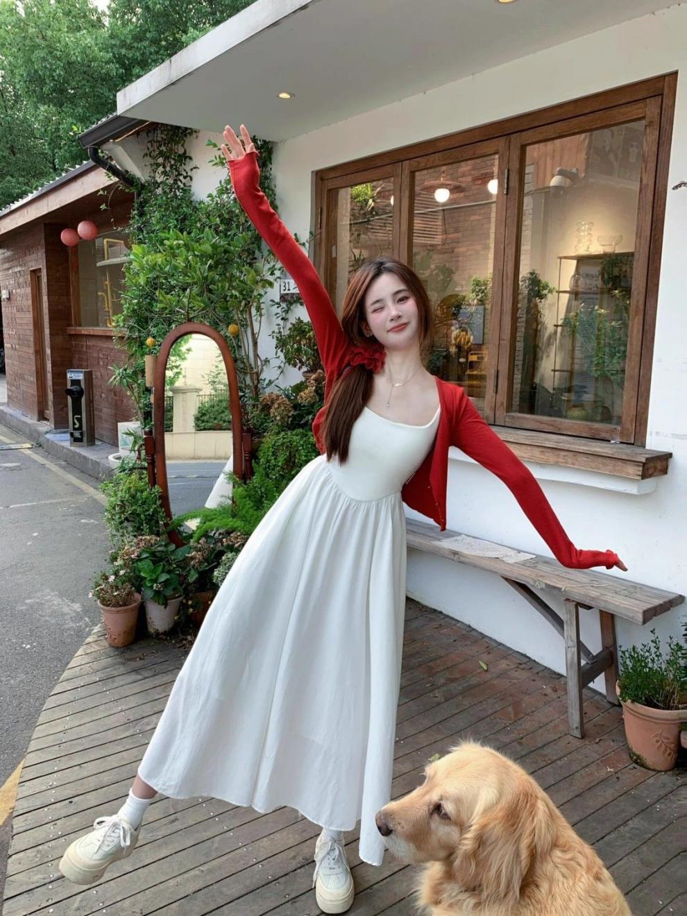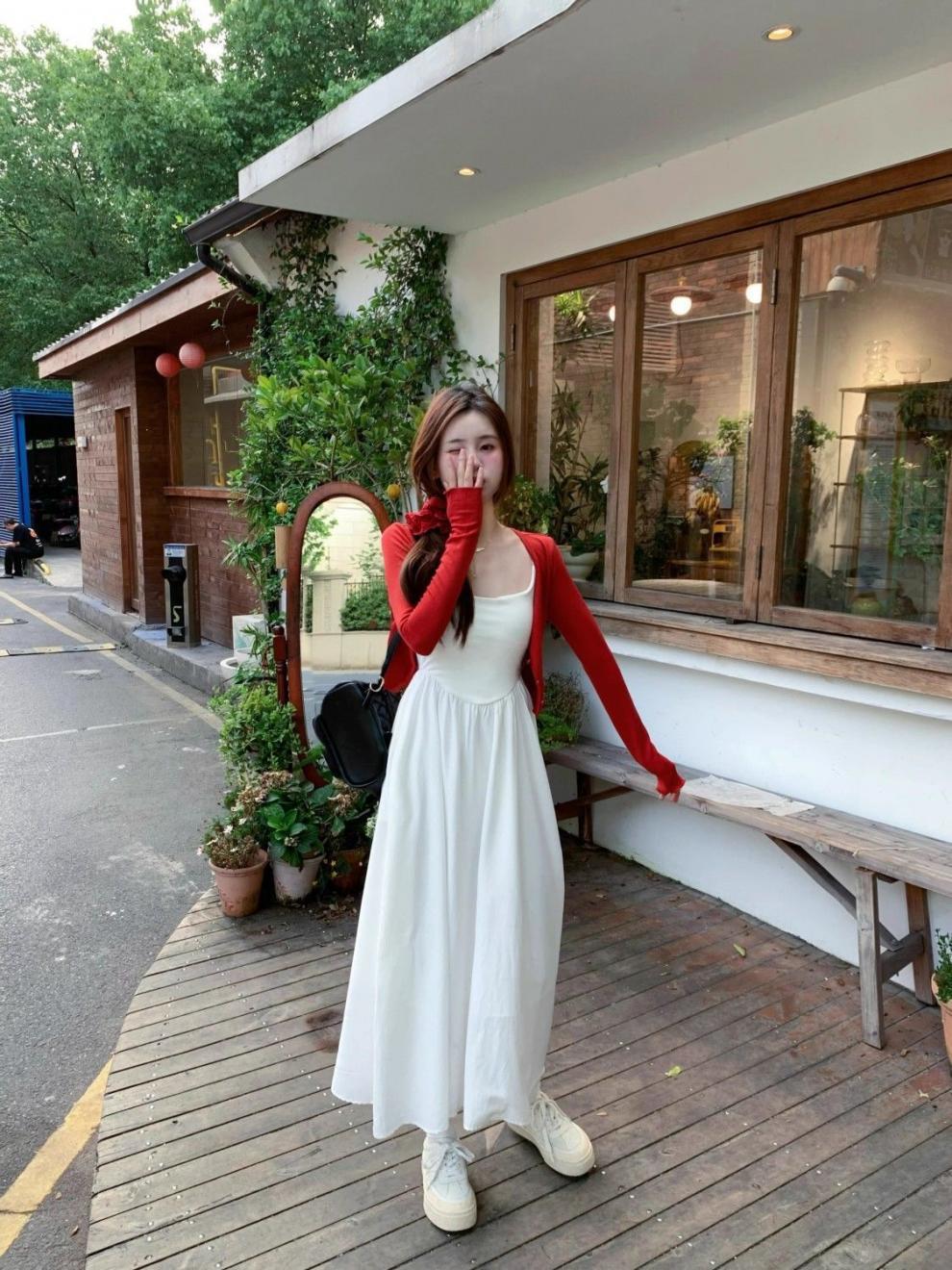 • 빨간 가디건 + 흰색 원피스 [슈트]