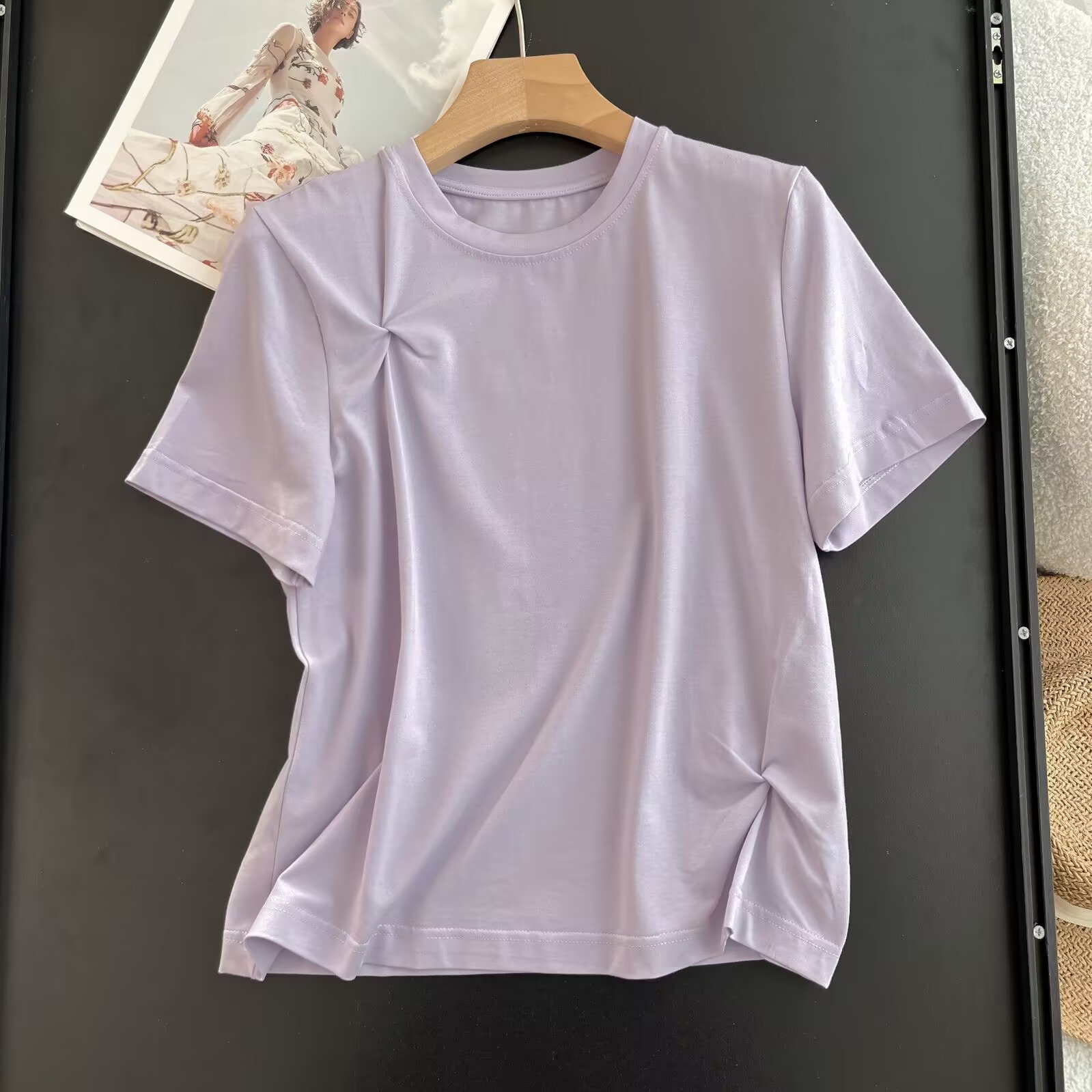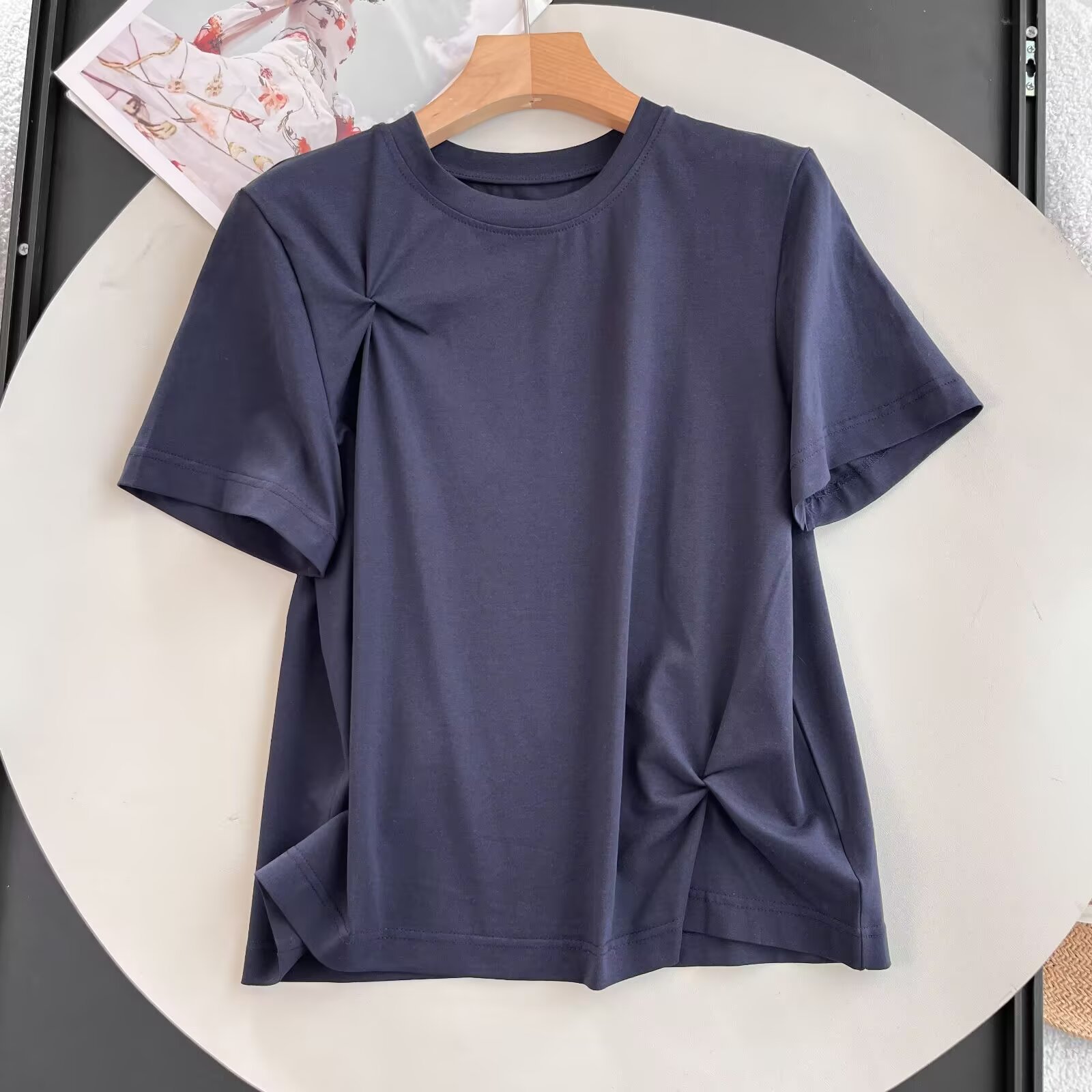 UC & ZA 대외 무역 국경 간 AliExpress 여성 착용 유럽과 미국 스타일 크루 넥 디자인 느낌 매듭 장식 느슨한 짧은 소매 조커 티셔츠스토어 가기