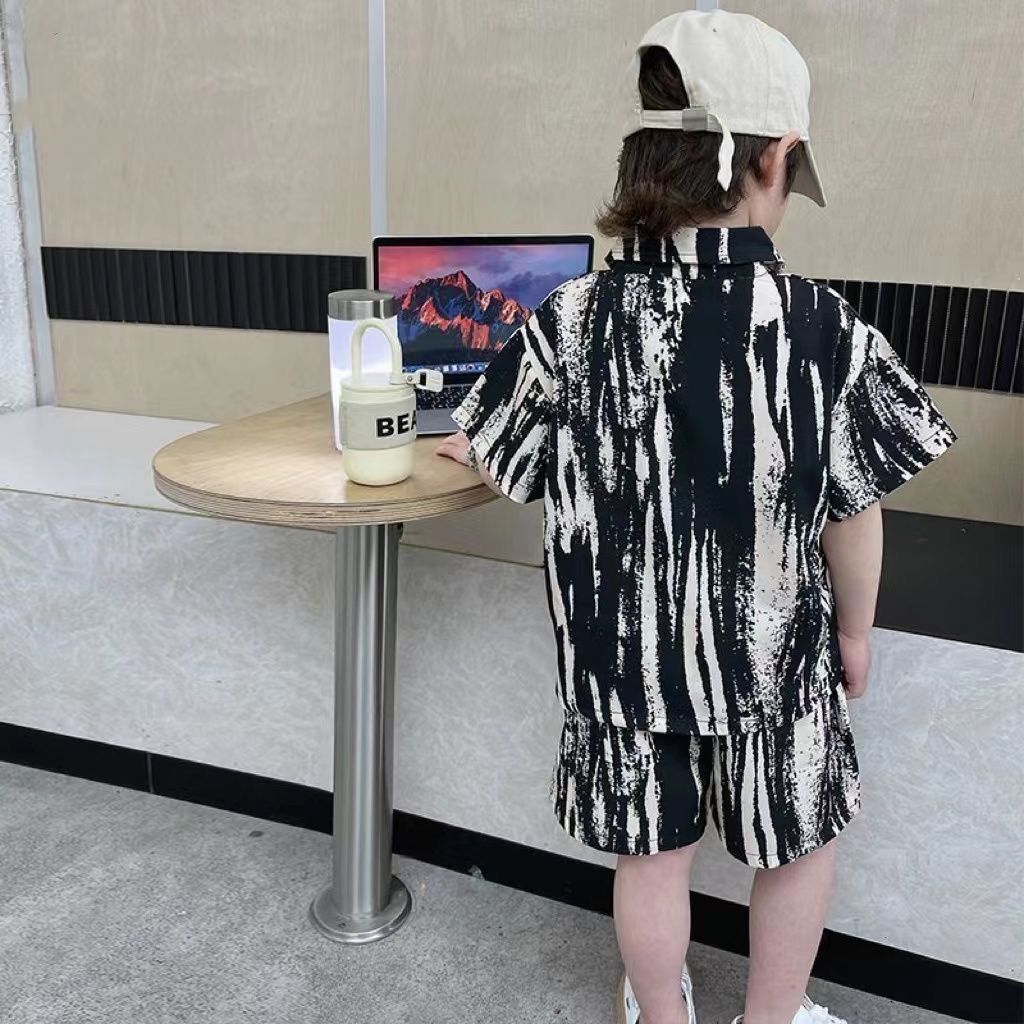 남학생 여름 세트 2023 새 어린이 반팔 반바지 셔츠 투피스 세트 유행 캐주얼 세트 중년 어린이스토어 가기