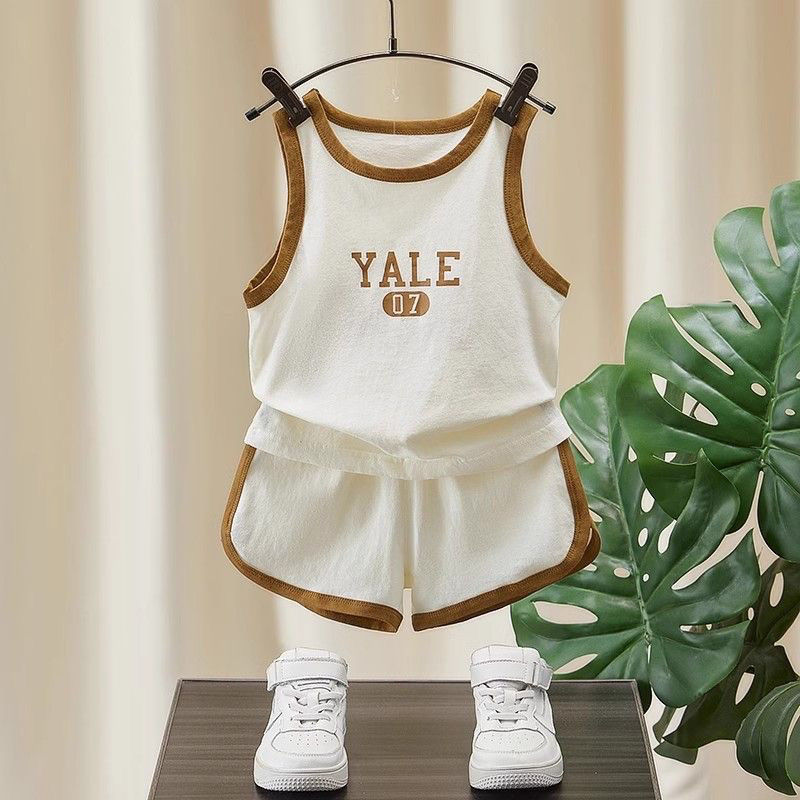 남자들의 민소매 조끼 반바지 세트 2024 년 새 여름 소년 아기 어린이 옷 어린이 잘 생긴 여름