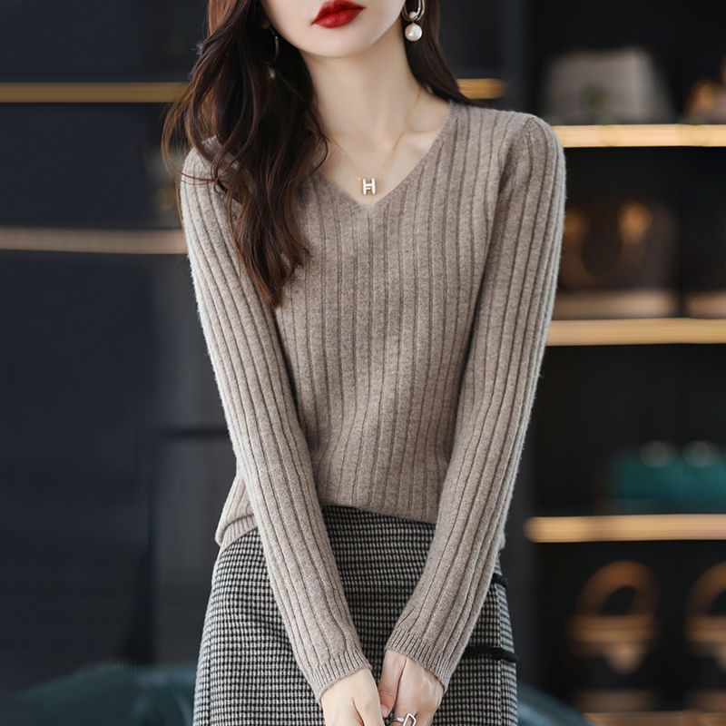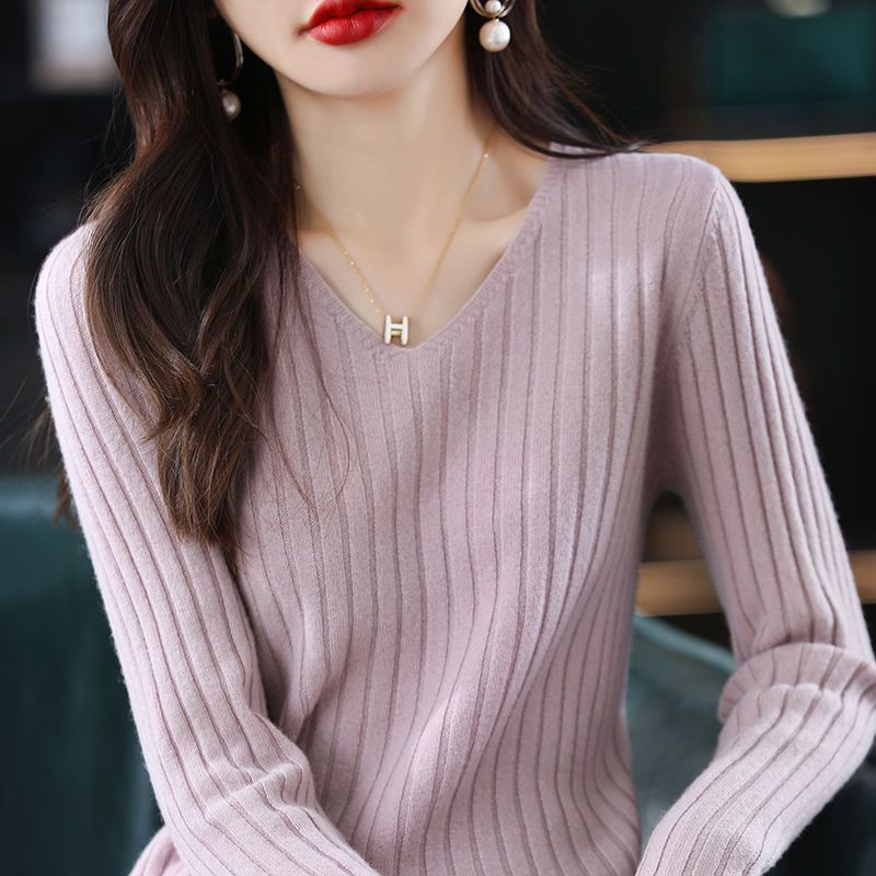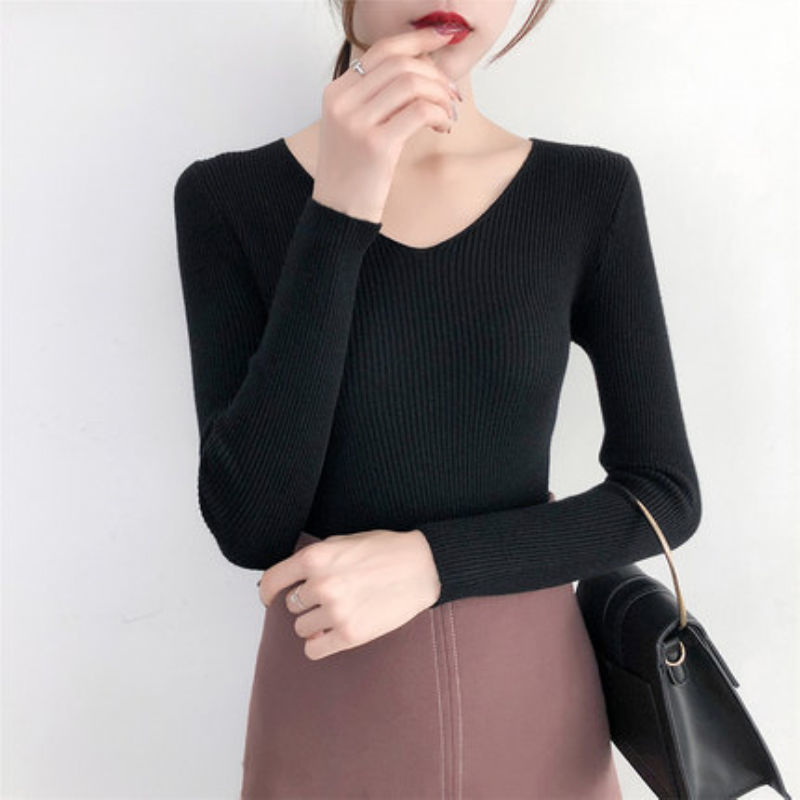 2024 새로운 V 넥 풀오버 긴팔 니트베이스 셔츠 여자 스웨터 올 매치 이너 스웨터 탑