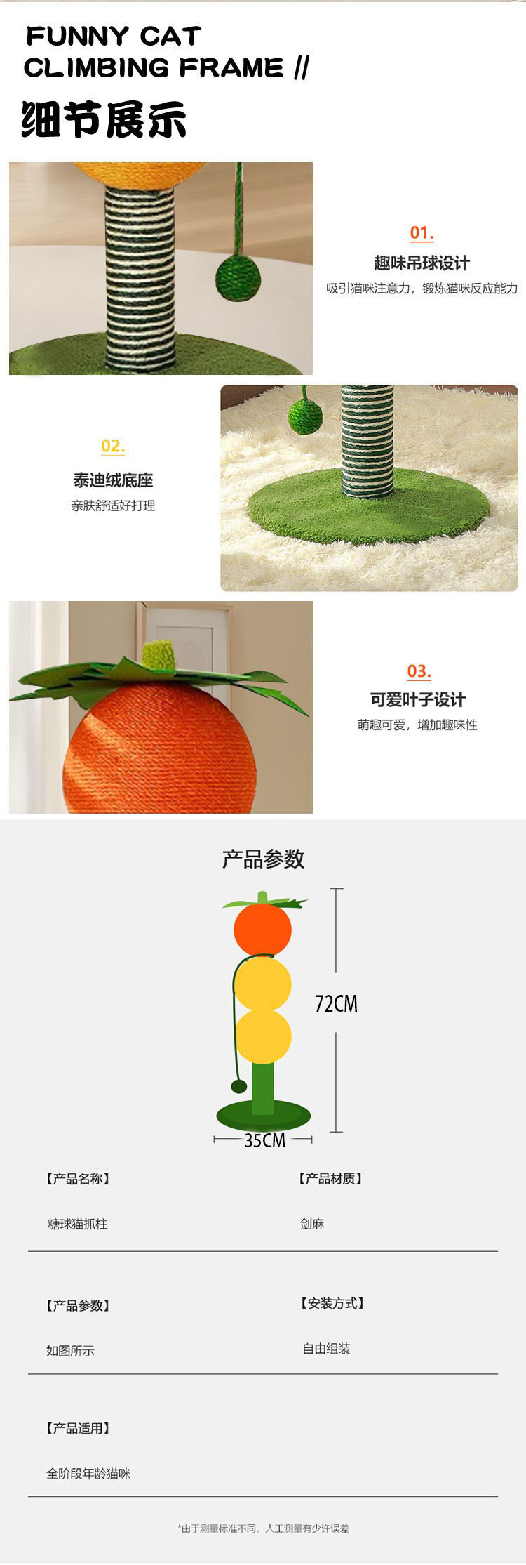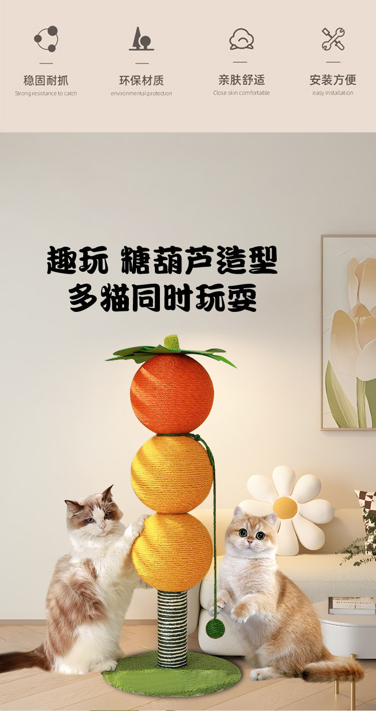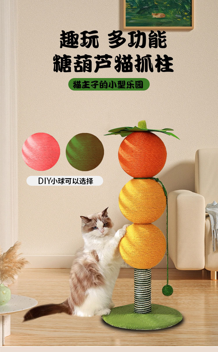 Sisal Cat Grasping Column 설탕 코팅 haws 고양이 스크래치 보드 고양이 등반 랙 통합 내마모성 스크랩 프리 수직 스크래치 보드 클로 그라인더 장난감