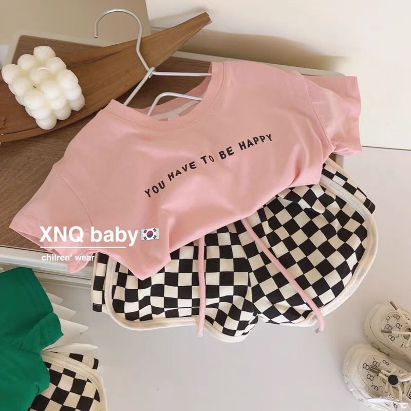 여자 여름 2023 여름 새로운 소년과 소녀 스포츠 세트 어린이 편지 반바지 반바지 투피스 세트스토어 가기