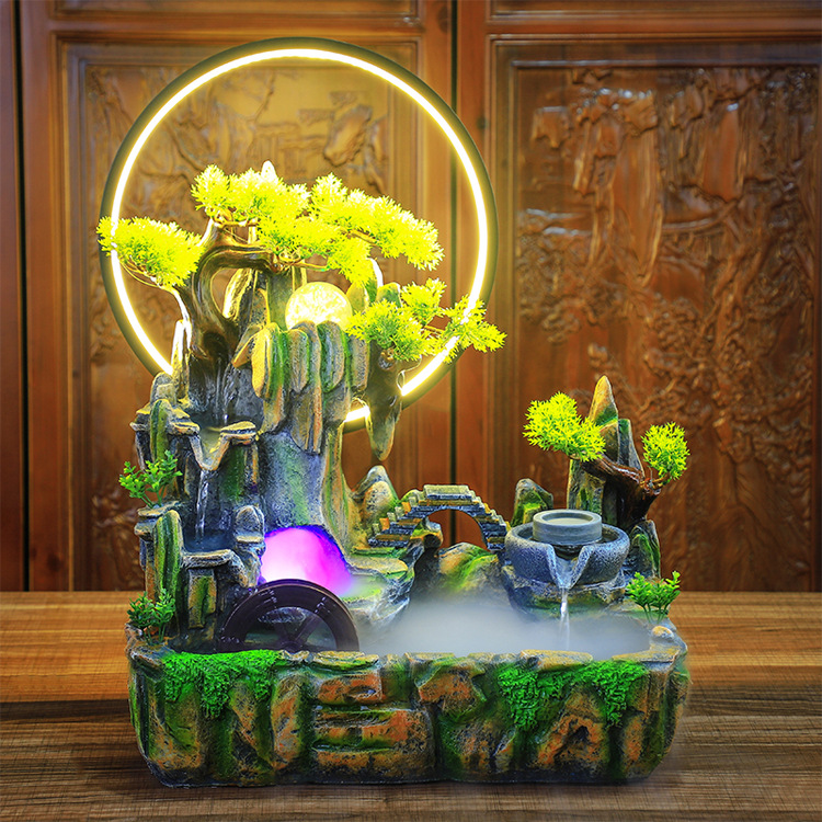 중국 스타일의 램프 서클 사무실 바위 흐르는 물 분수 실내 데스크탑 생선 탱크 풍수 휠 거실 장식 장식품