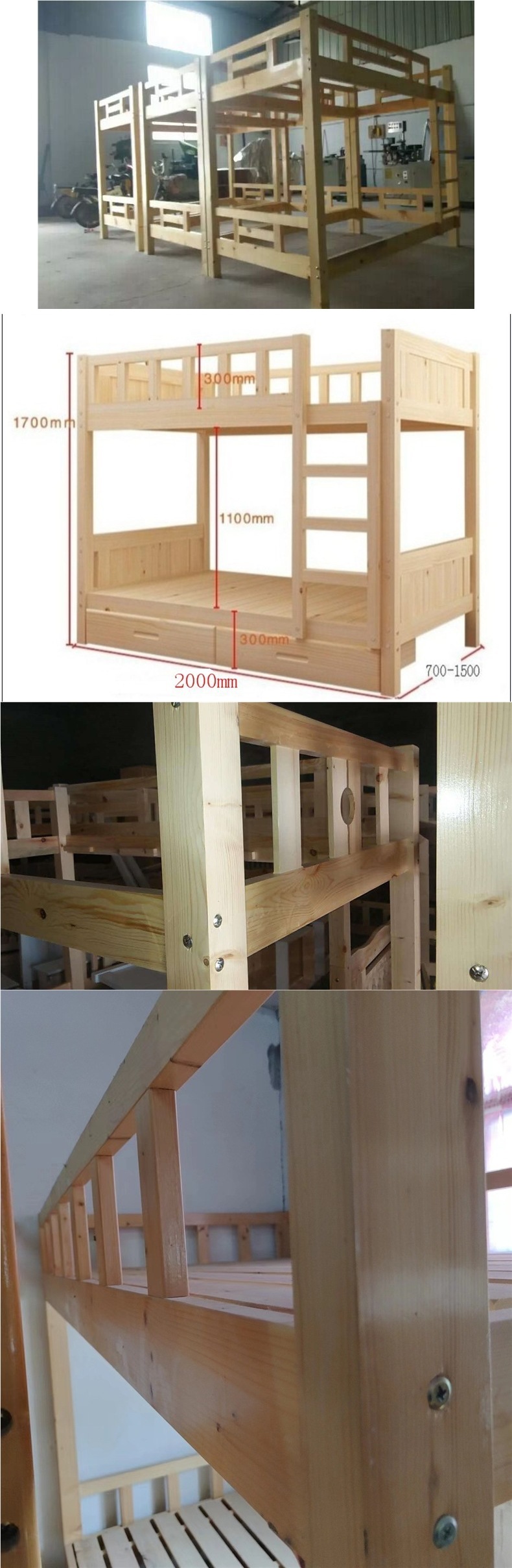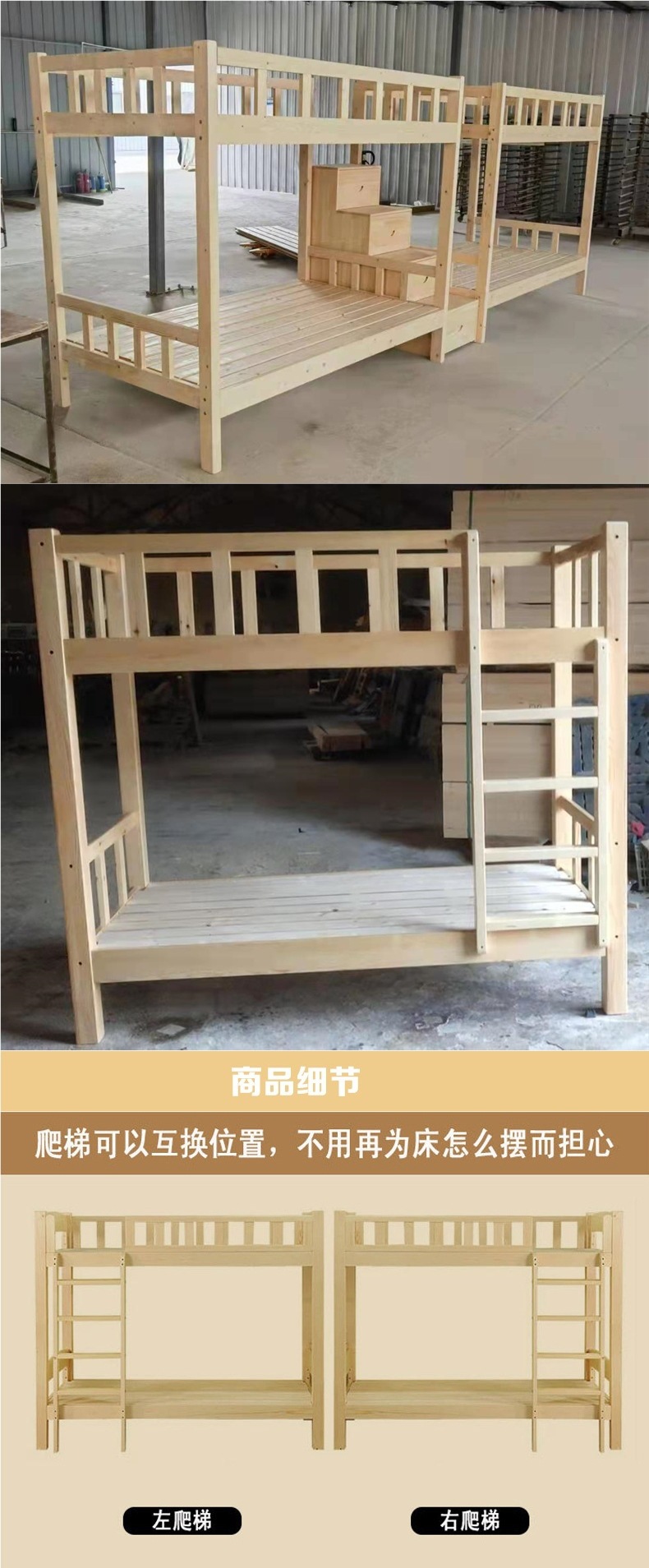 단단한 나무 더블 레이어 침대 학교 기숙사 소나무 높고 낮은 어머니 침대 직원 상단 및 아래 나무 단단한 나무 침대 굵게스토어 가기