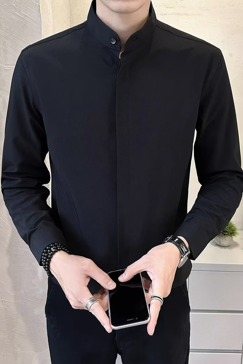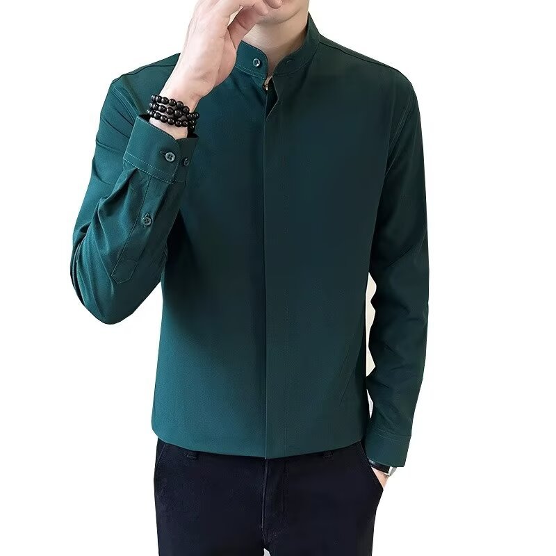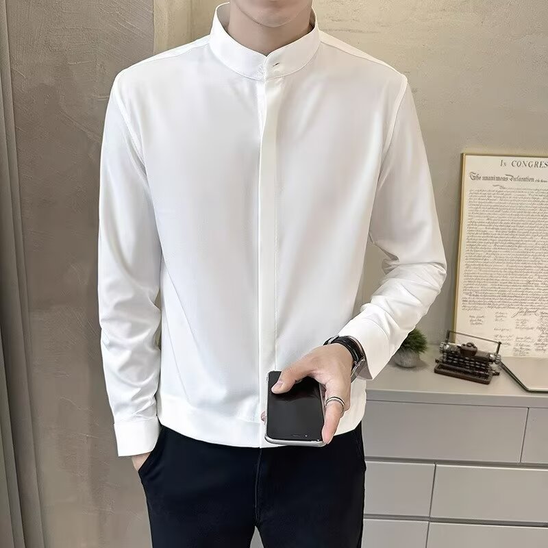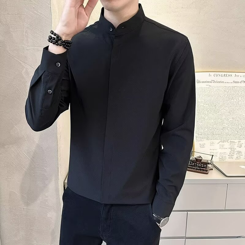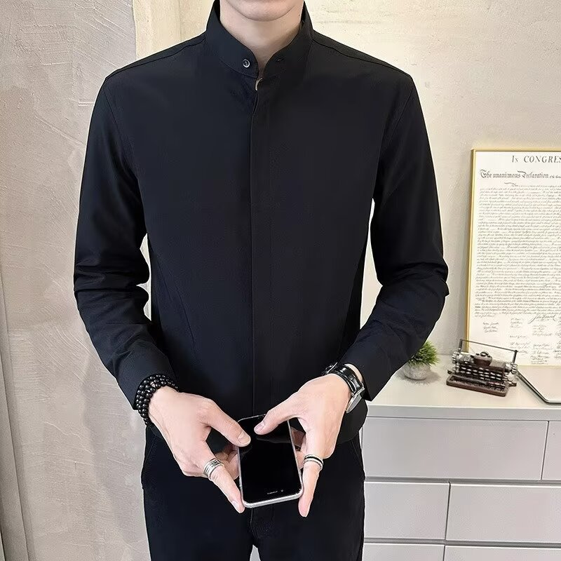 봄 새로운 스타일 칼라 셔츠 남자의 긴 소매 캐주얼 단색 셔츠 한국 스타일 비즈니스 원피스 탑