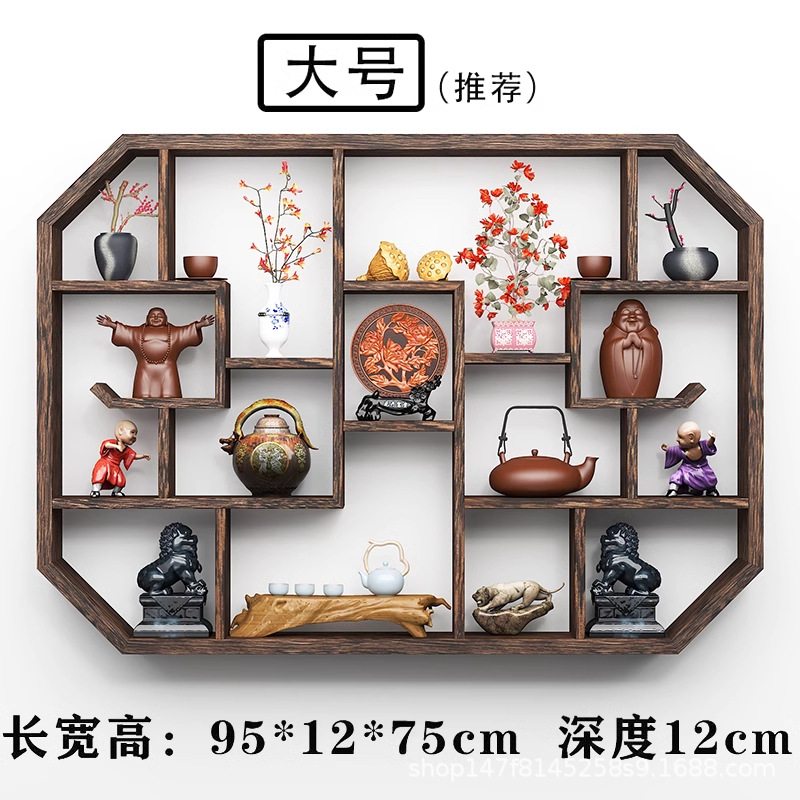 골동품 랙 솔리드 우드 새로운 중국 벽 걸이 벽 차 세트 디스플레이 랙 스토리지 랙 간단한 현대 Duobao Pavilion 골동품 랙스토어 가기