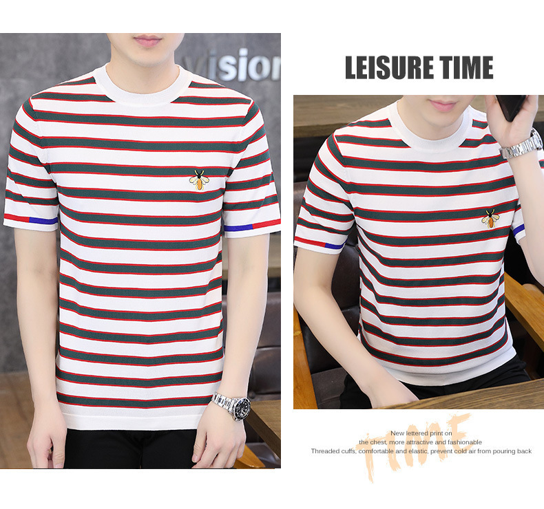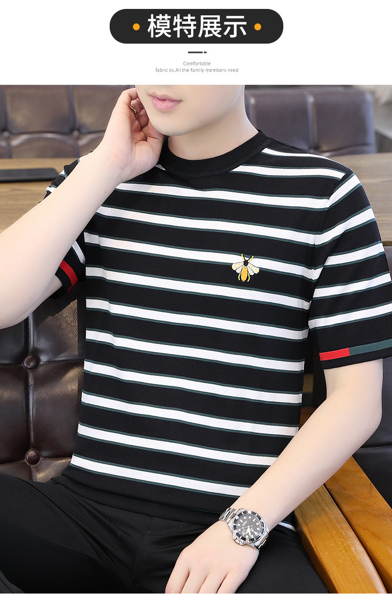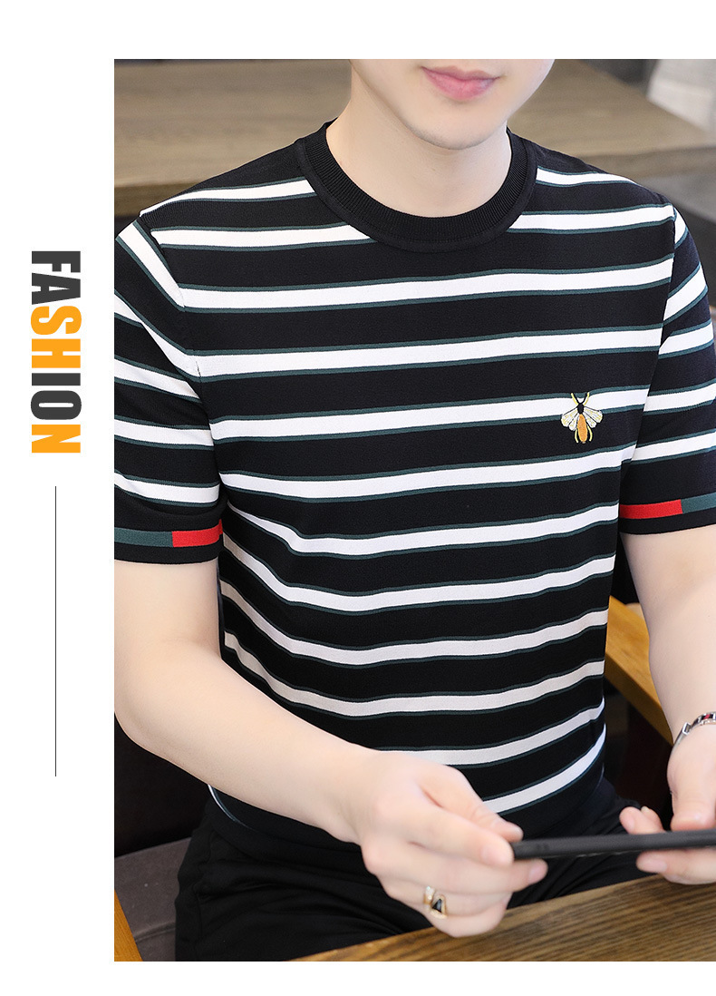 2025 뉴 남성 여름 반팔 니트 크루 넥 하이 퀄리티 남성 트렌디 패션베이스 셔츠 스웨터 반팔 T스토어 가기