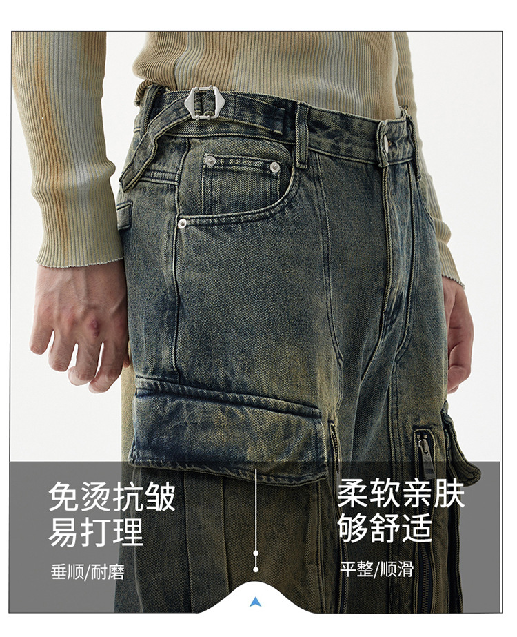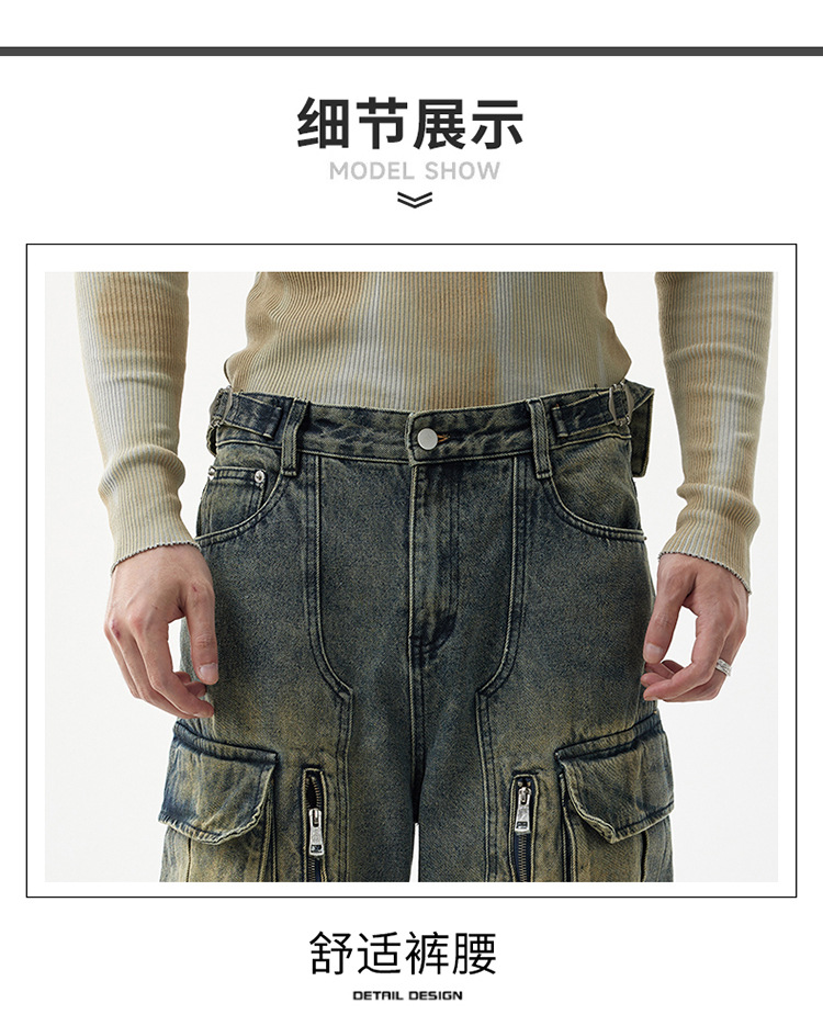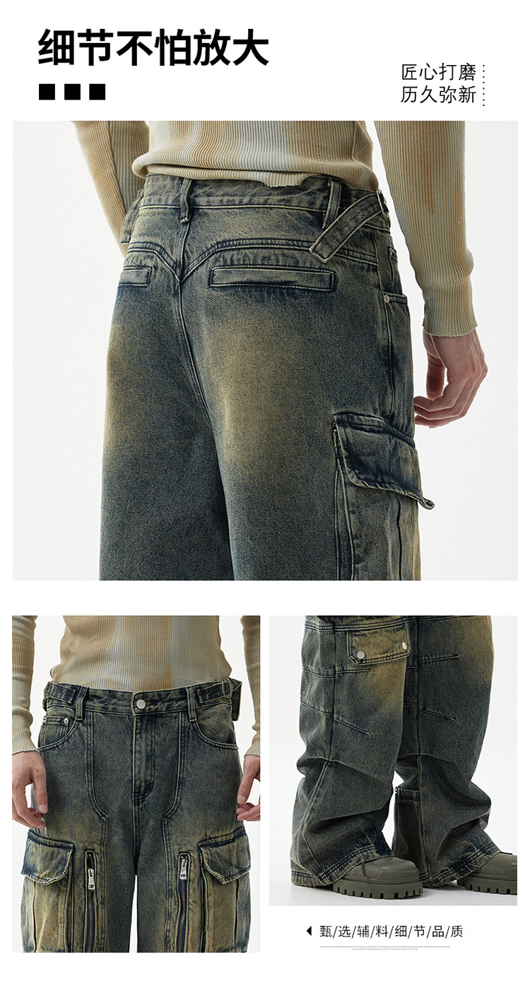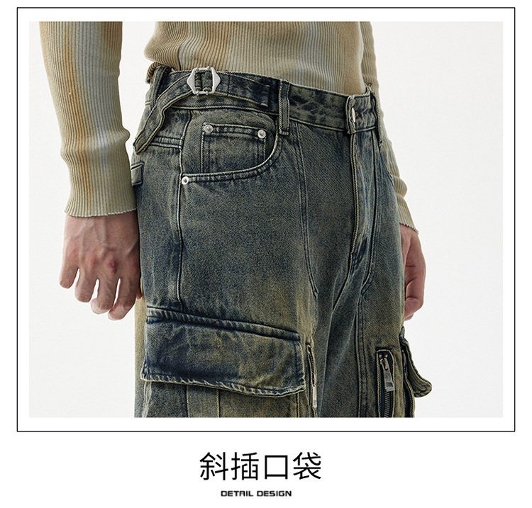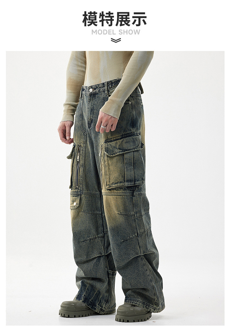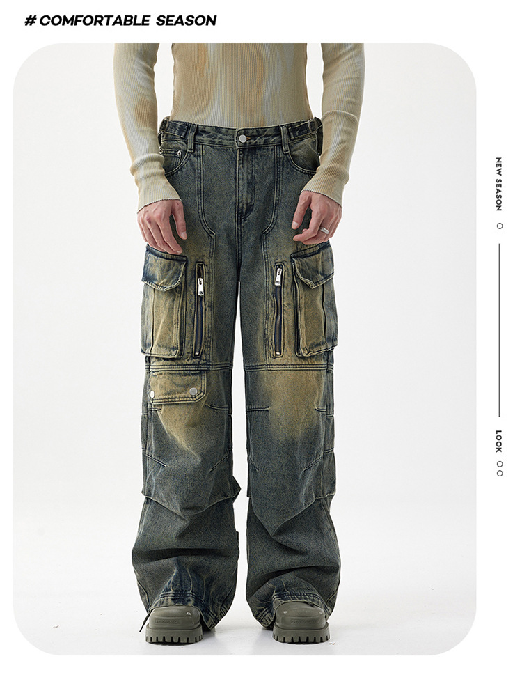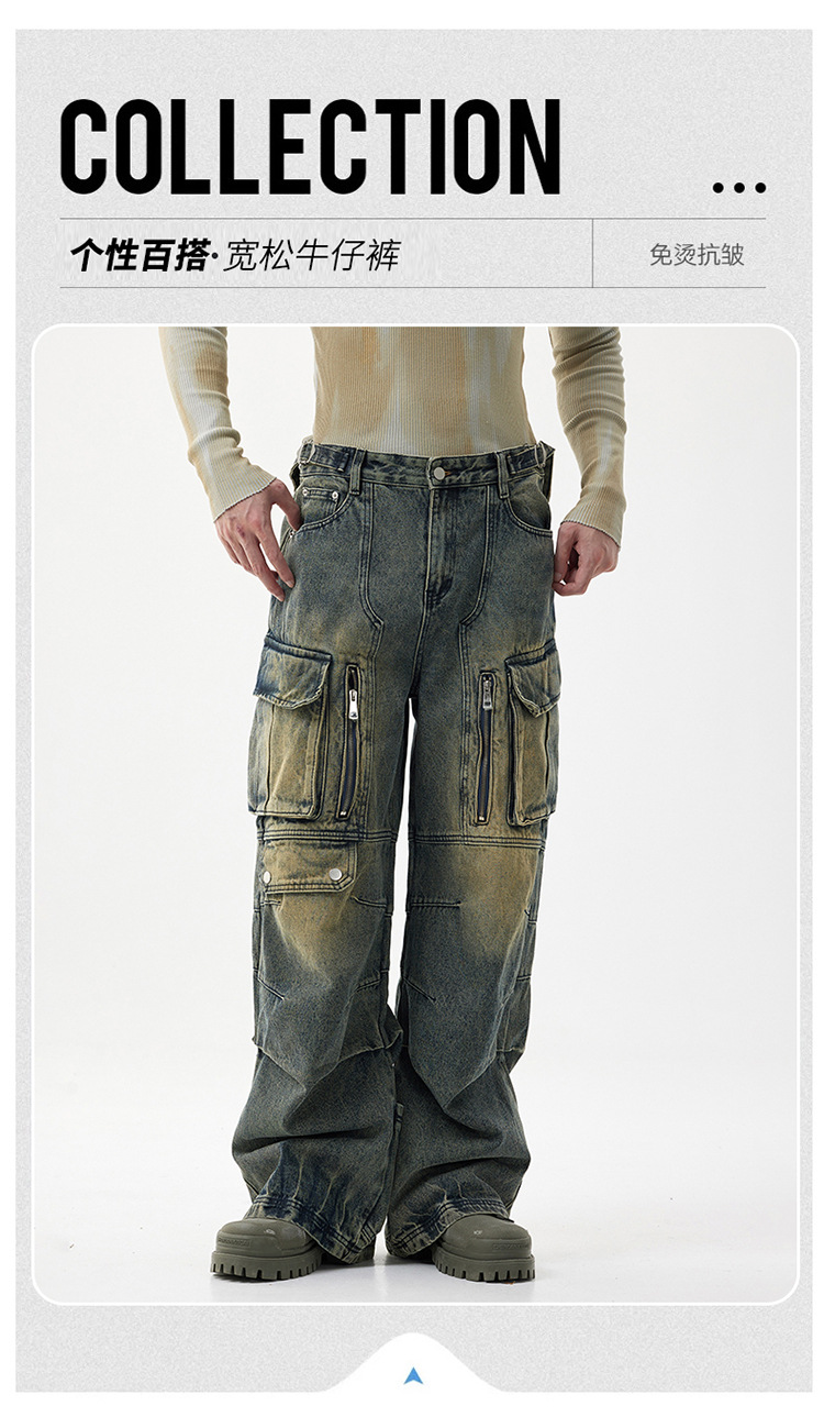 아메리칸 스타일 하이 스트리트 스트레이트 다리 청바지 남성 가을 패션 브랜드 레트로 멀티 포켓 작업 바지 무거운 느슨한 넓은 다리 바지스토어 가기