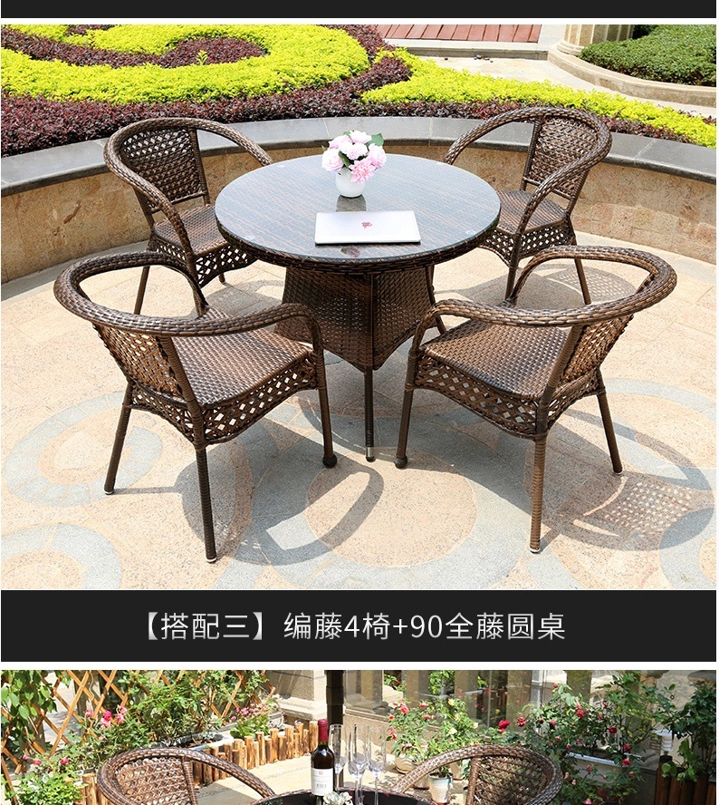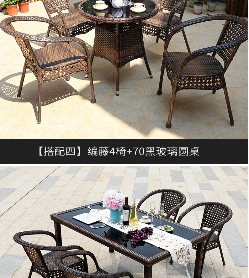 • 업그레이드된 대형 의자 4개와 검은색 등나무 원형 테이블 70개(쿠션 포함)