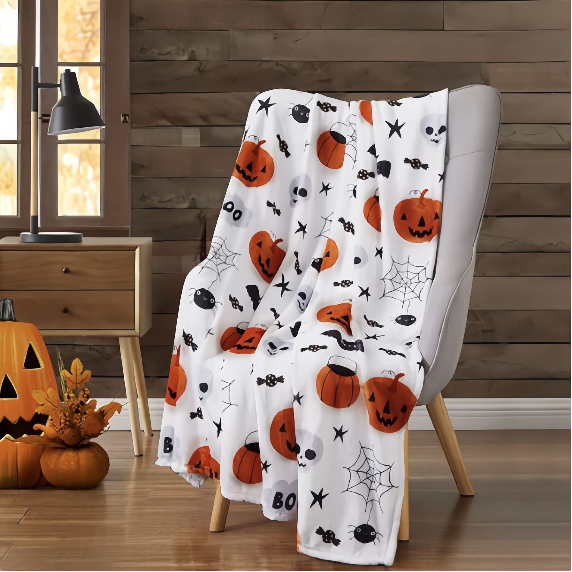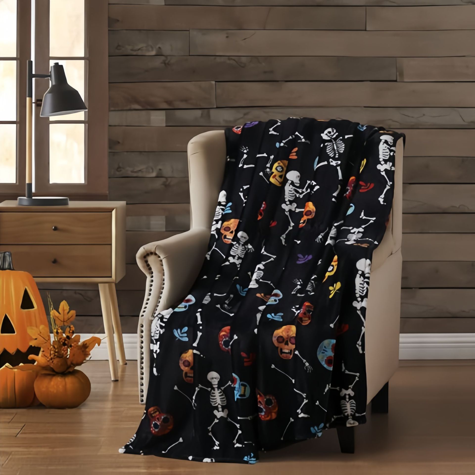 크로스 국경 할로윈 해골 인쇄 담요 담요 소프트 오피스 에어컨 Nap Blanket Temu스토어 가기