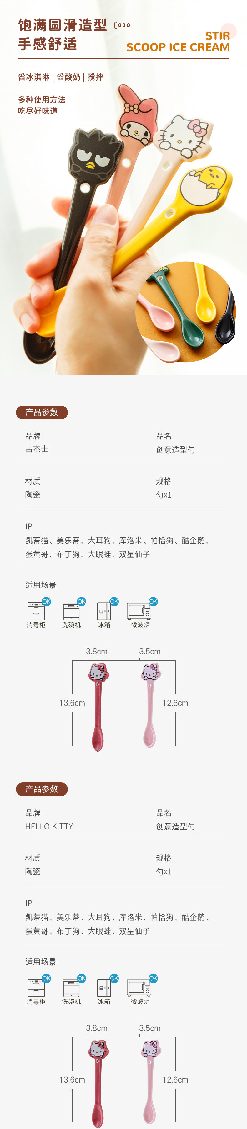 Gujiesse Sanrio 세라믹 스푼 커피 혼합 숟가락 창조적 인 귀여운 만화 스타일 숟가락 Parchal Dog Meruti스토어 가기