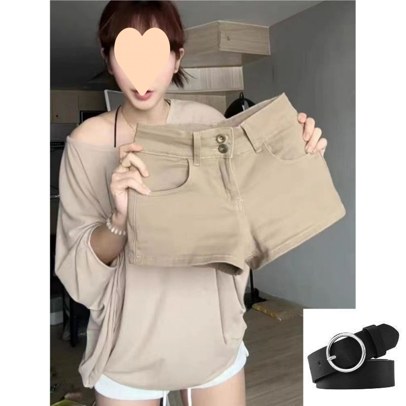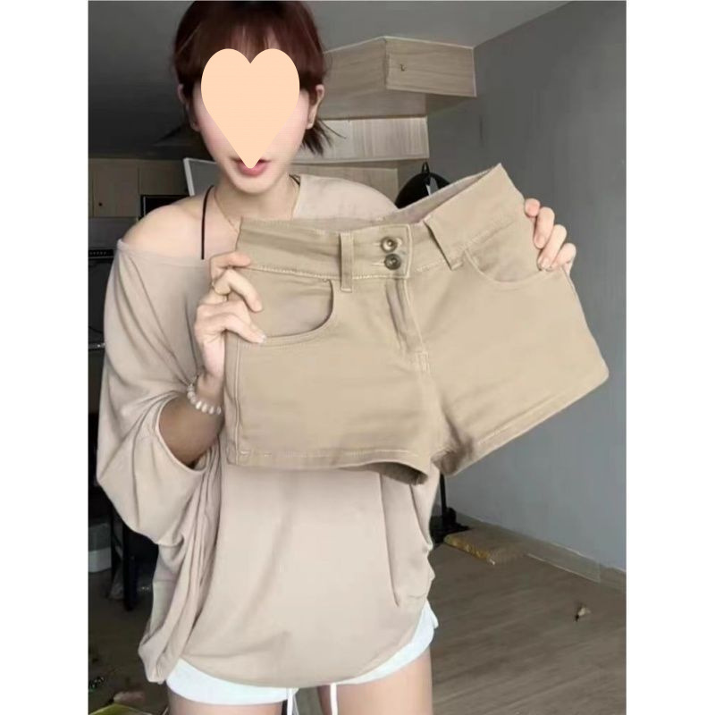 카키 미드 하이 허리 슬림 룩 데님 반바지 여성 여름 새 스타일 스트레이트 슬림 핏 캐주얼 핫 팬츠 트렌디스토어 가기