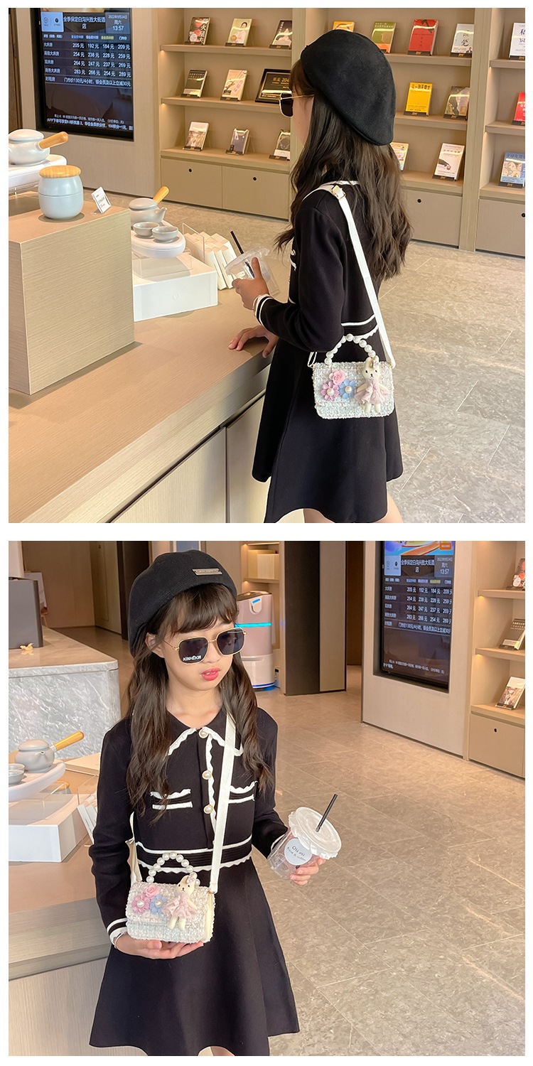 새 소녀 가방 진주 샤넬 스타일 휴대용 유행 가방 모직 꽃 패션 소녀 공주 크로스 바디 백스토어 가기