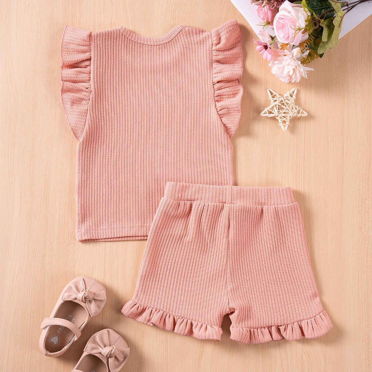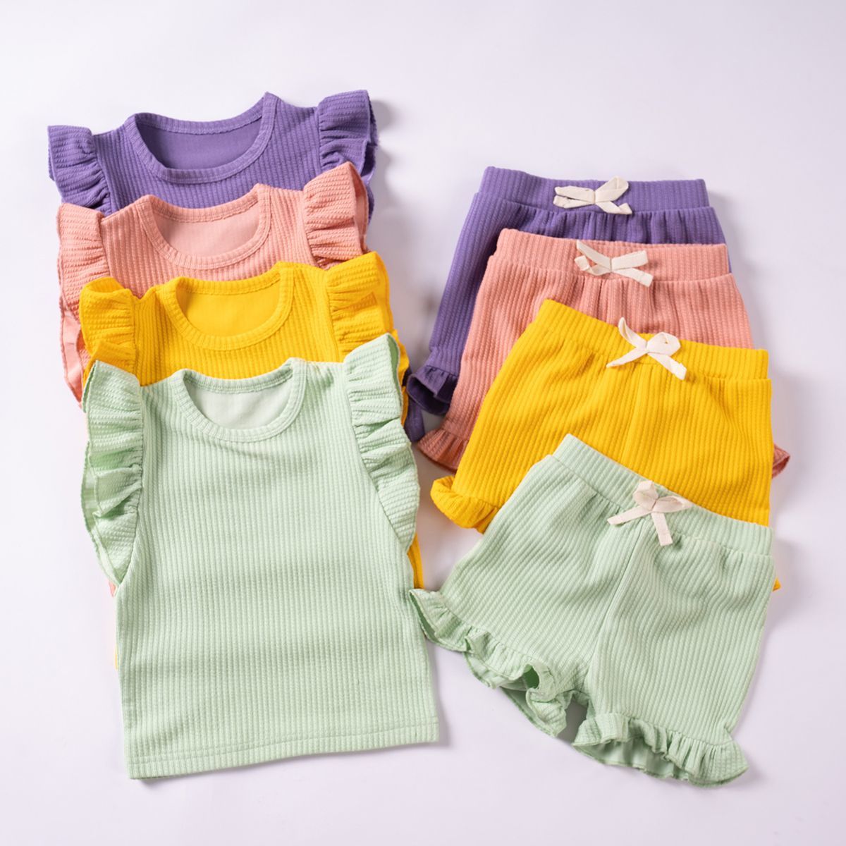 여름 세트 2024 한국 스타일 소녀의 서양식 단색 세트 슬리브 탑 주름 반바지 캐주얼 투피스 세트스토어 가기