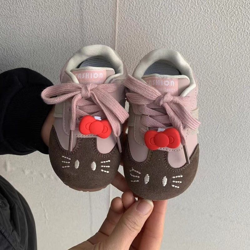 한국식 어린이 훈련 신발 봄과 가을 새 소녀 만화 고양이 운동화 벨크로 부드러운 밑창 아기 포섭 검프 신발