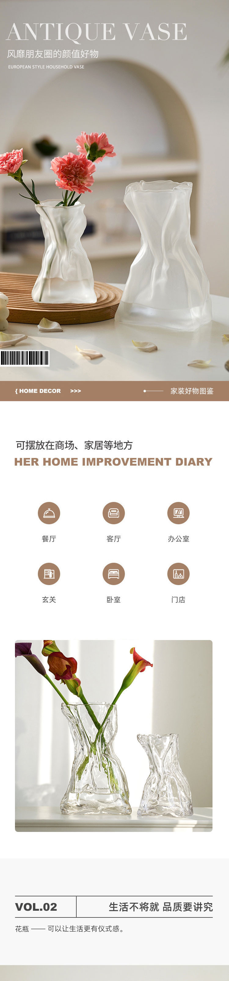 고급 감각 간단한 창조적 인 불규칙한 홈스테이 꽃병 투명 유리 거실 데스크탑 꽃 배열 물 기르기 장식 장식품스토어 가기