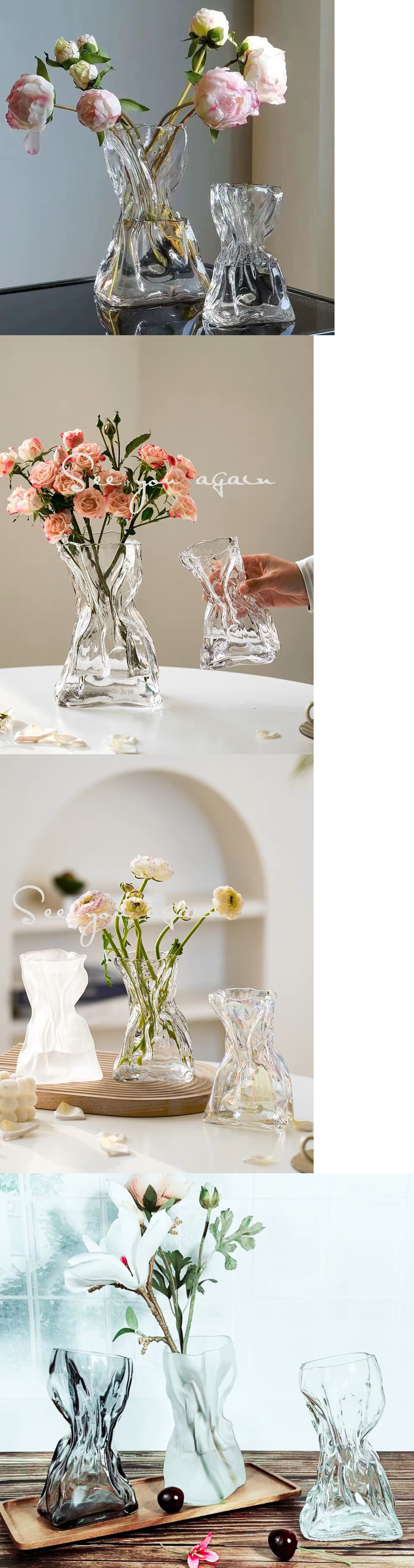고급 감각 간단한 창조적 인 불규칙한 홈스테이 꽃병 투명 유리 거실 데스크탑 꽃 배열 물 기르기 장식 장식품